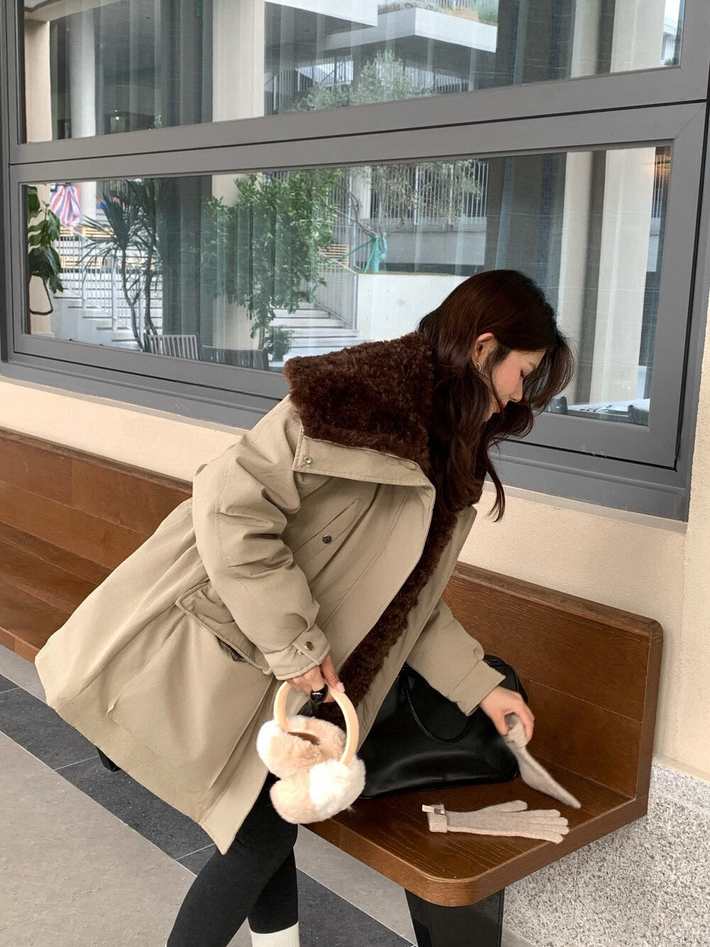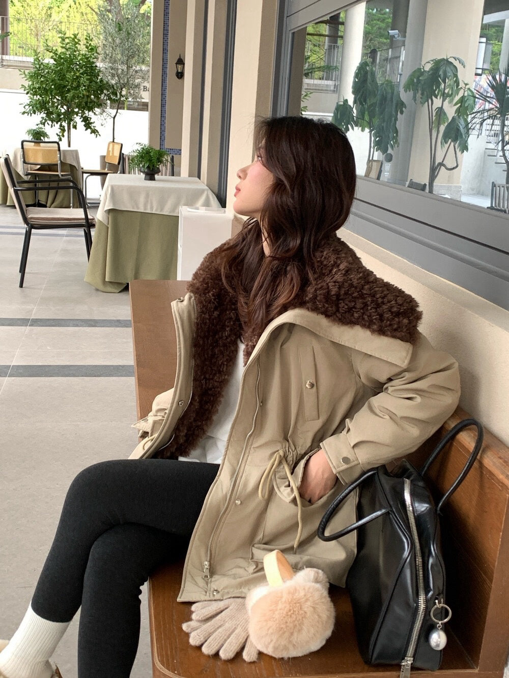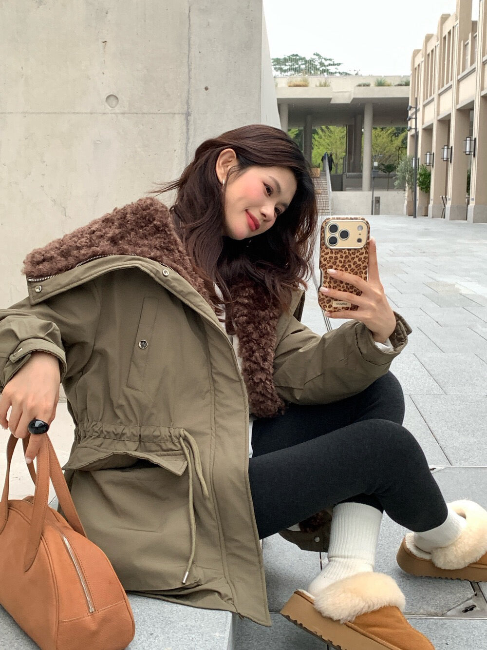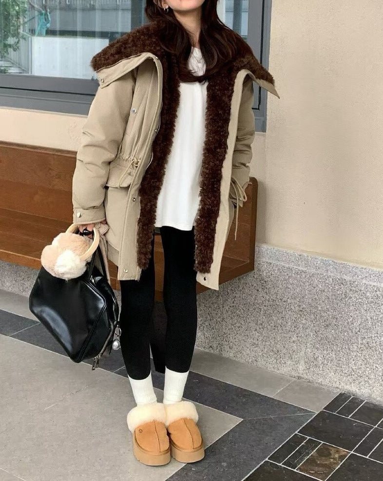 // 超帥大毛毛翻領可束腰口袋工裝外套
