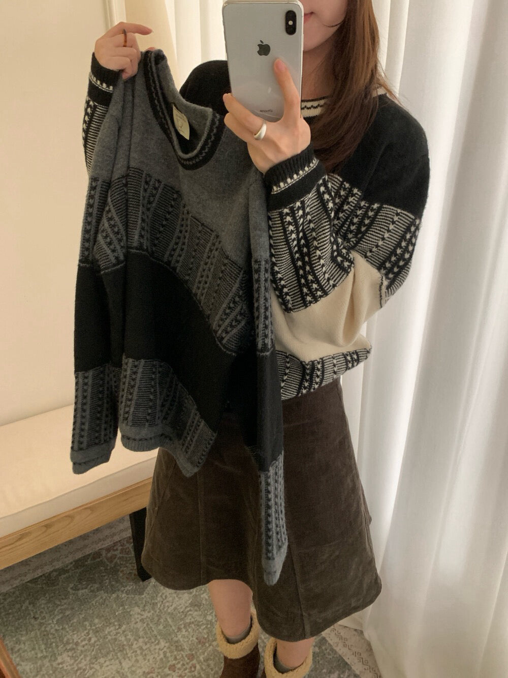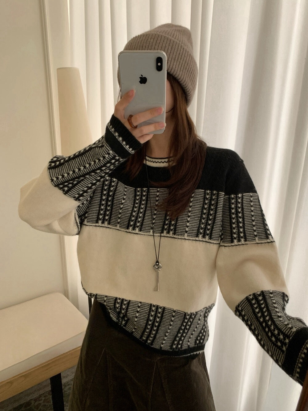 // 超美鈎針提花圓領毛衣