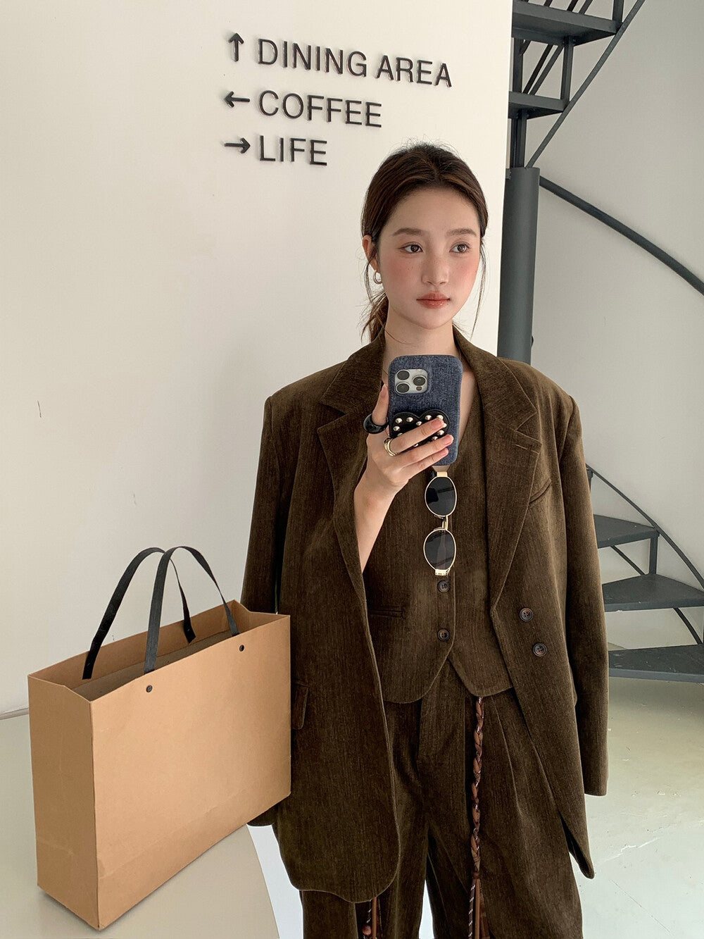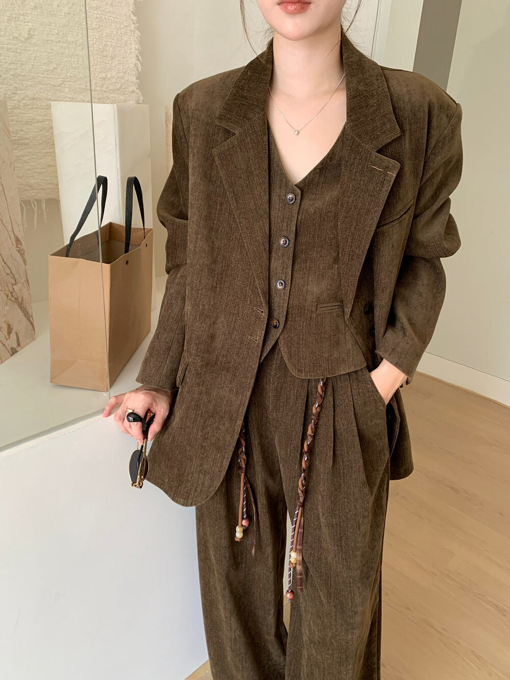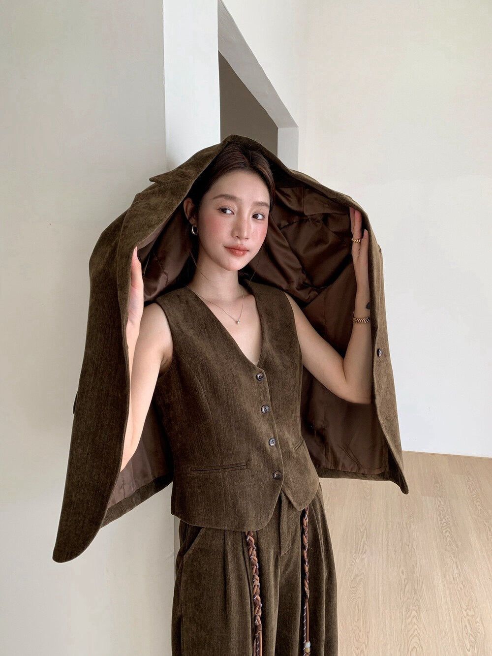 // 超美雪尼爾絨馬甲+褲+外套SET(外套可分開單買)