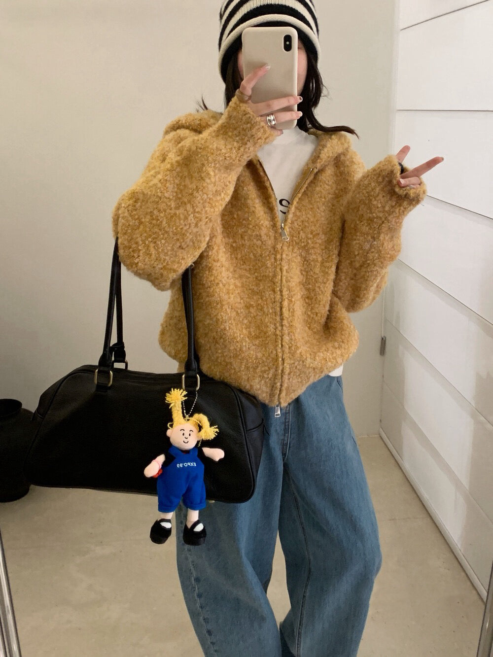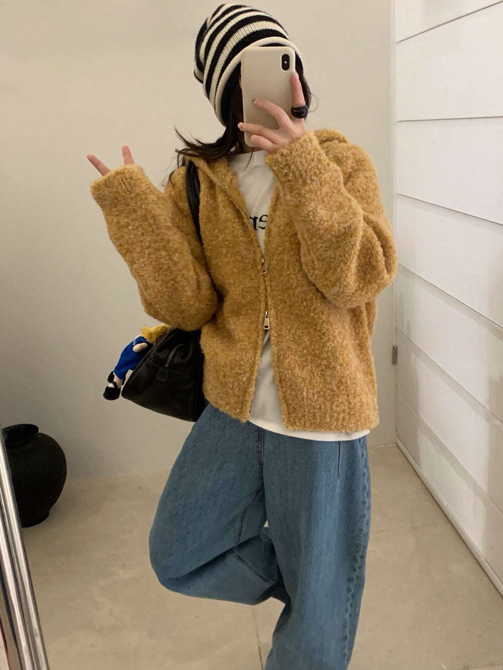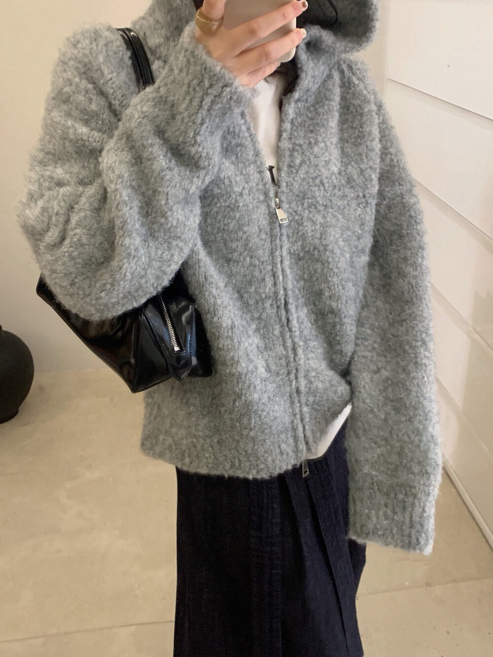 // 超軟糯圈圈羊毛連帽拉鍊CD