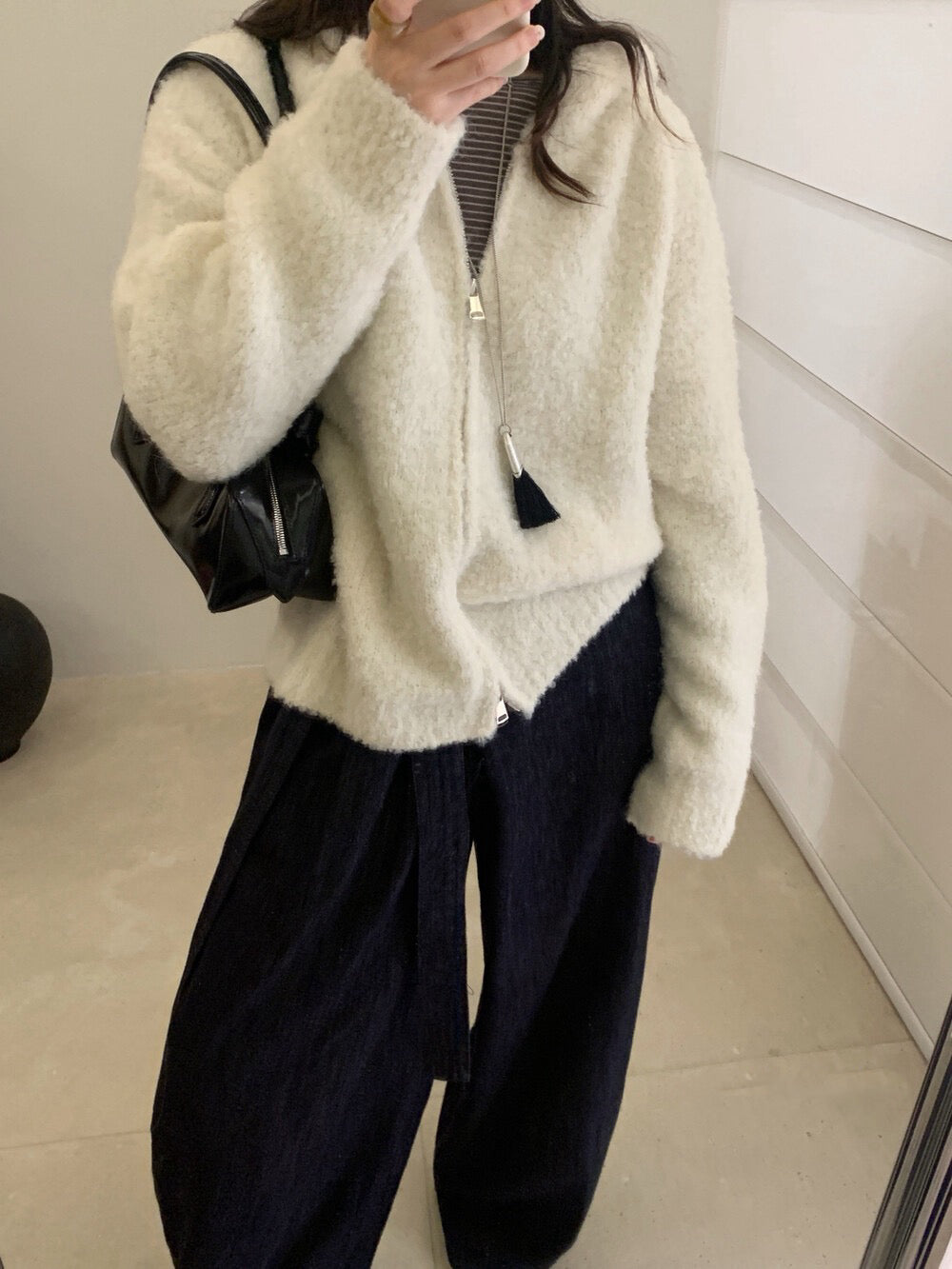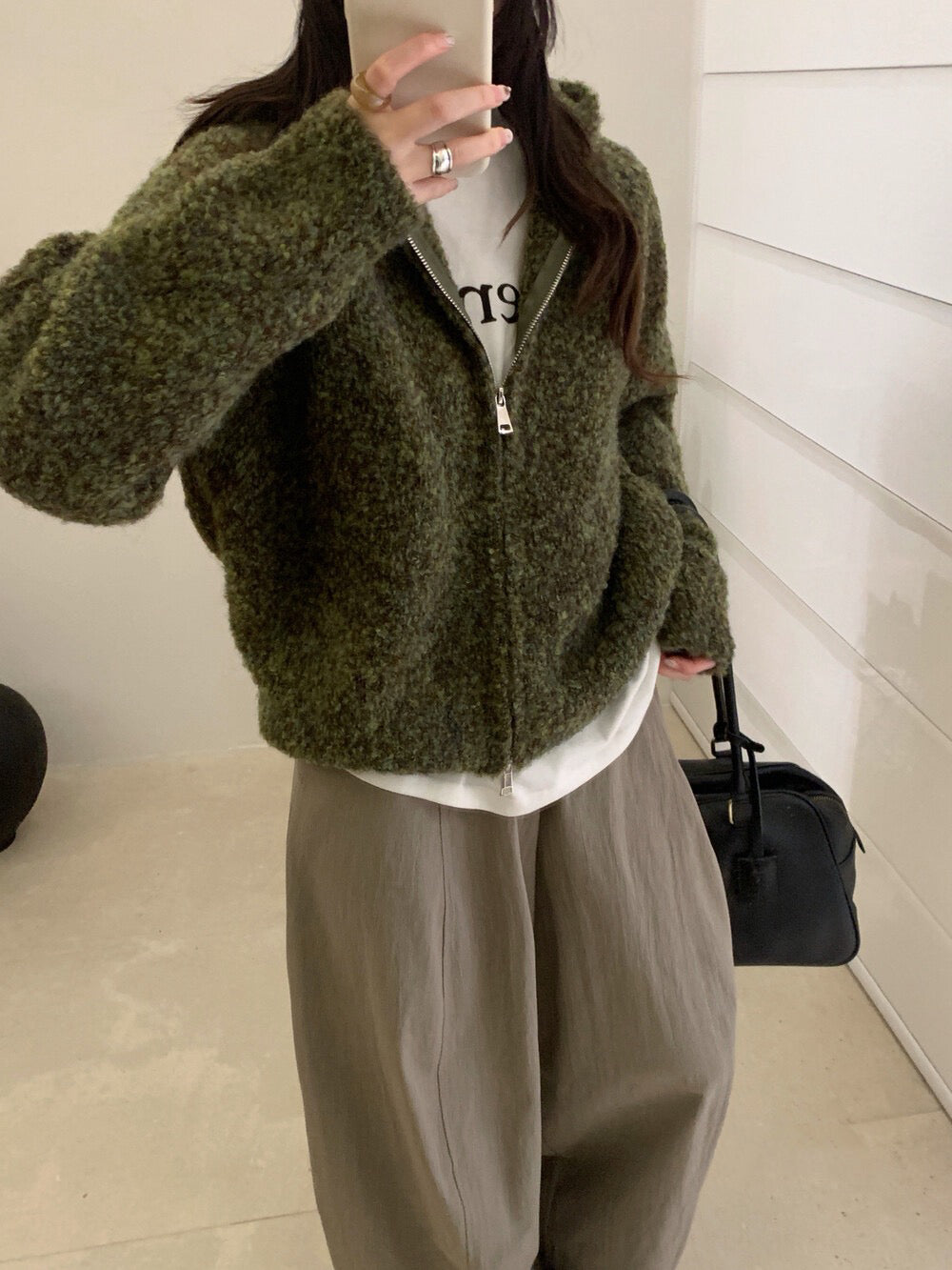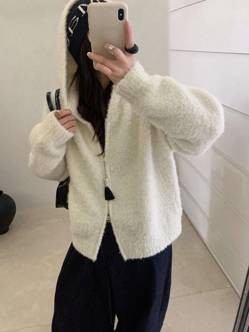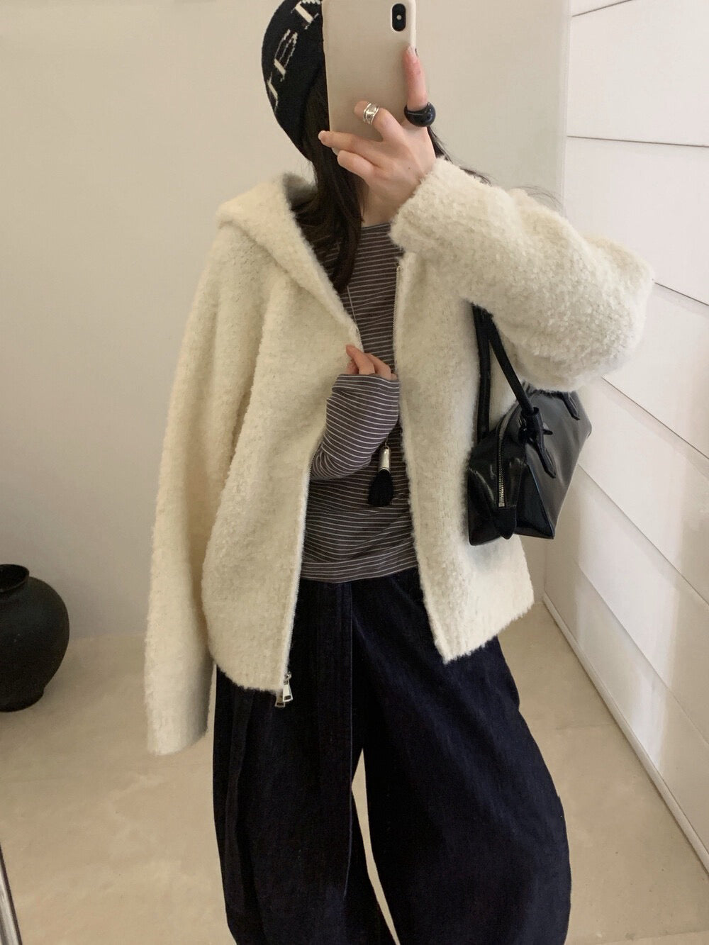 // 超軟糯圈圈羊毛連帽拉鍊CD