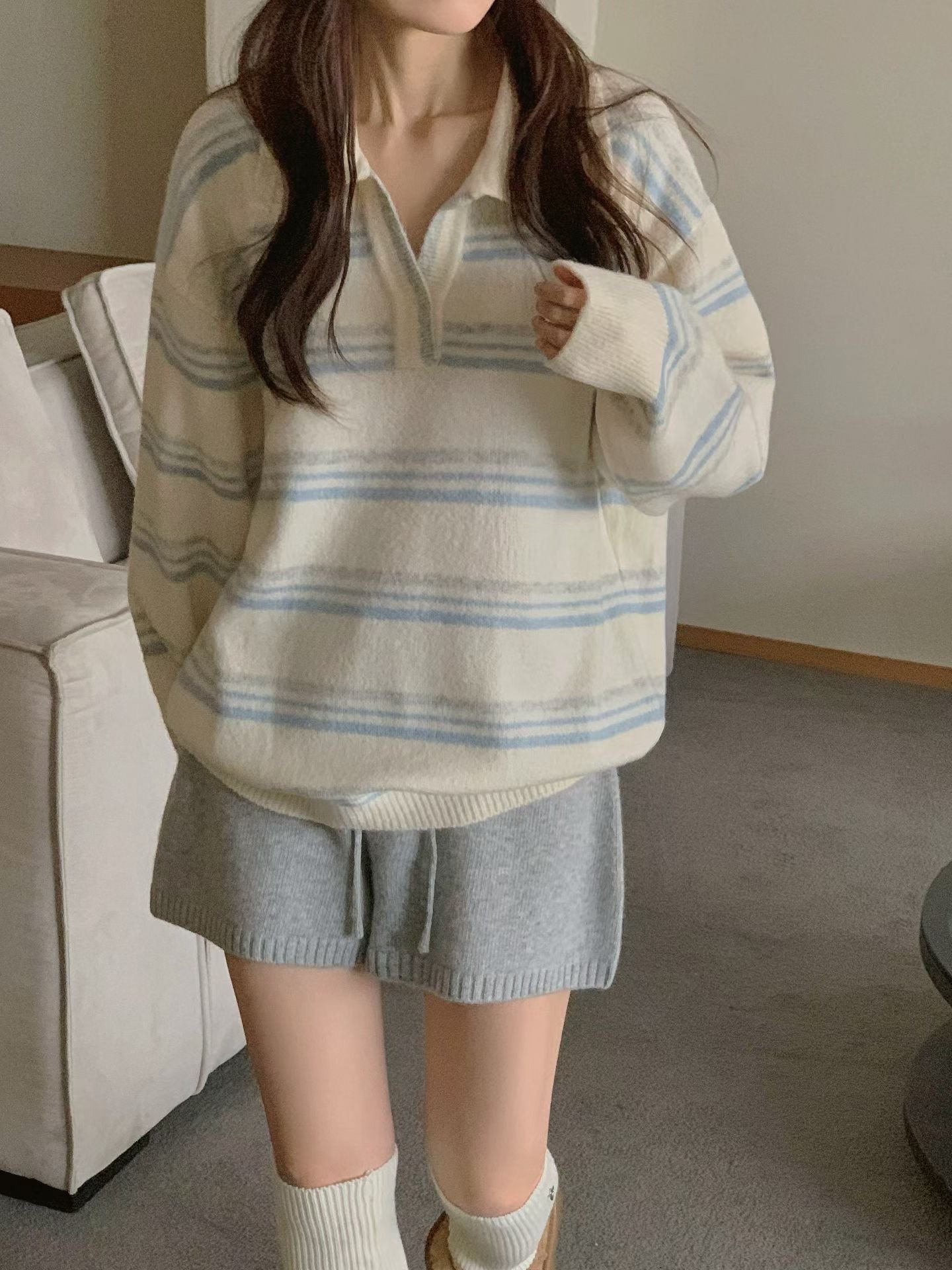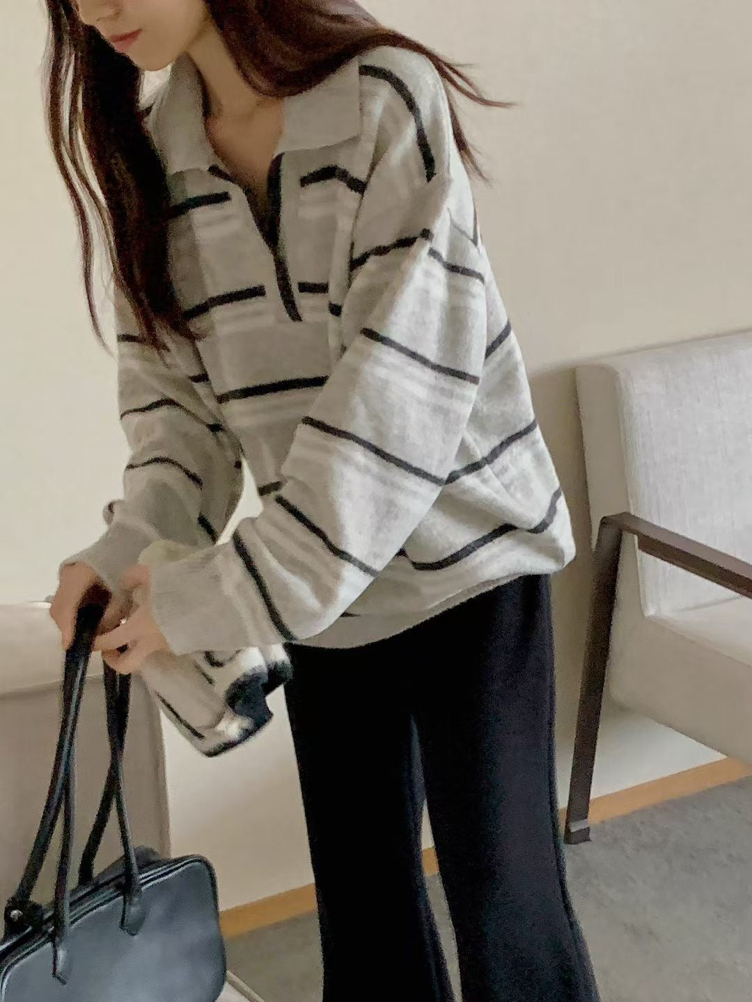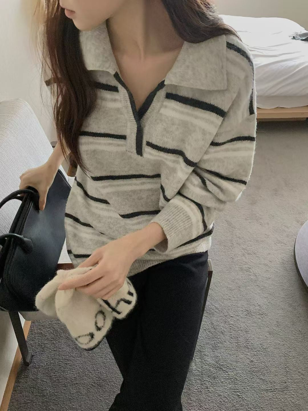 // 超韓小V翻領拼間NT