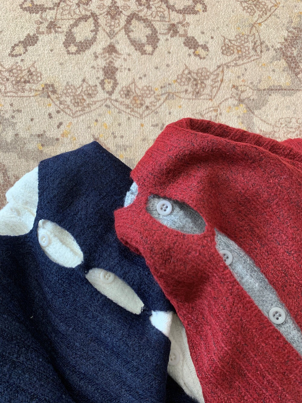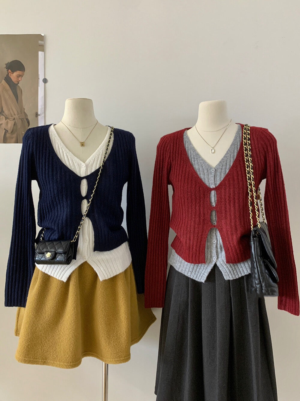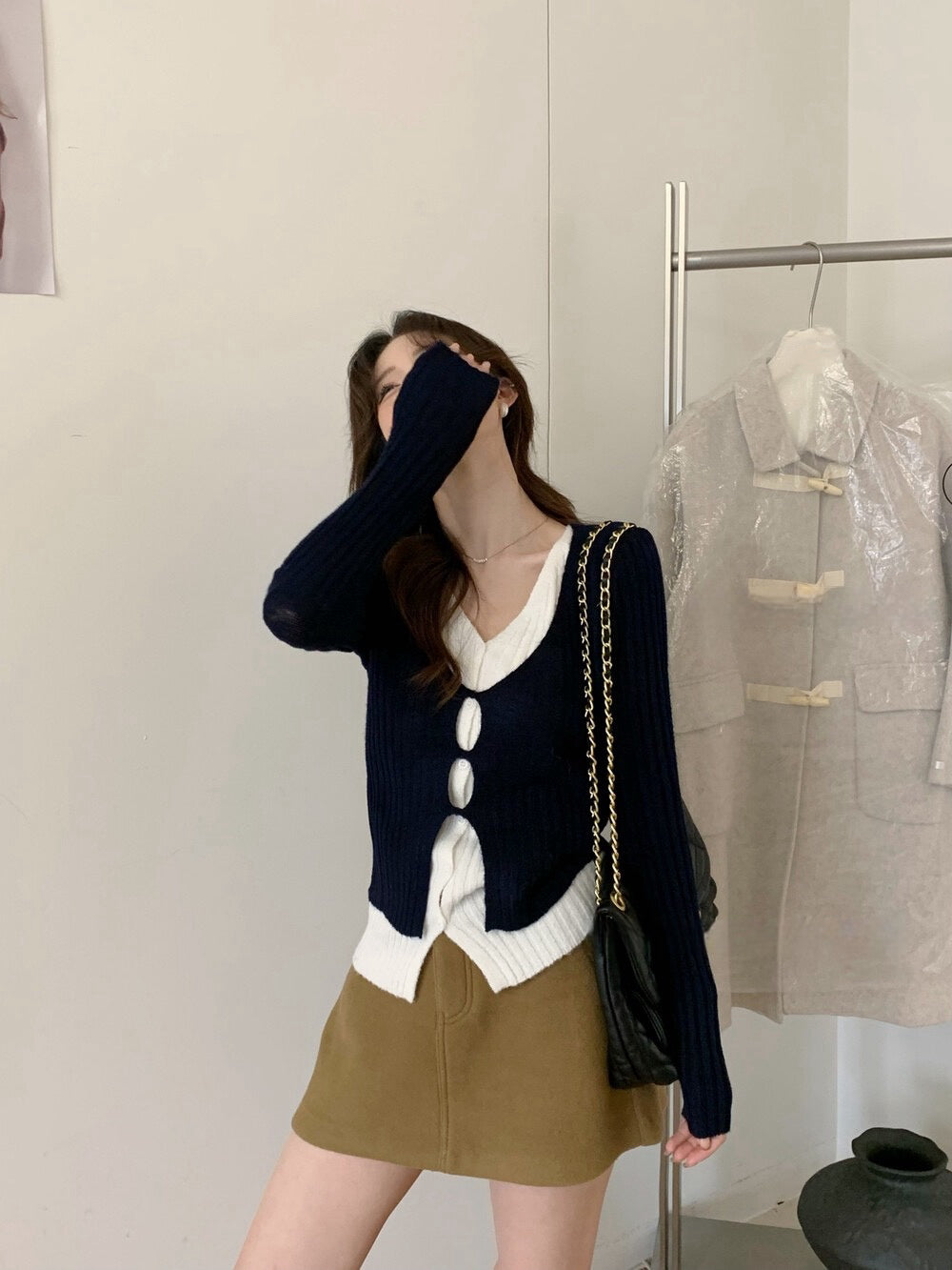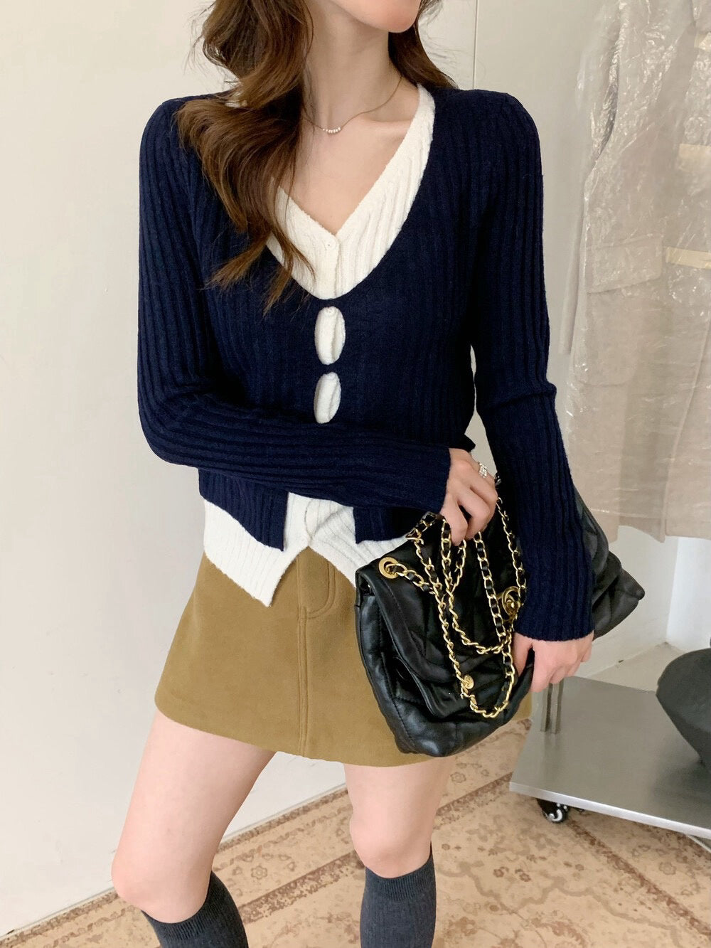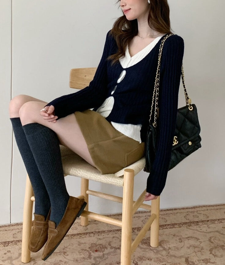 // 超顯瘦撞色假兩件針織上衣