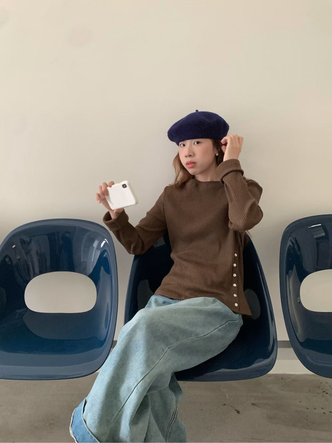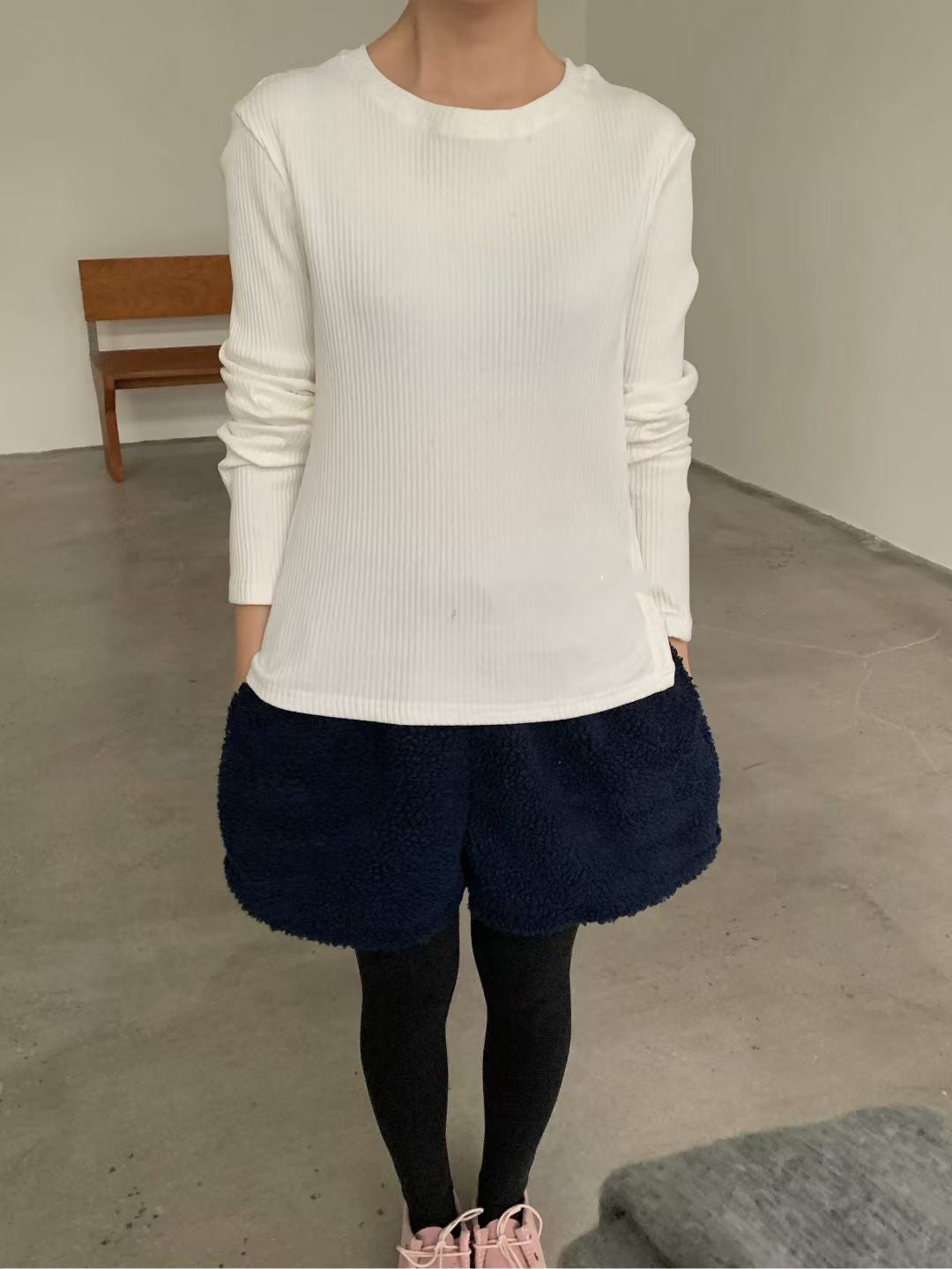 // 超顯瘦直坑紋側開鈕TEE