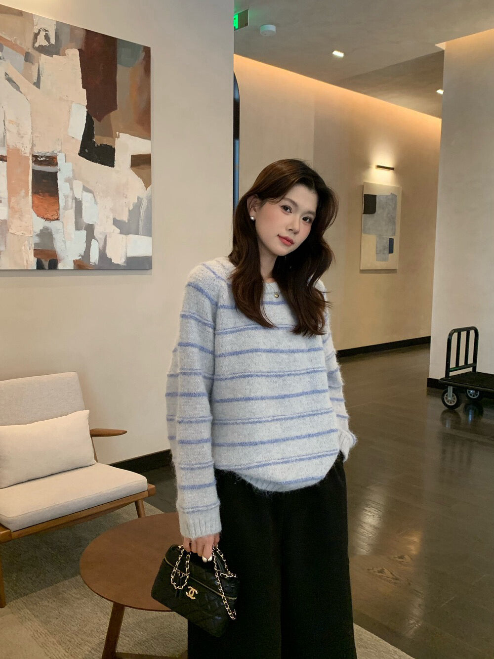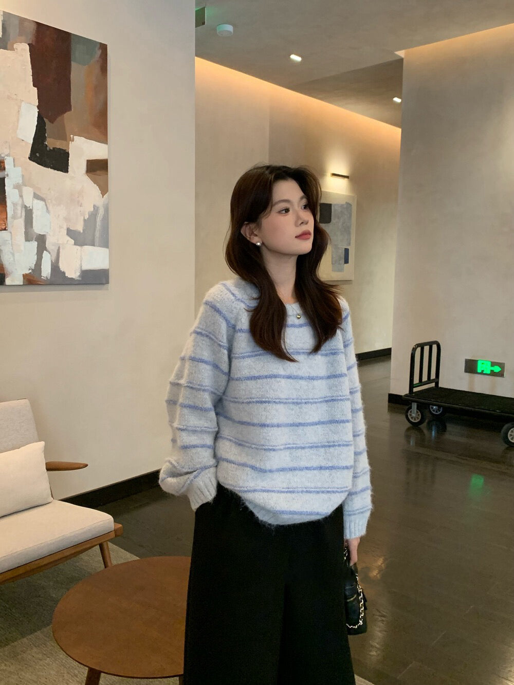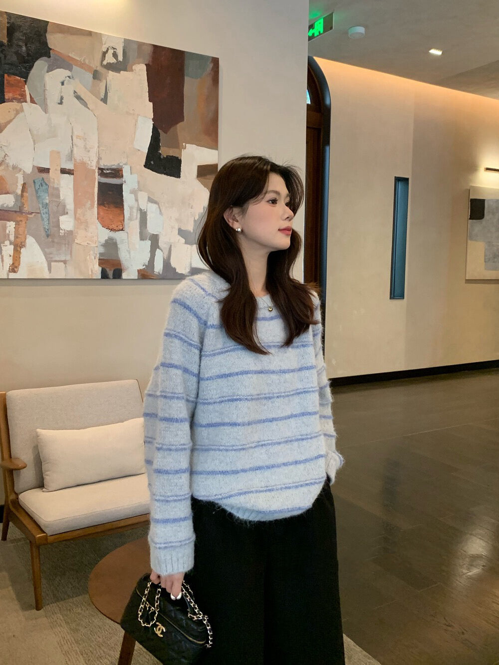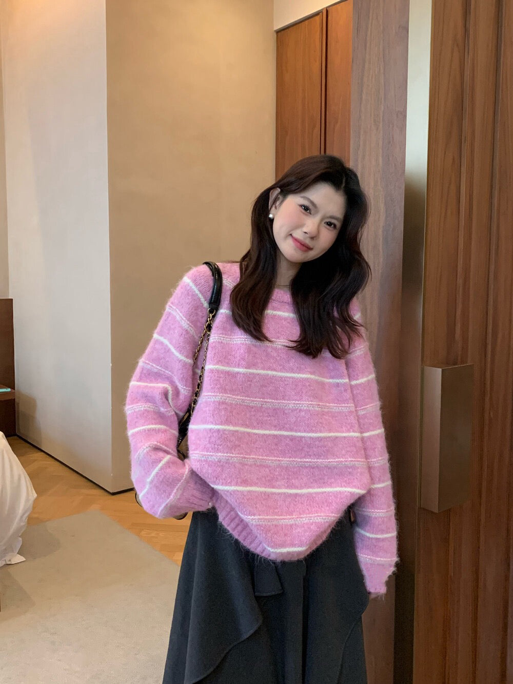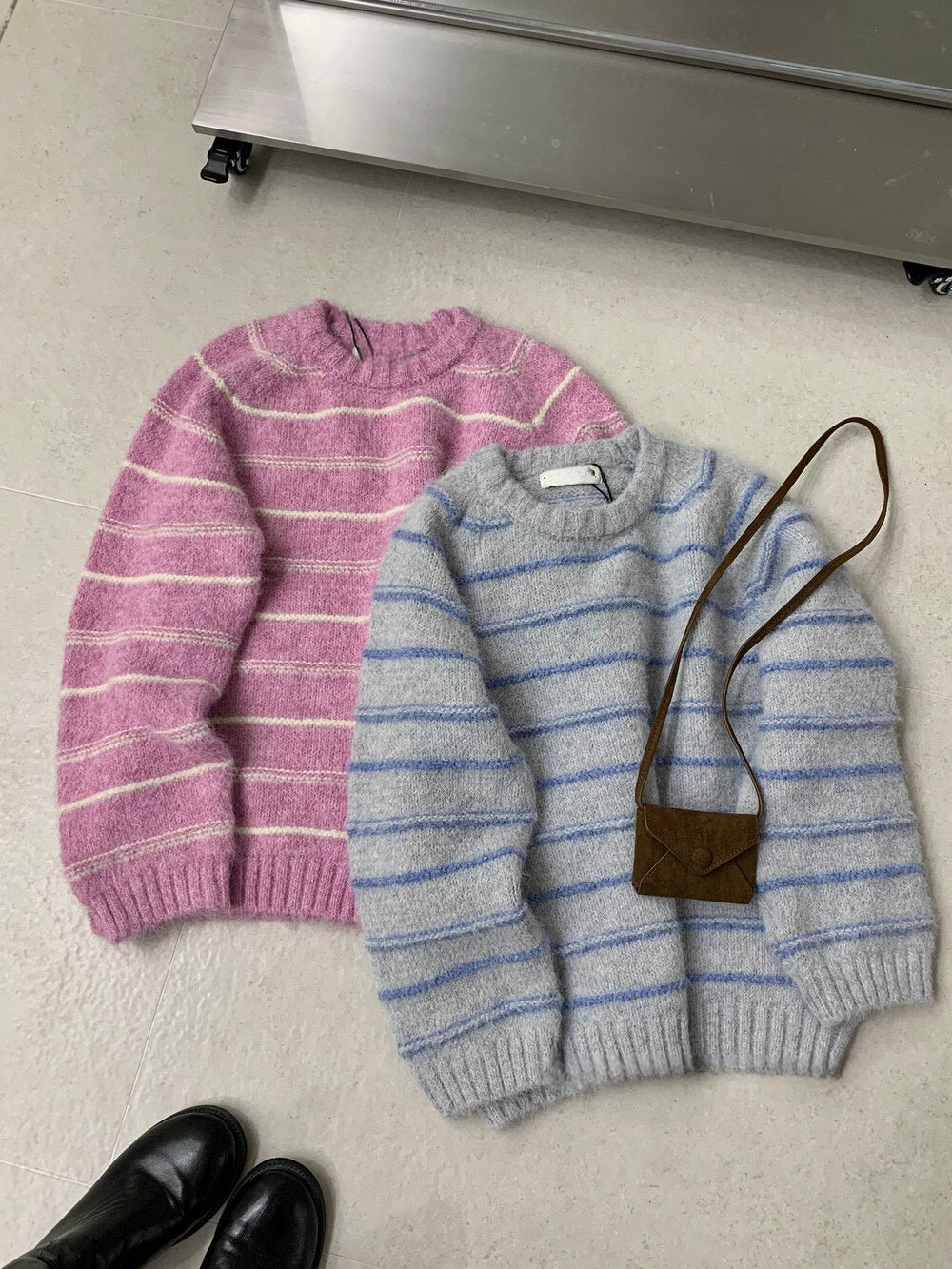 // 超soft簡約間條圓領毛衣