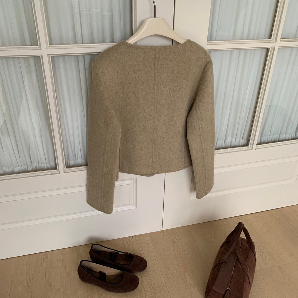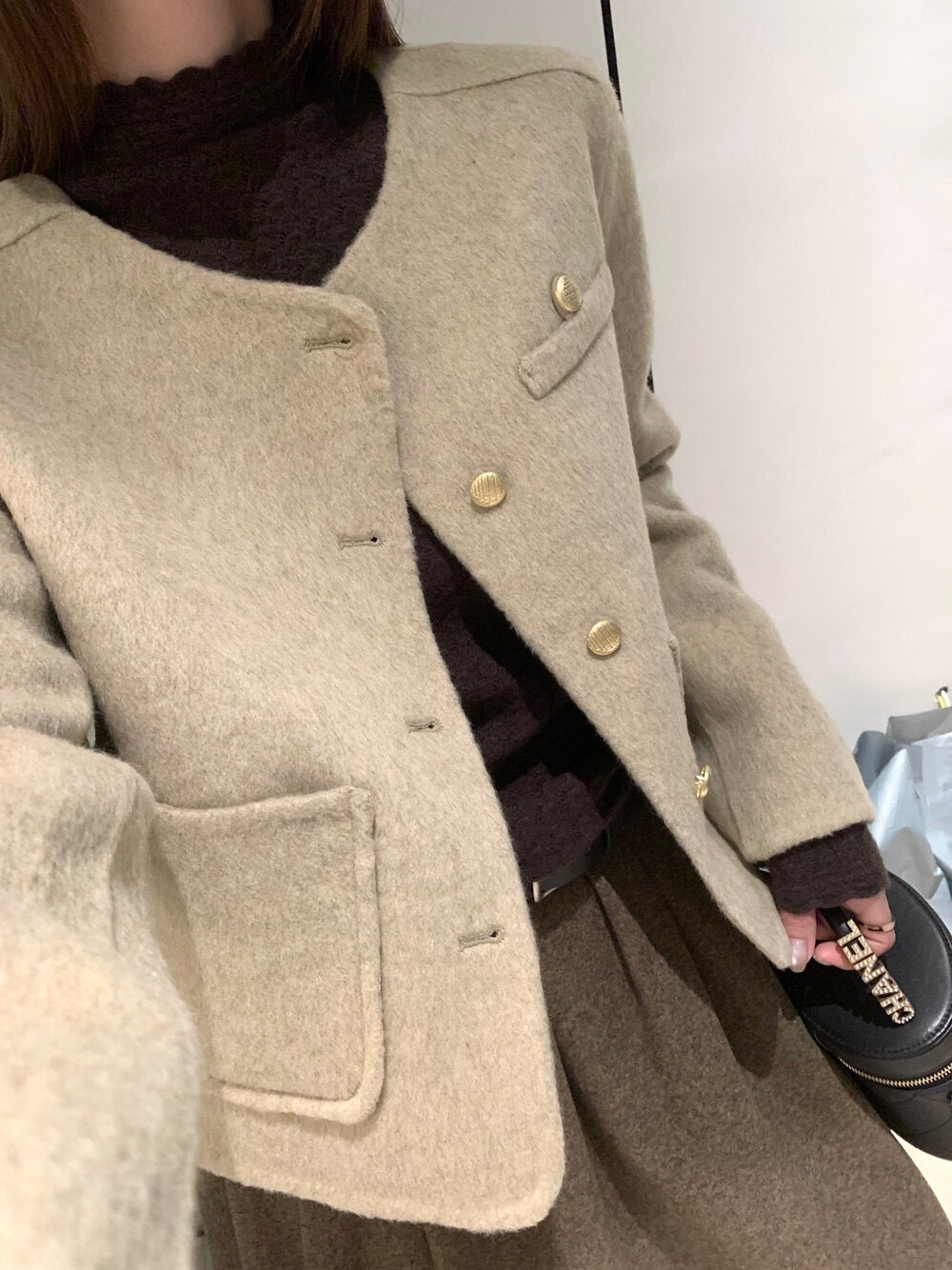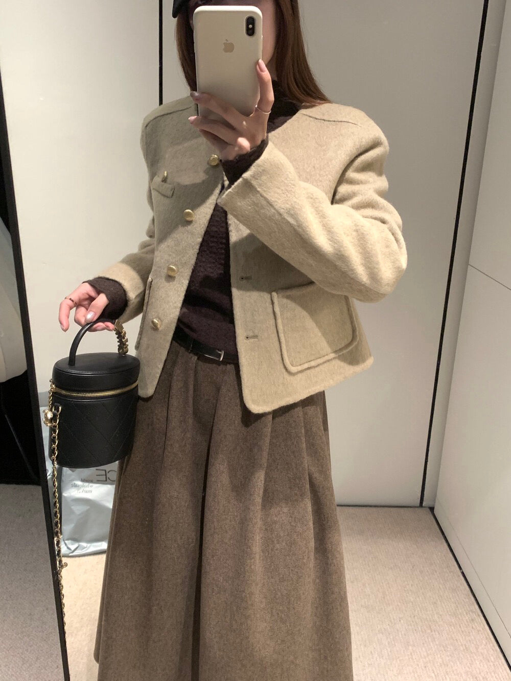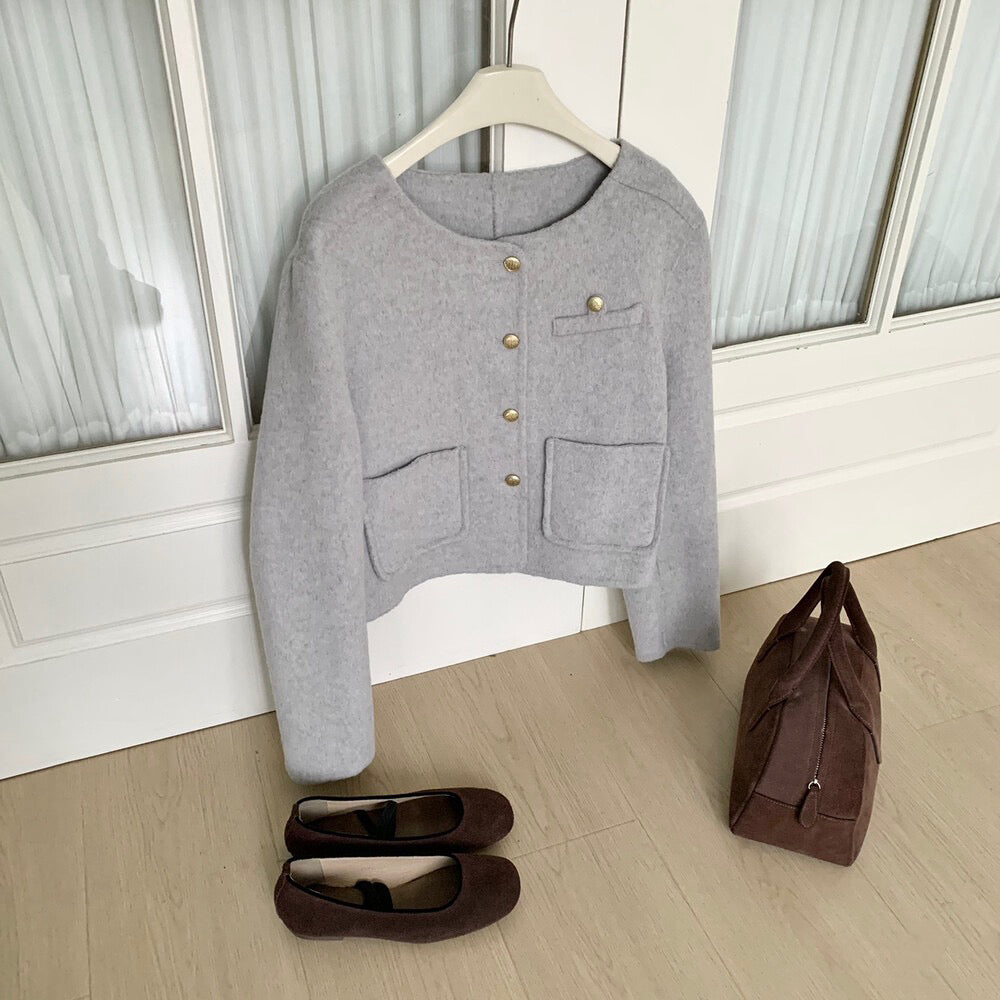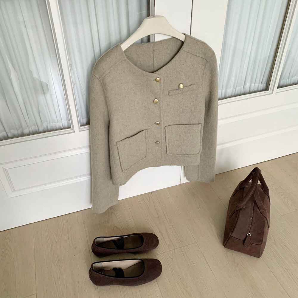 回饋價!// 質感金鈕扣氣質口袋100%手工雙面羊毛外套