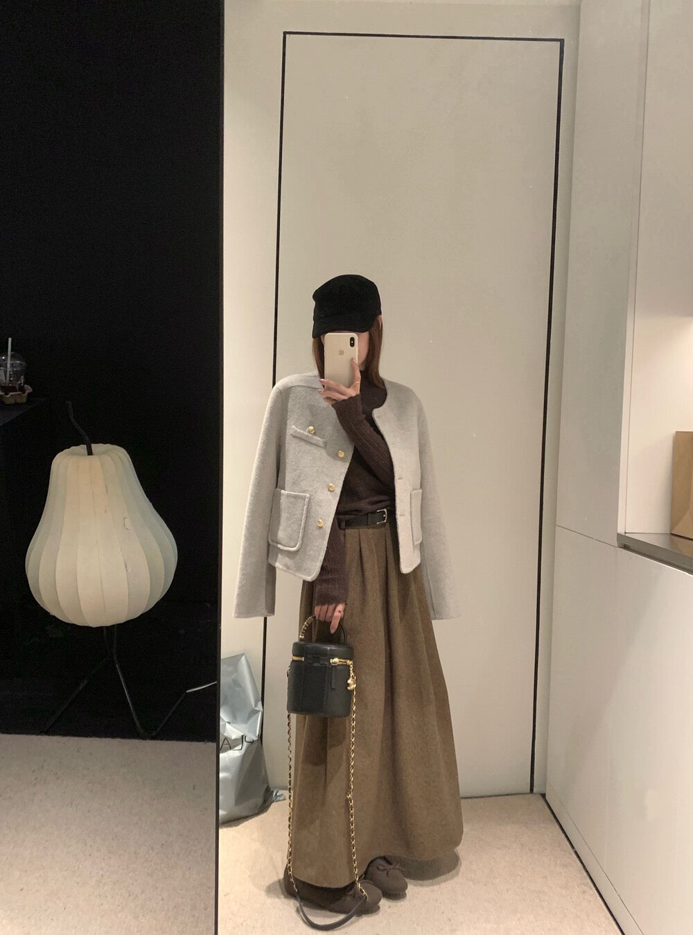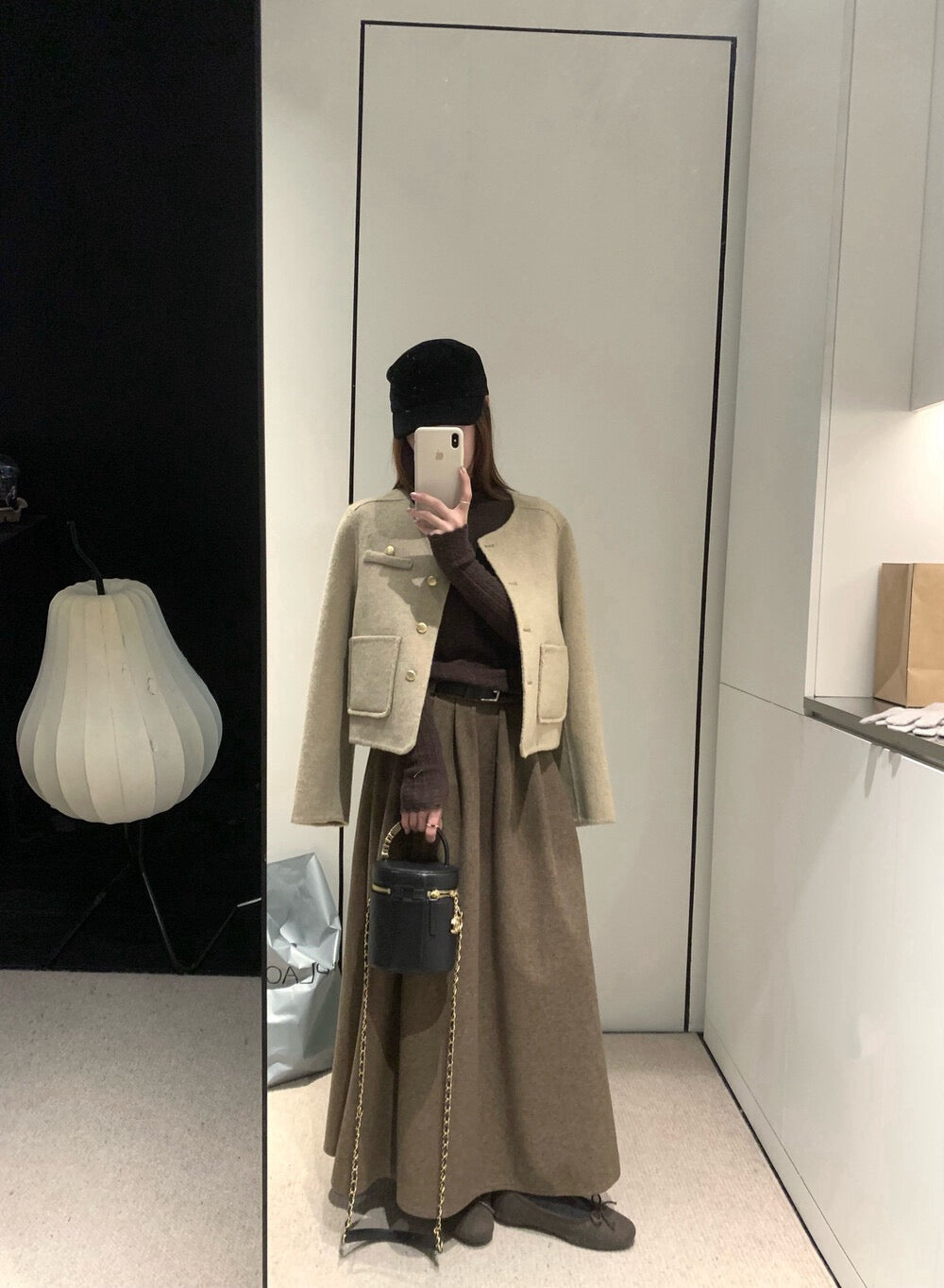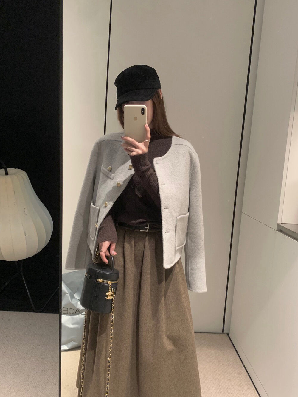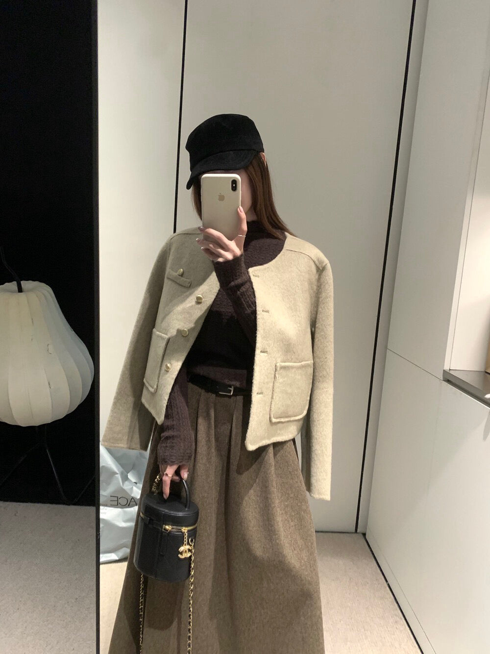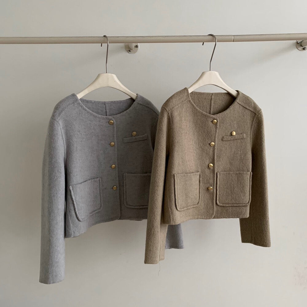 回饋價!// 質感金鈕扣氣質口袋100%手工雙面羊毛外套