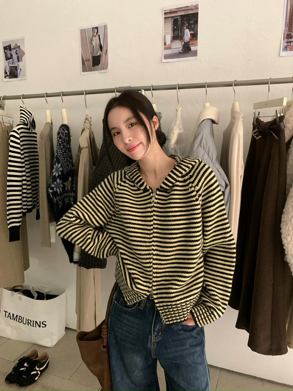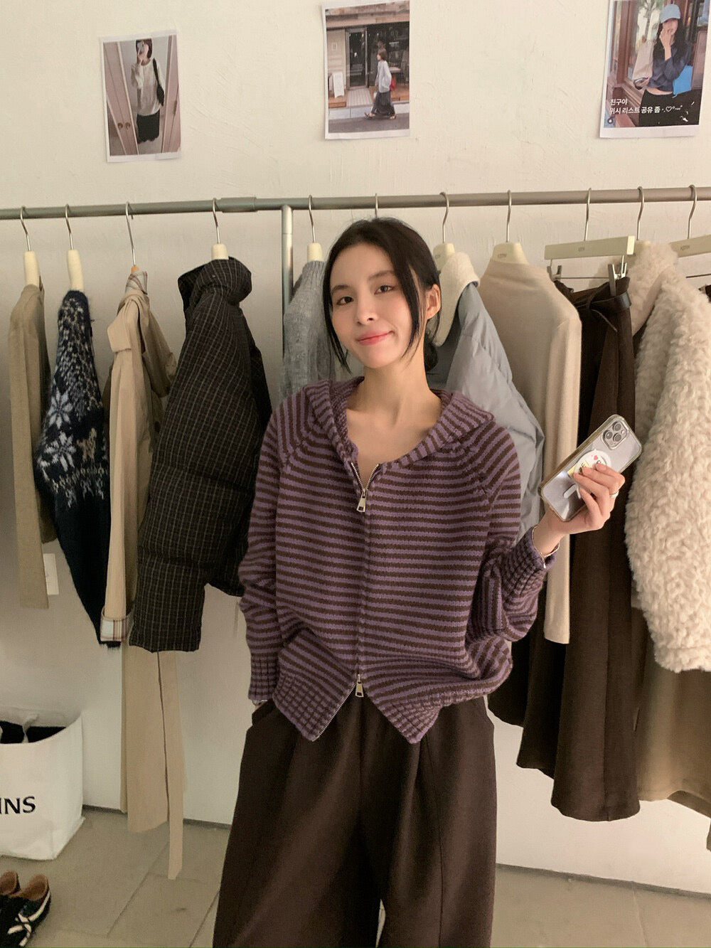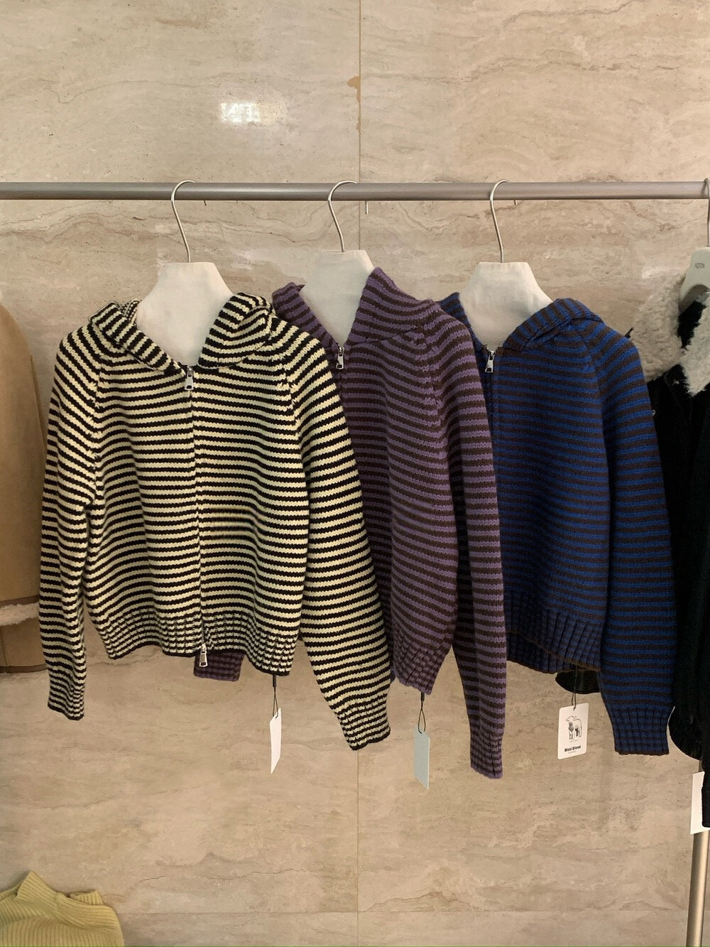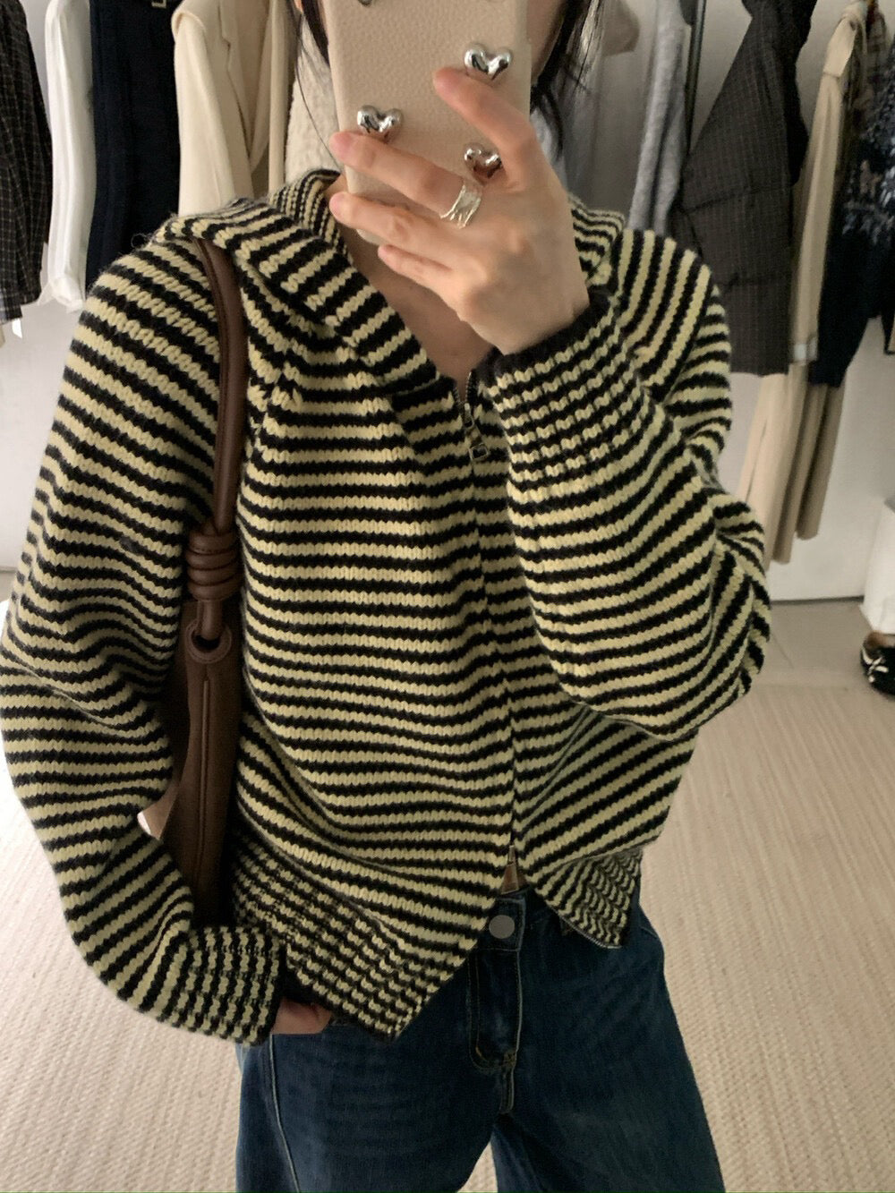 // 軟糯雙拉鍊細間條連帽CD