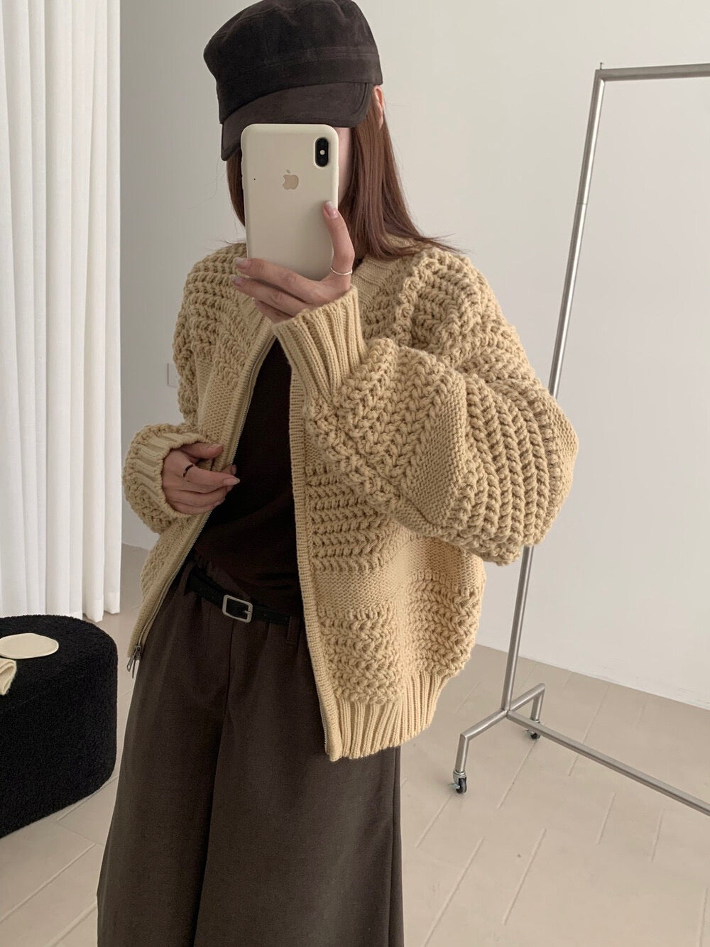 // 重工粗針織肌理感拉鍊CD
