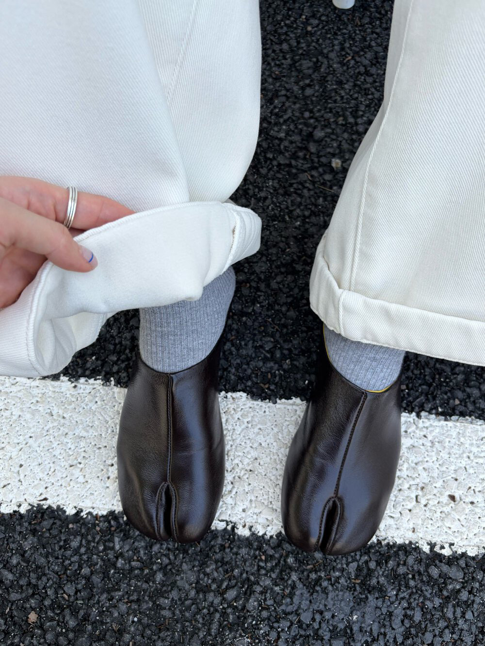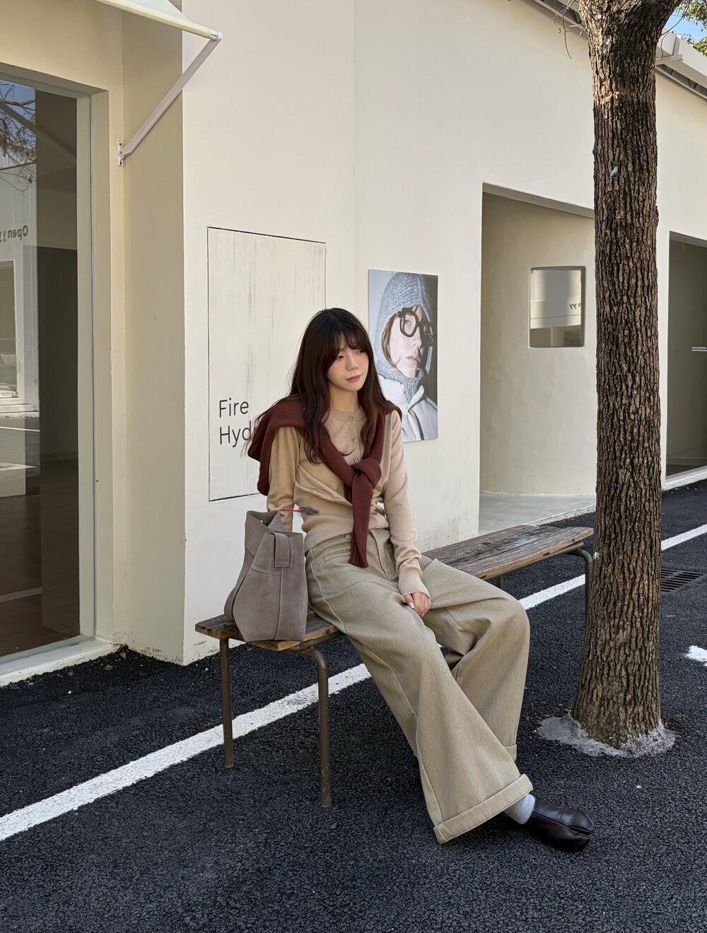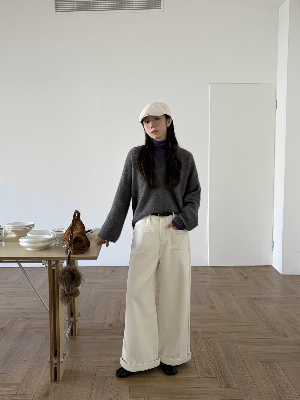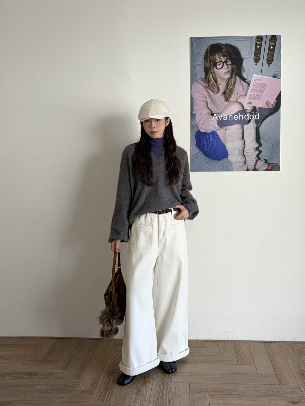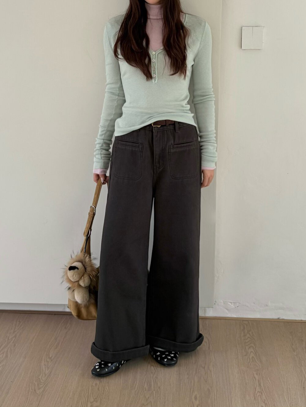 // 雙口袋裝飾加絨卷邊褲(連腰帶)