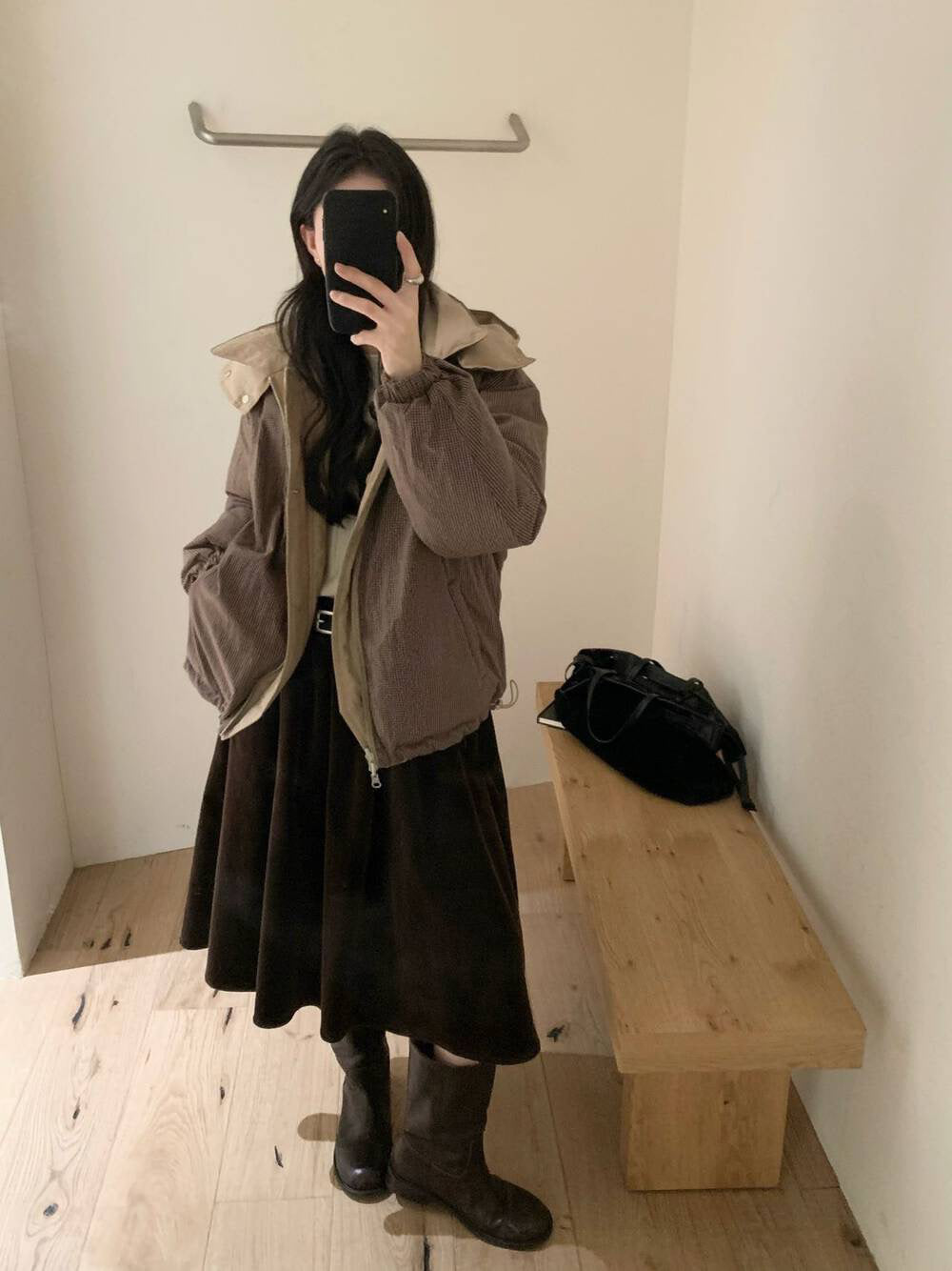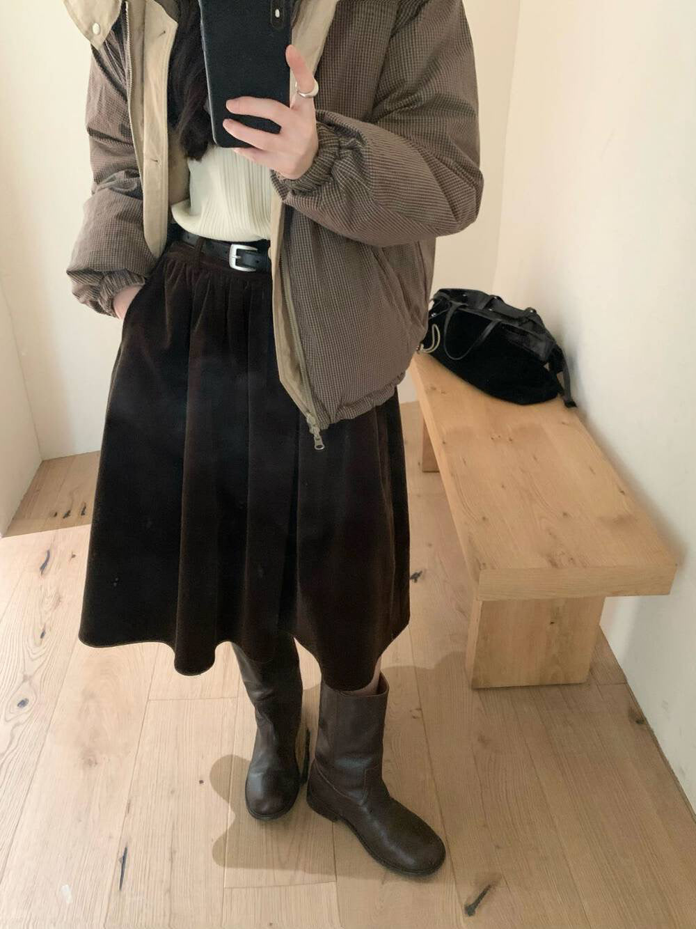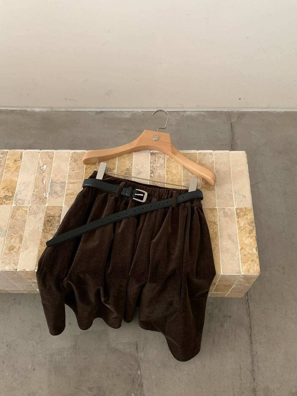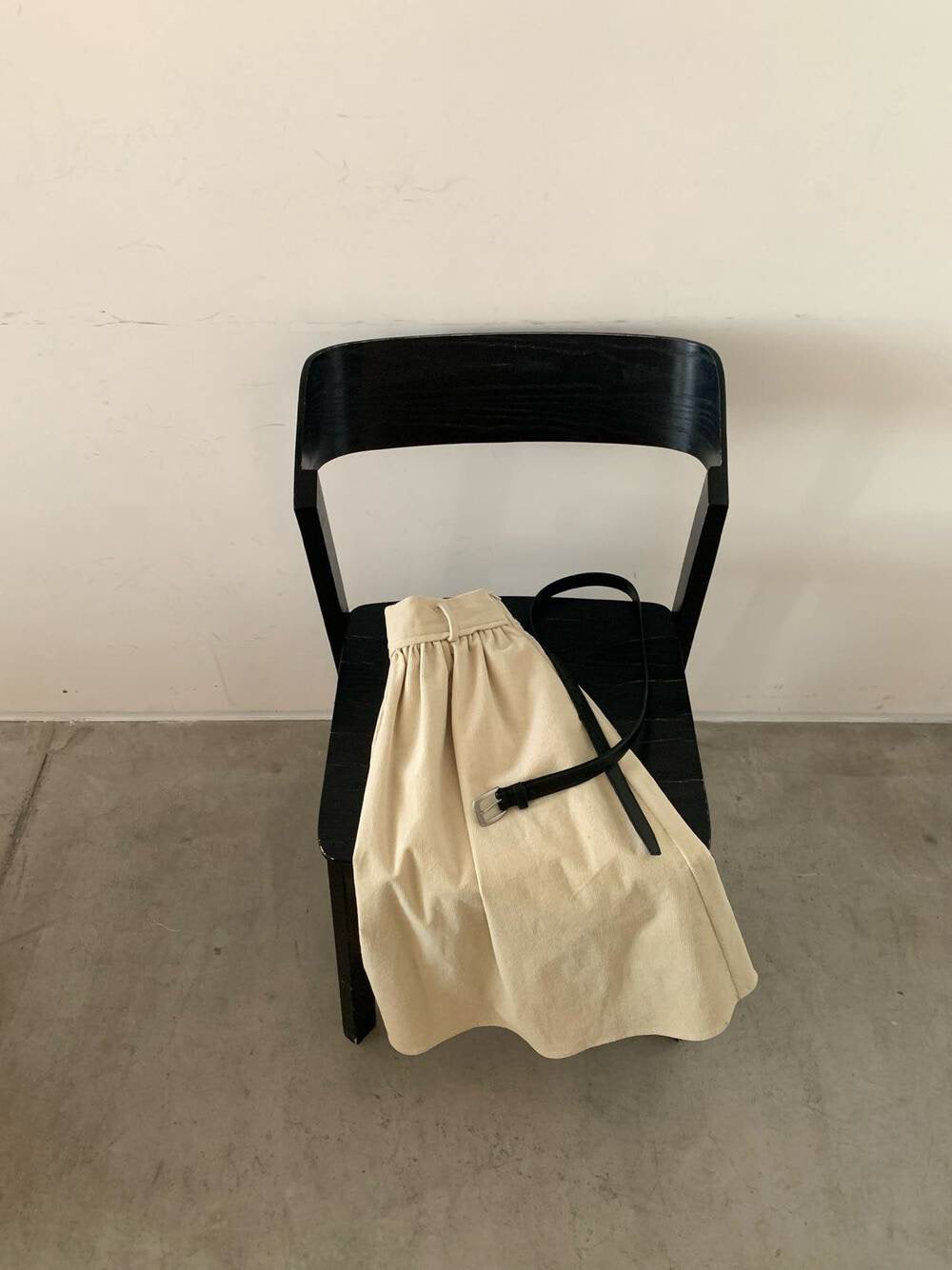 // 高腰壓褶簡約韓風中裙(連腰帶)