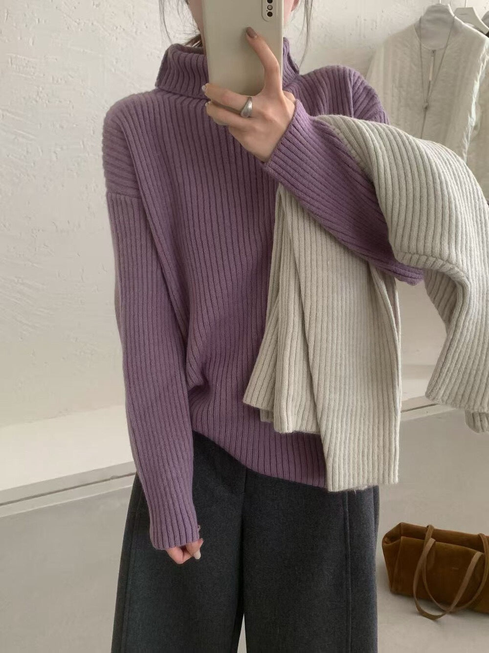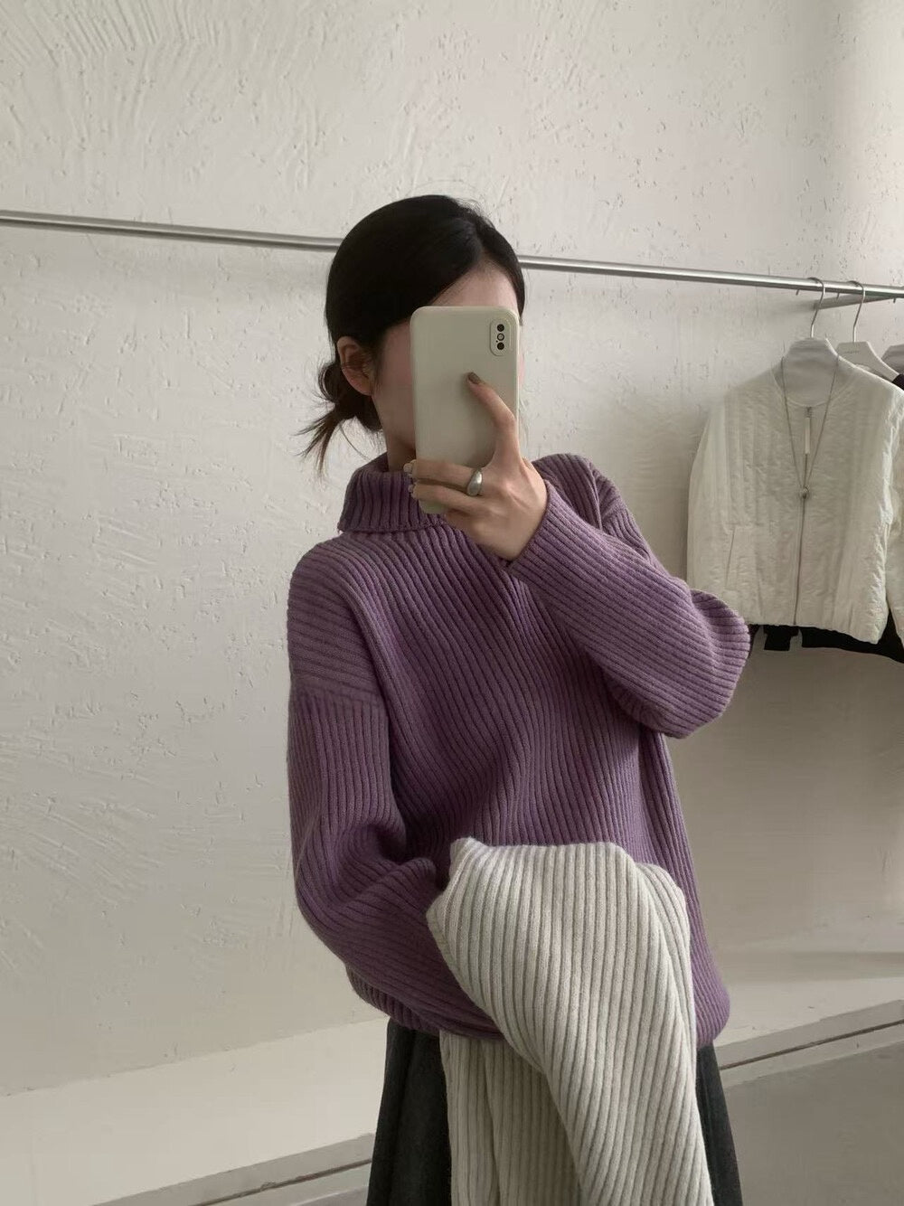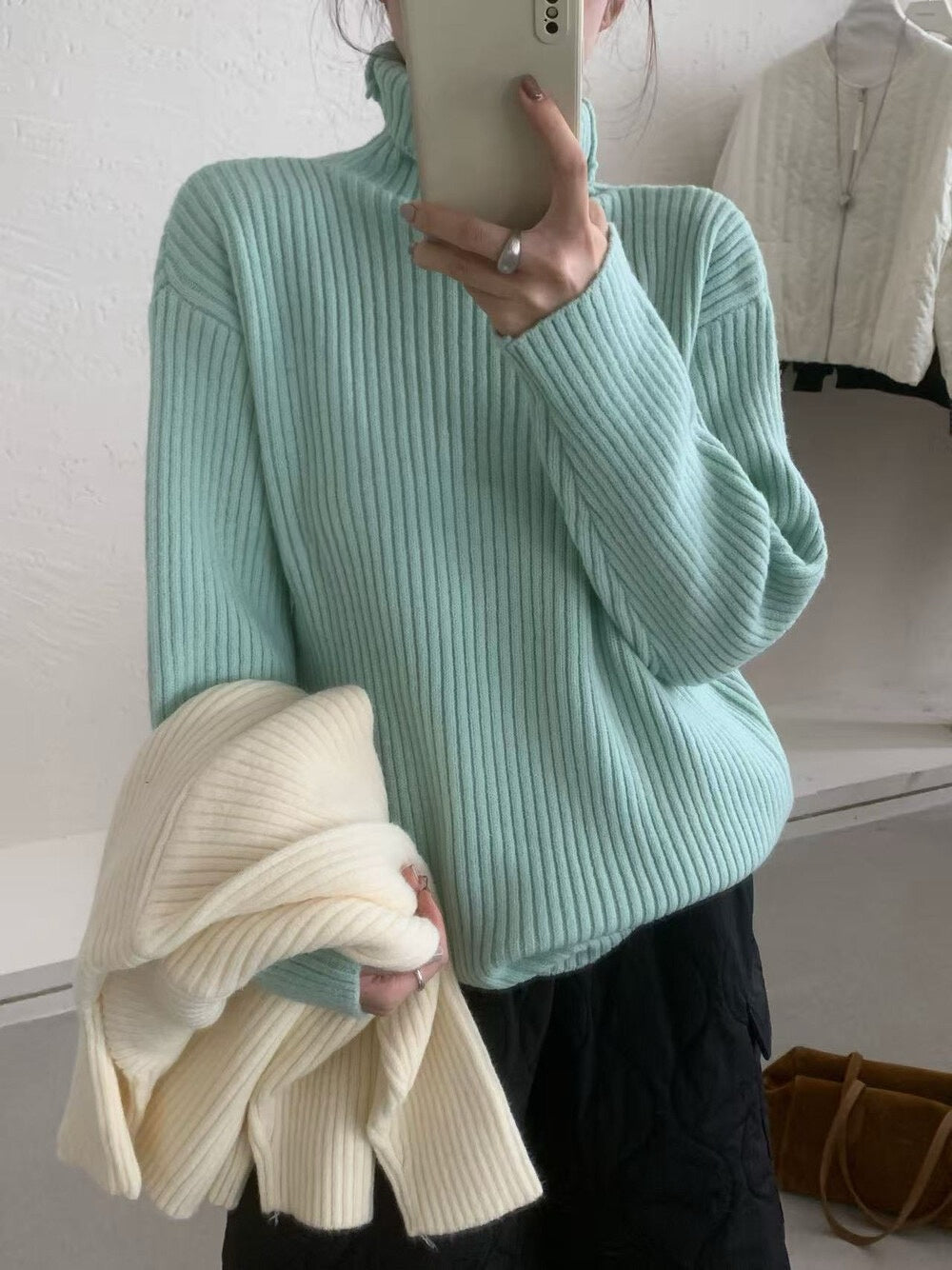 // 高領直坑紋親膚毛衣