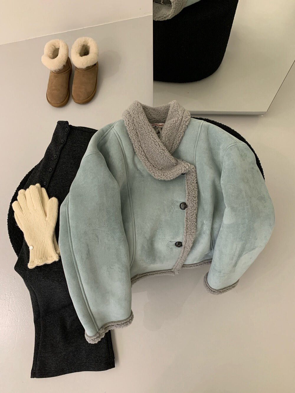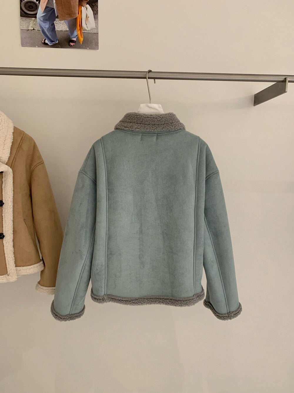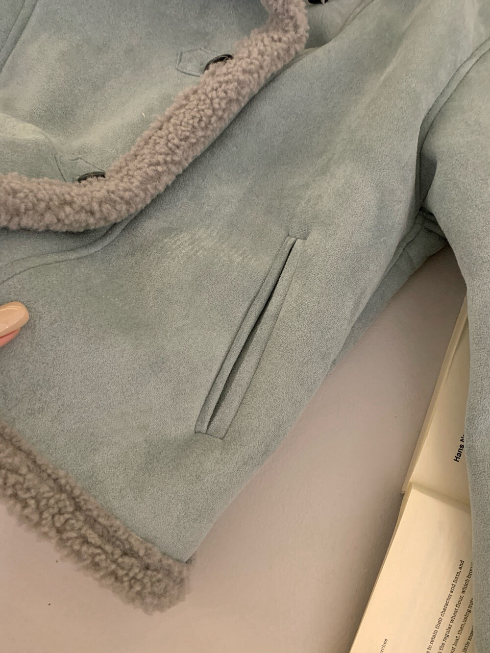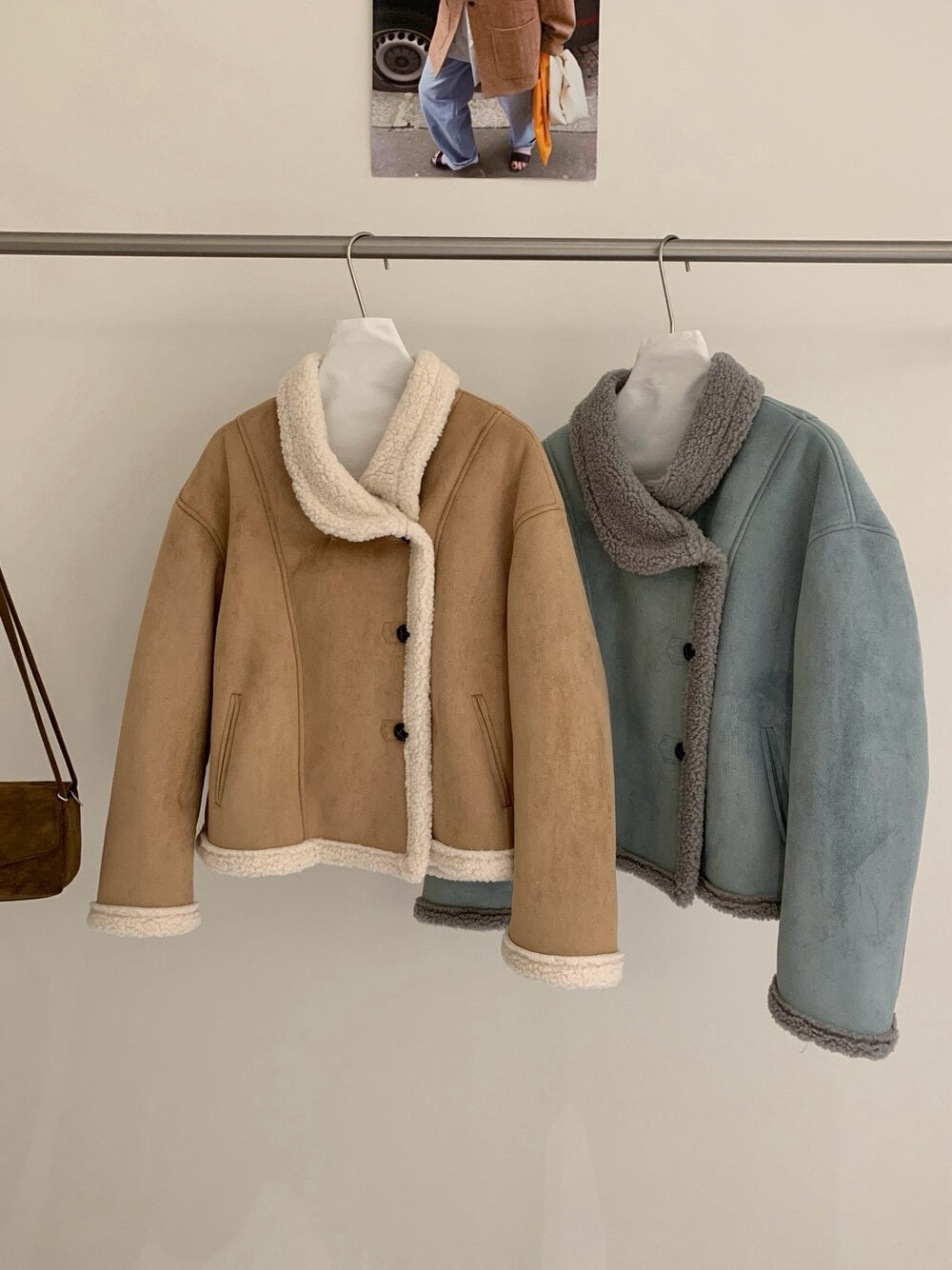 // 麂皮絨加羊羔毛底側排扣帥氣短款外套