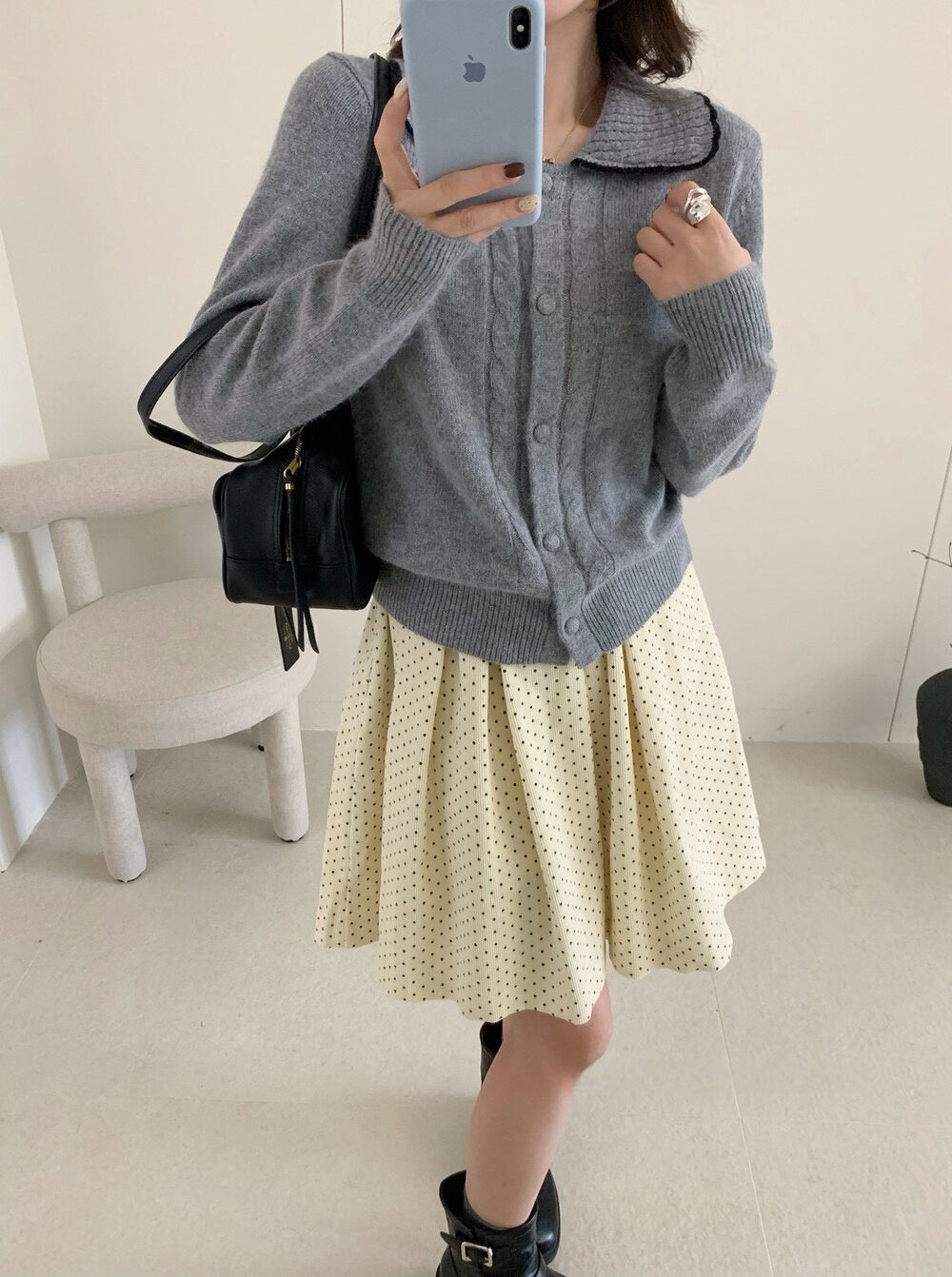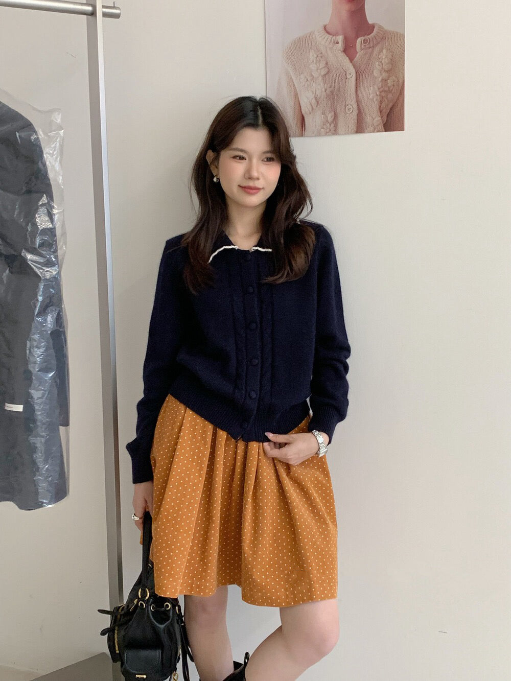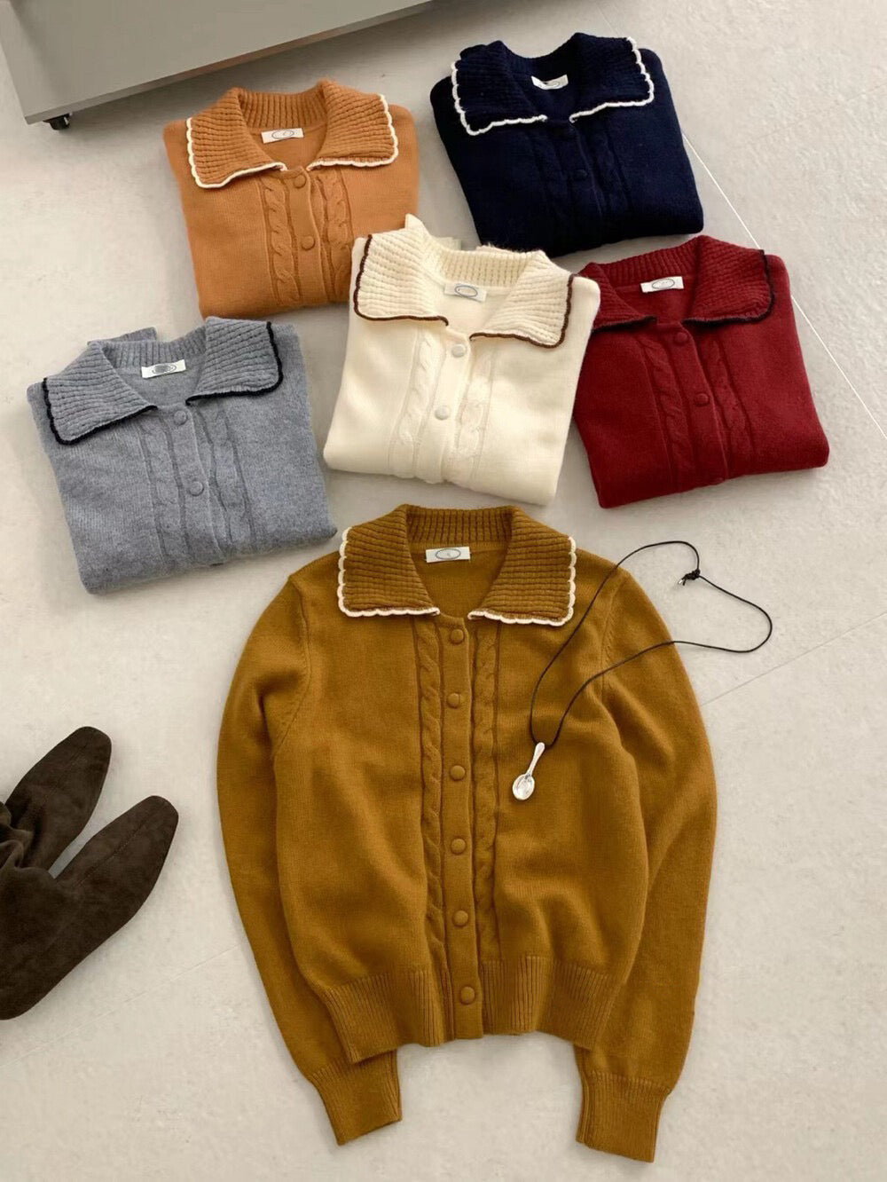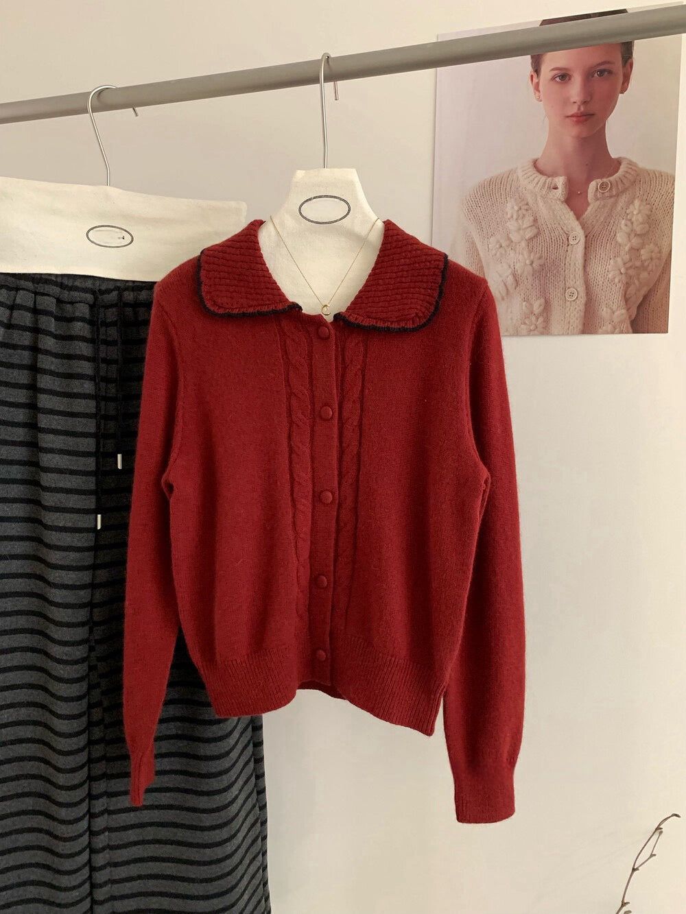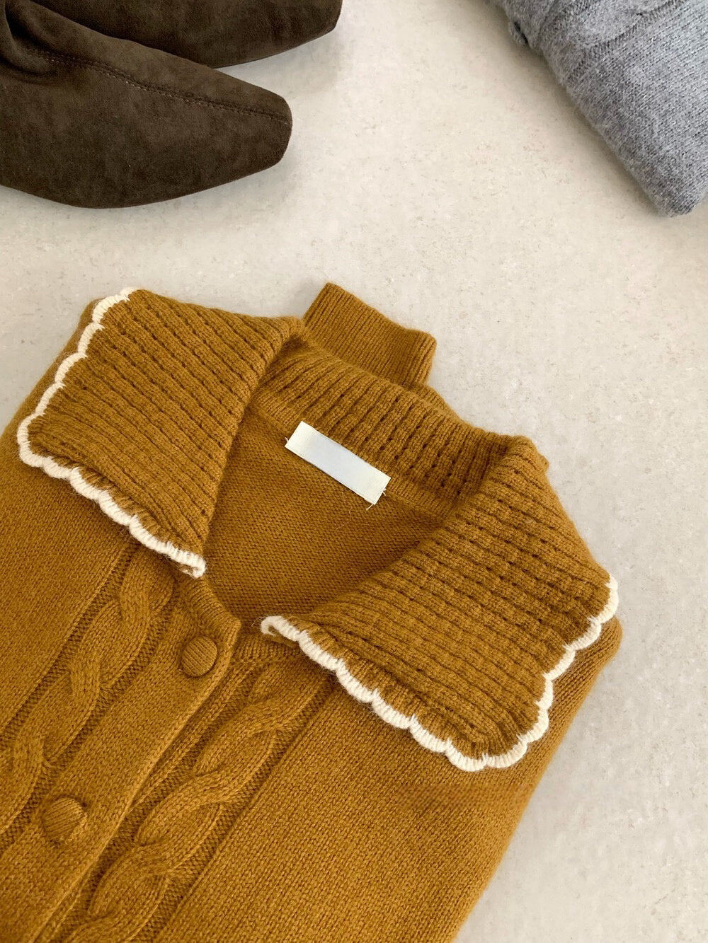 // 10%兔絨撞色花邊領拼麻花紋NT