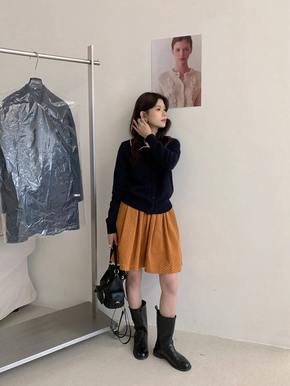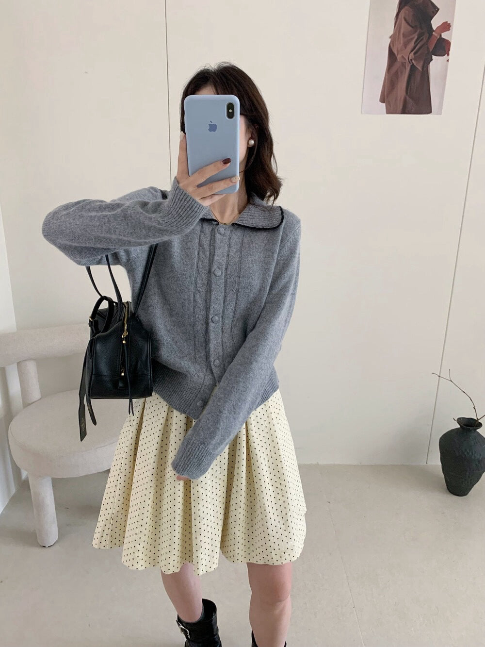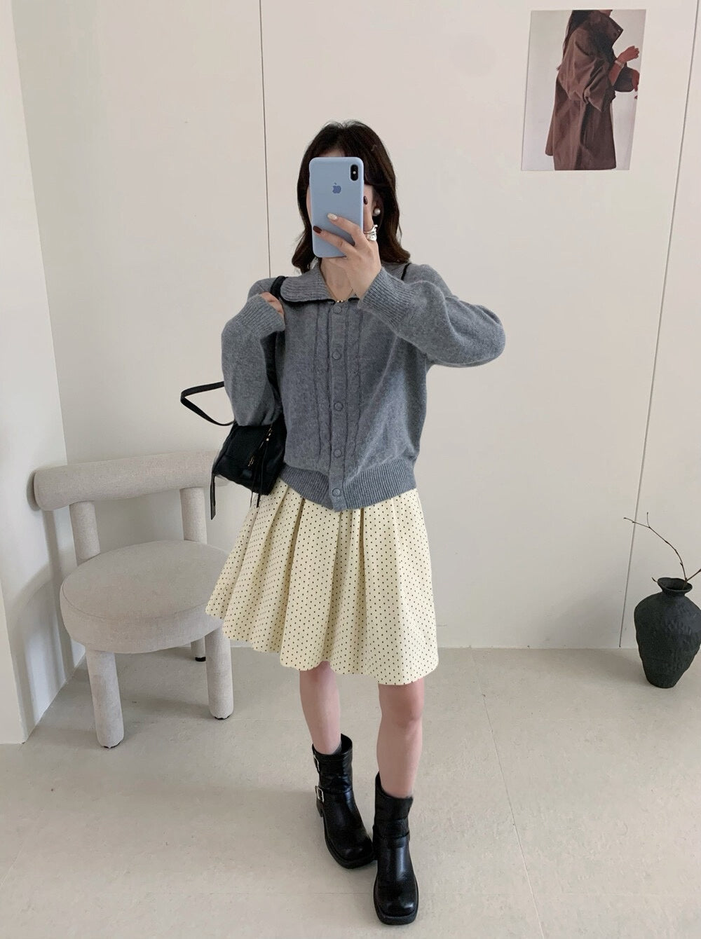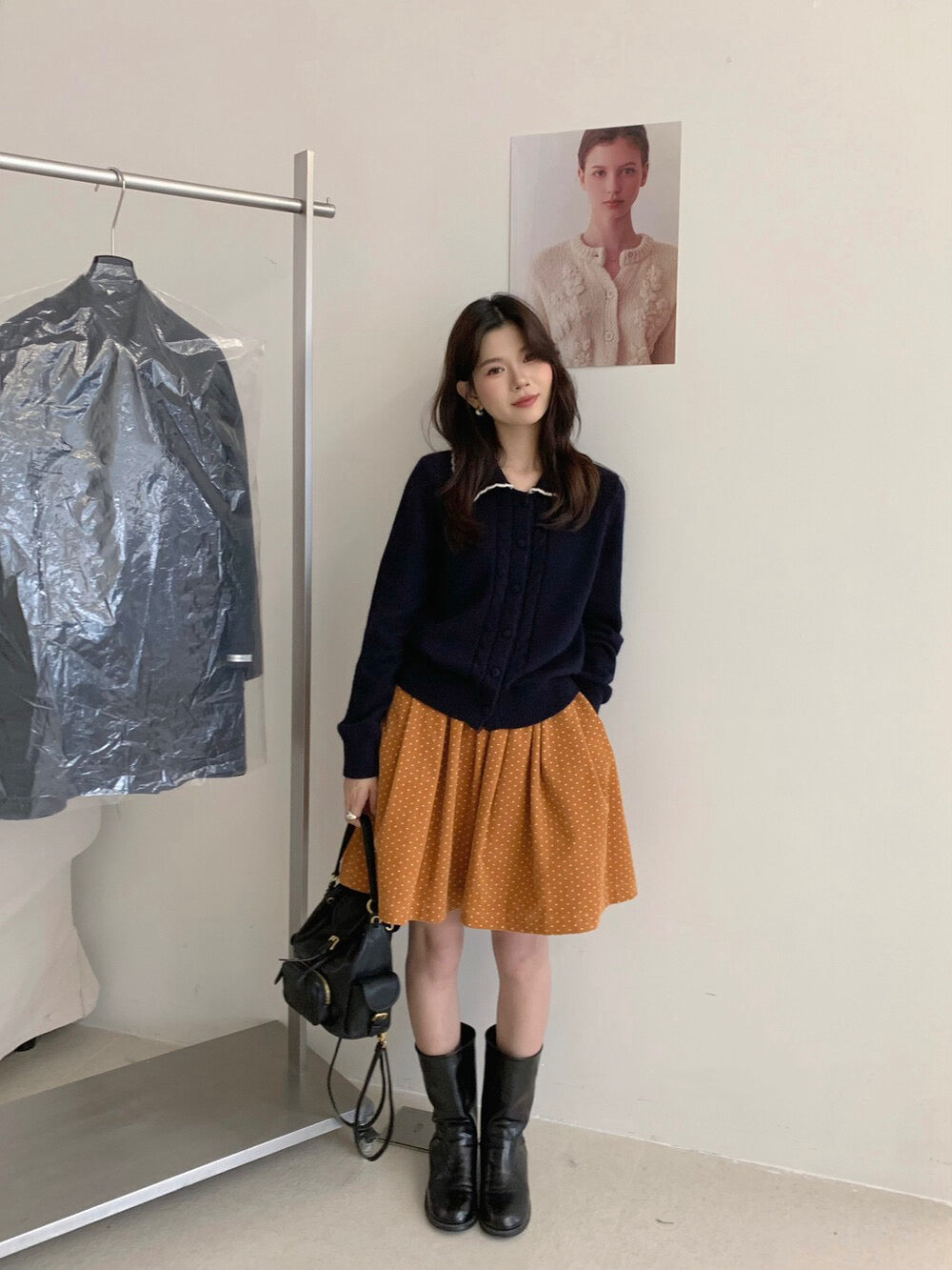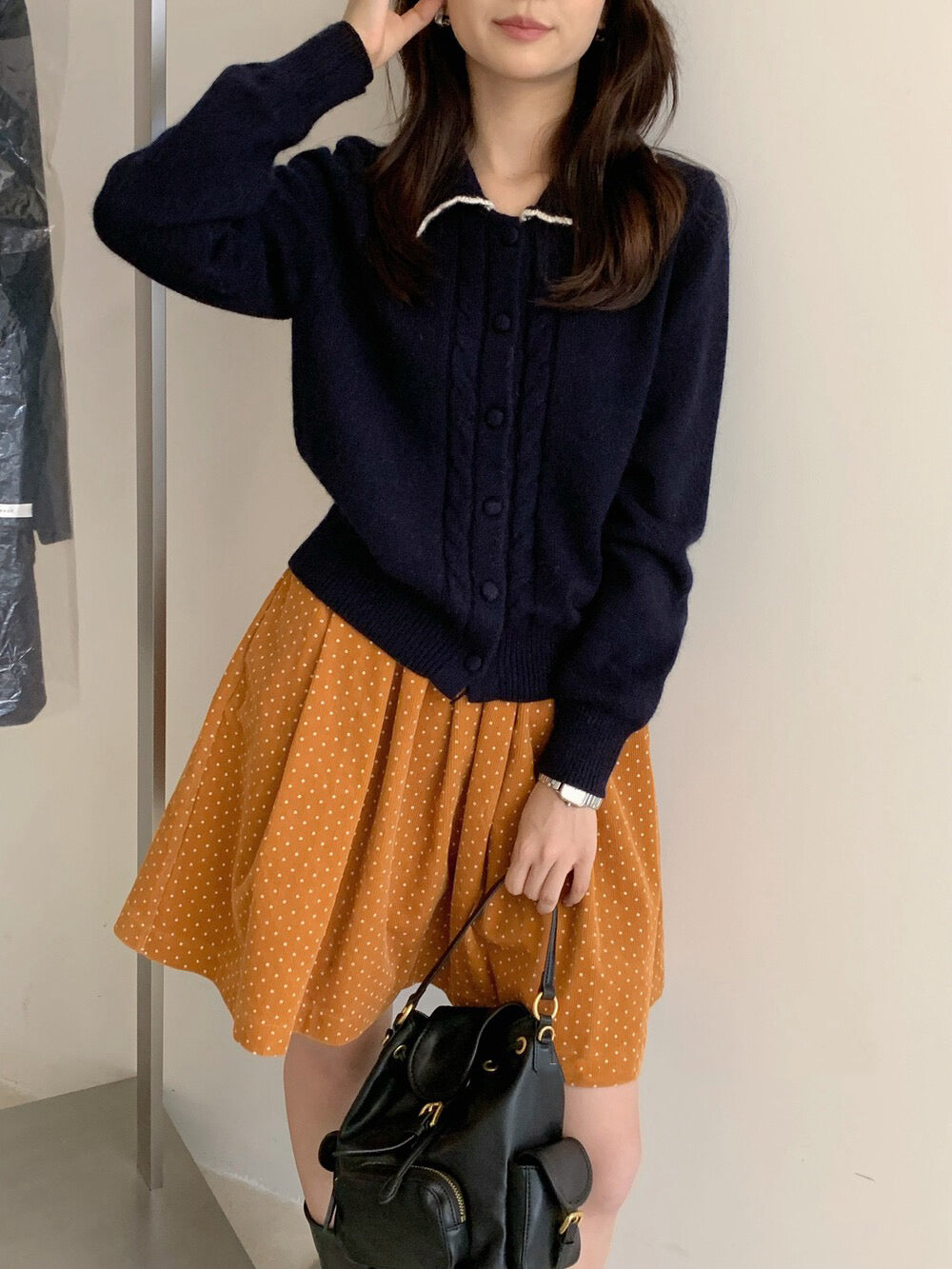 // 10%兔絨撞色花邊領拼麻花紋NT