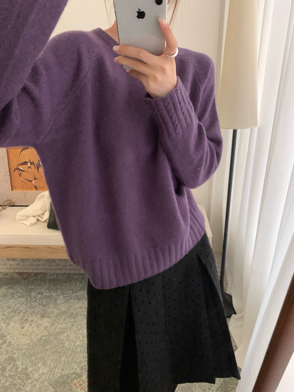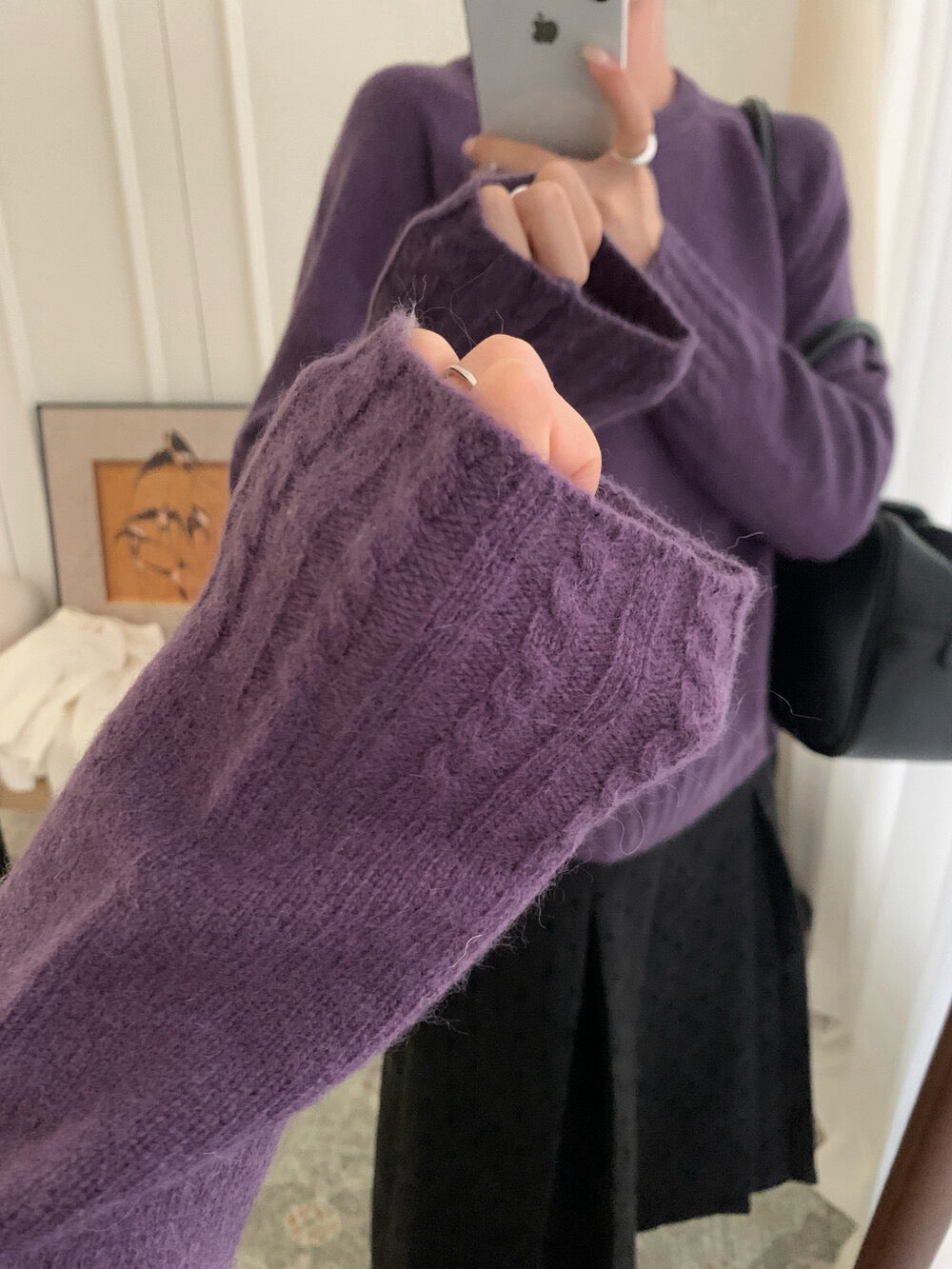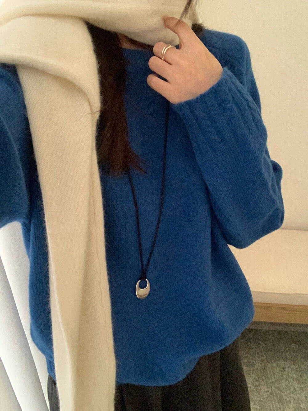 // 10%兔絨麻花衣擺+袖口套頭毛衣