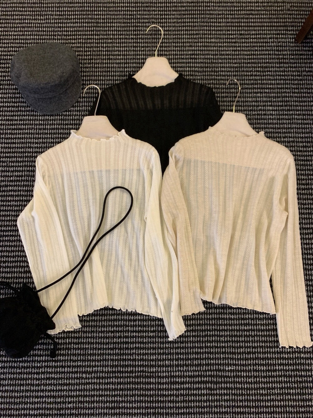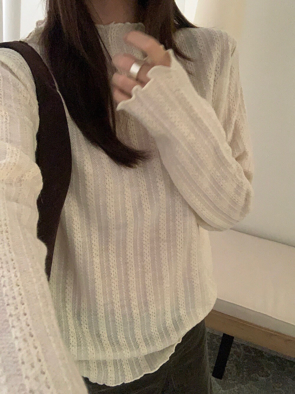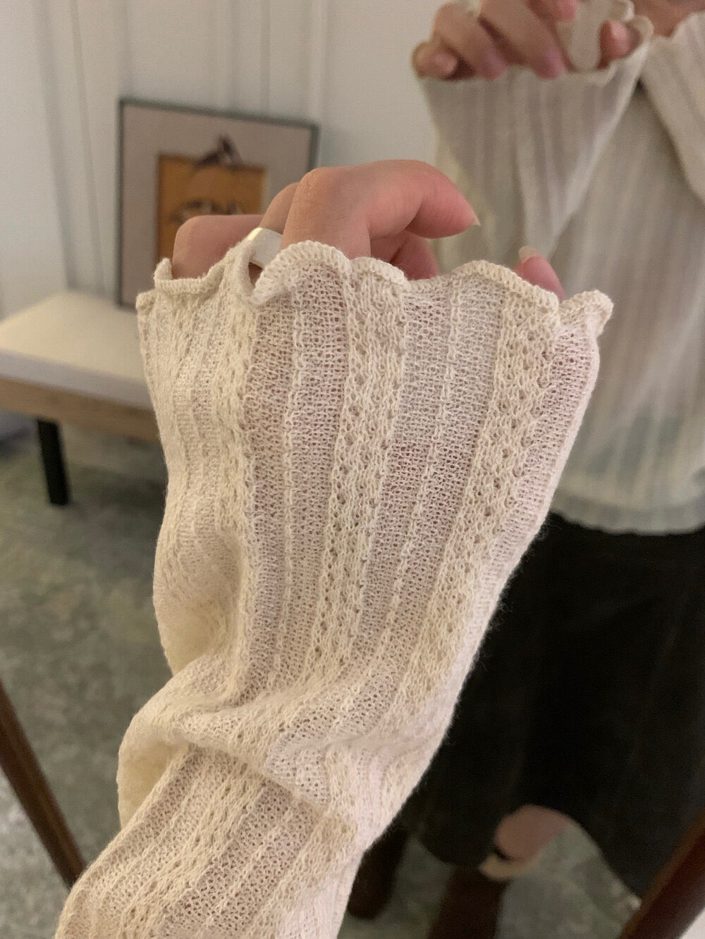// 10%羊毛木耳邊lace鈎花打底上衣