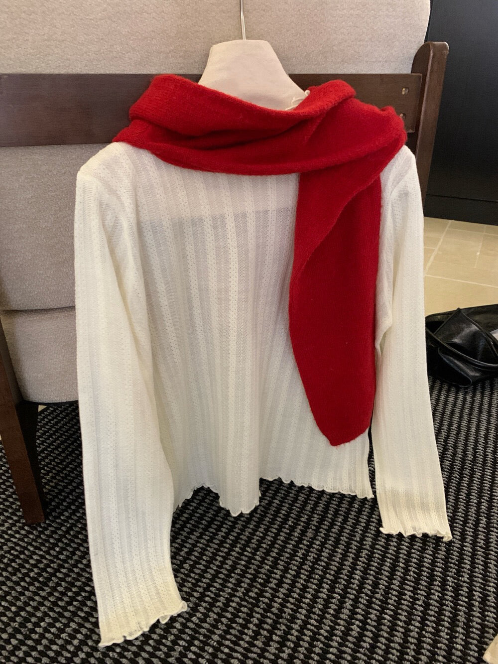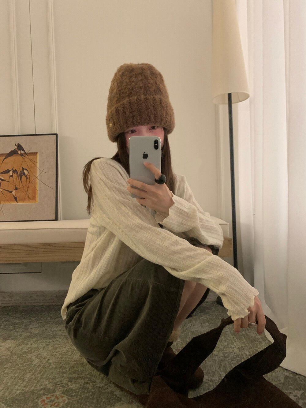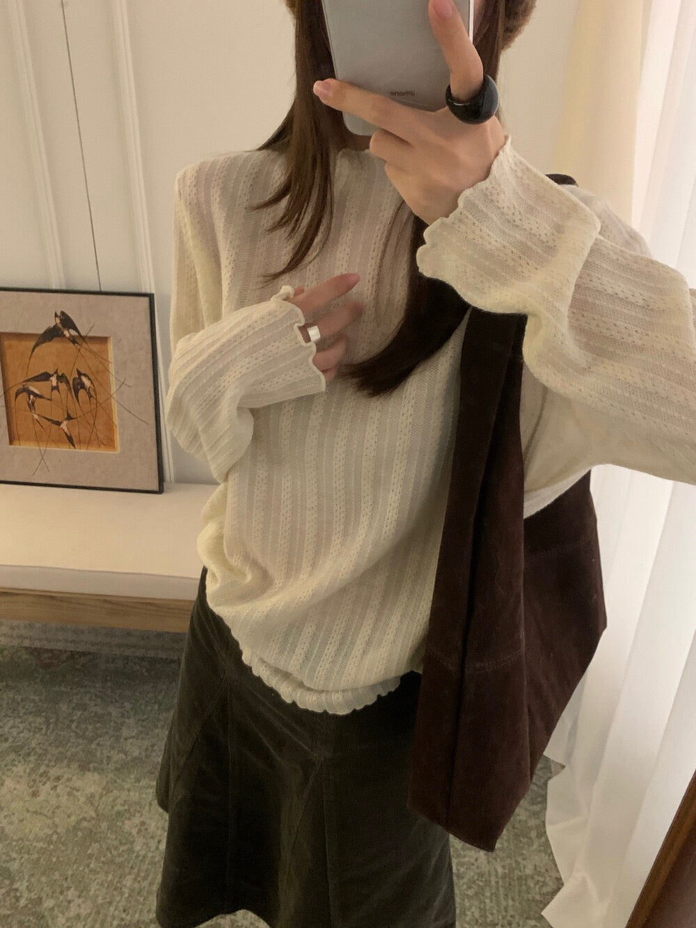 // 10%羊毛木耳邊lace鈎花打底上衣