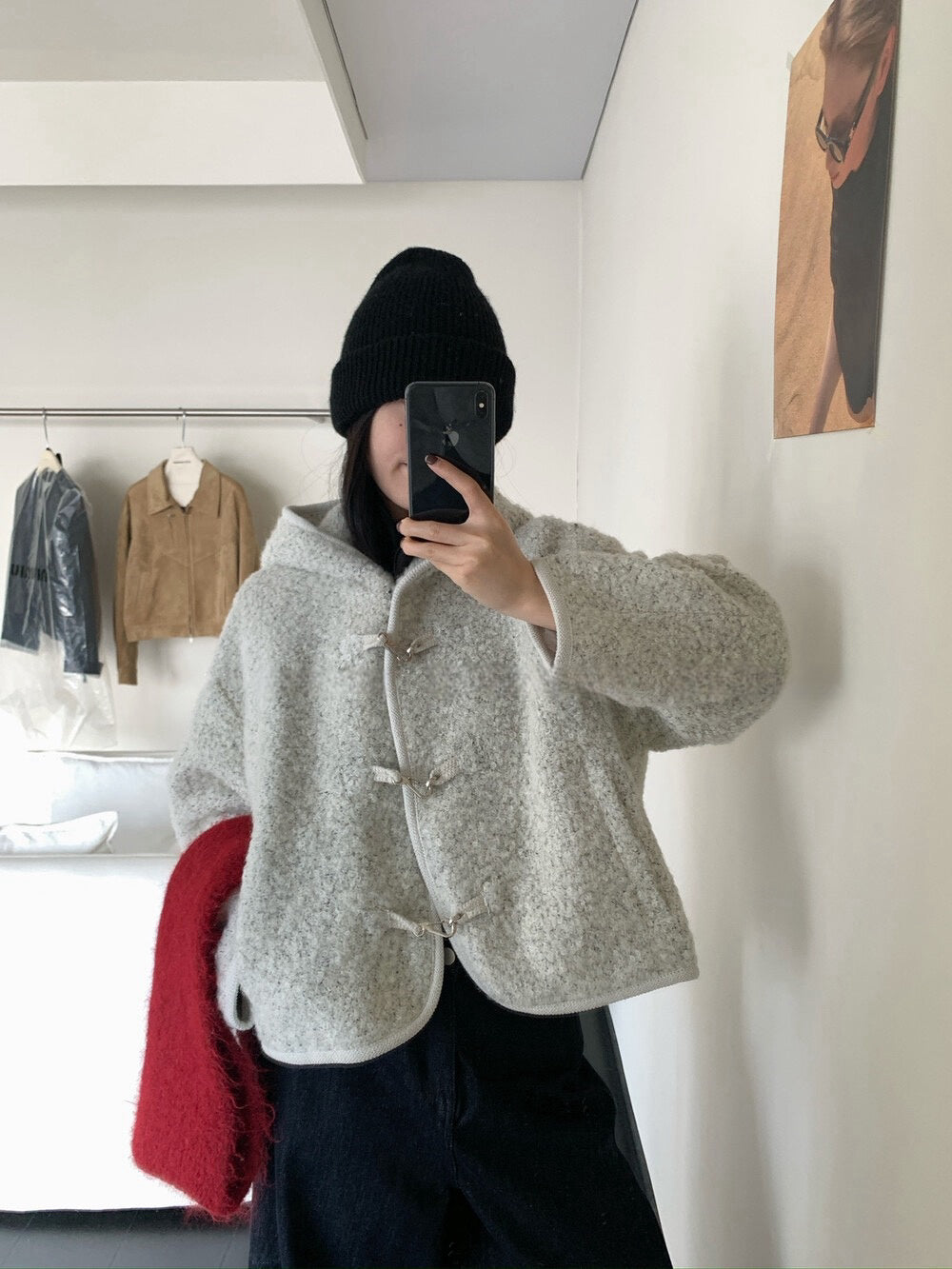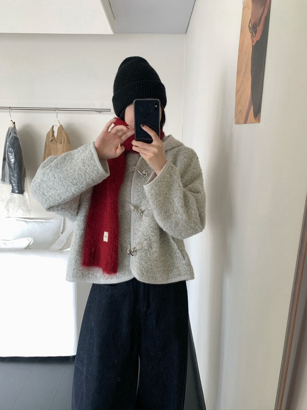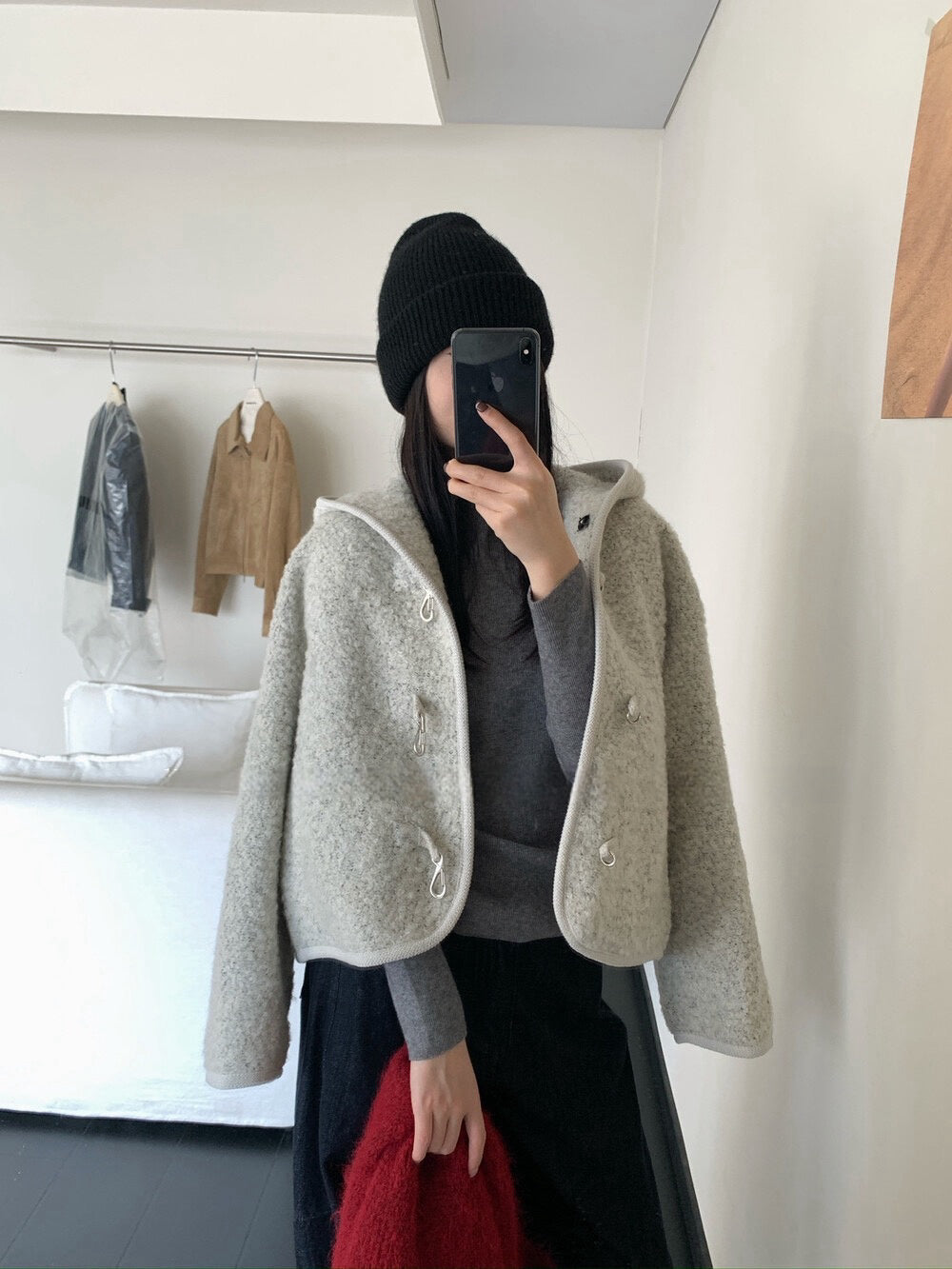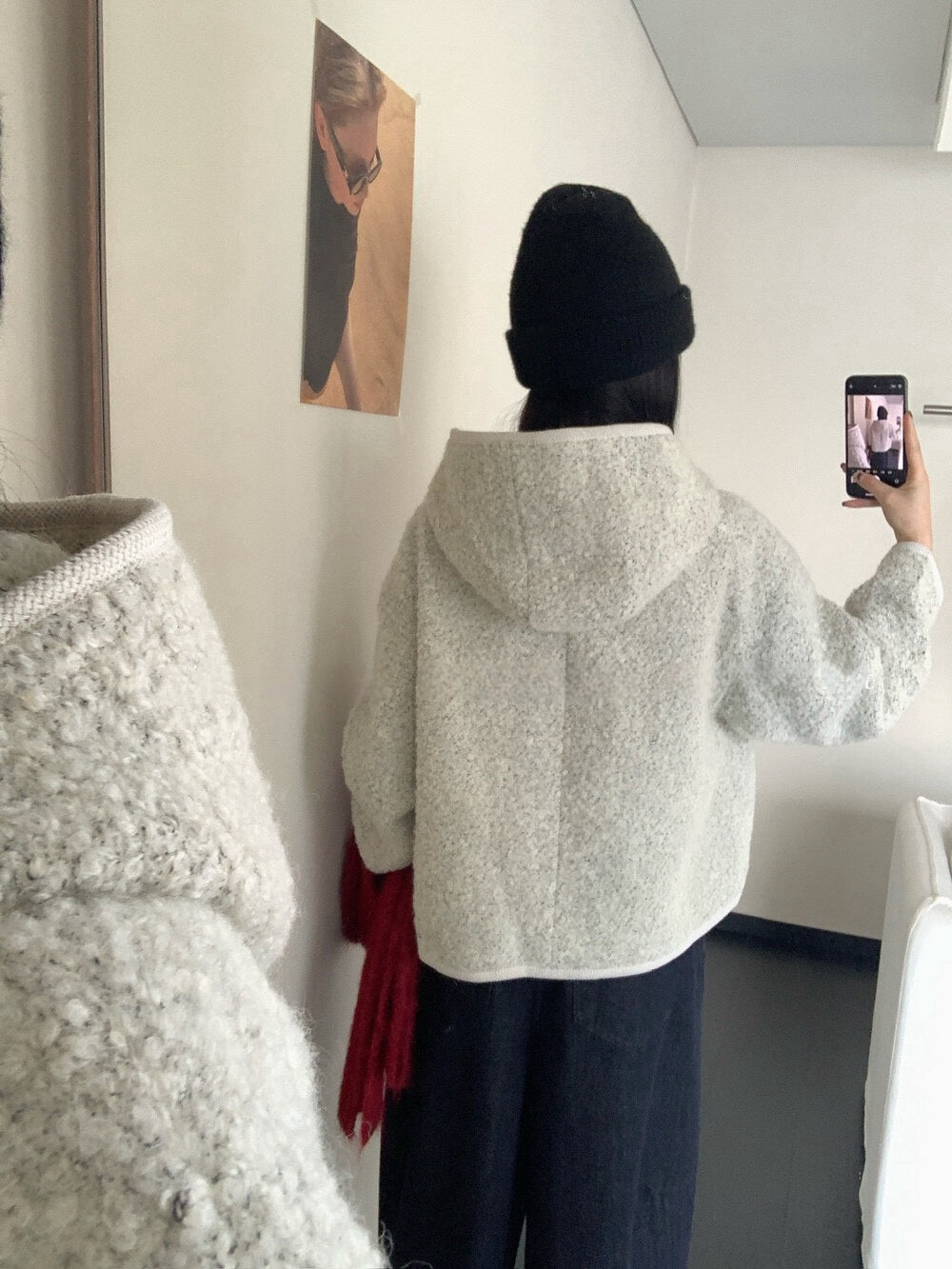 // 10%羊羔毛圈圈絨銀扣連帽外套