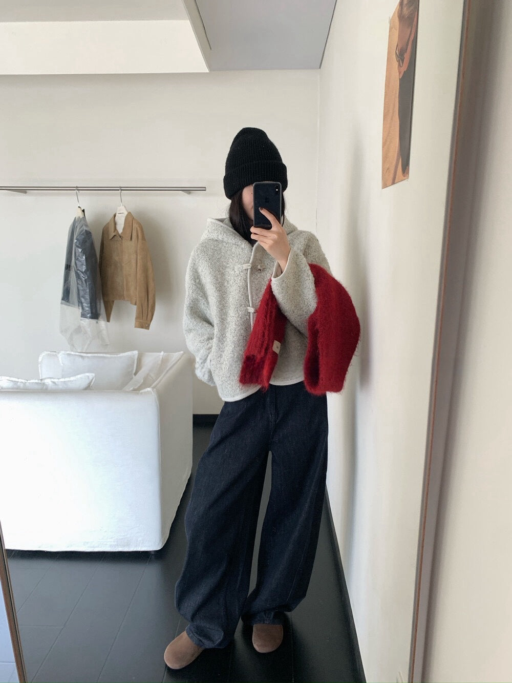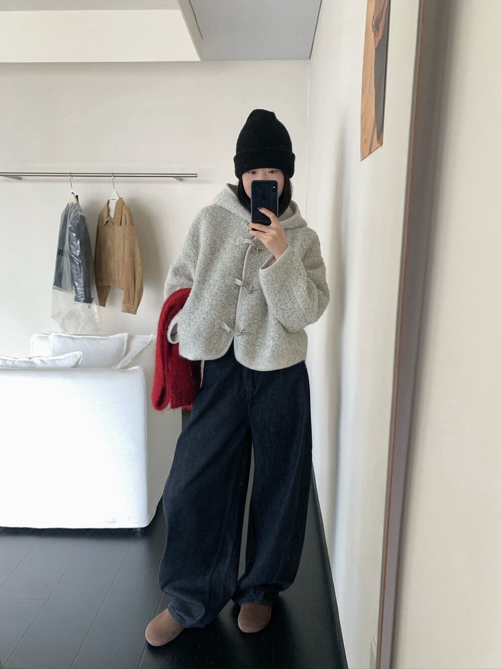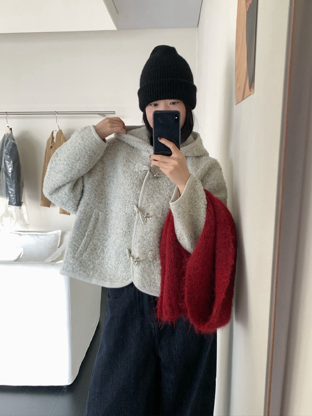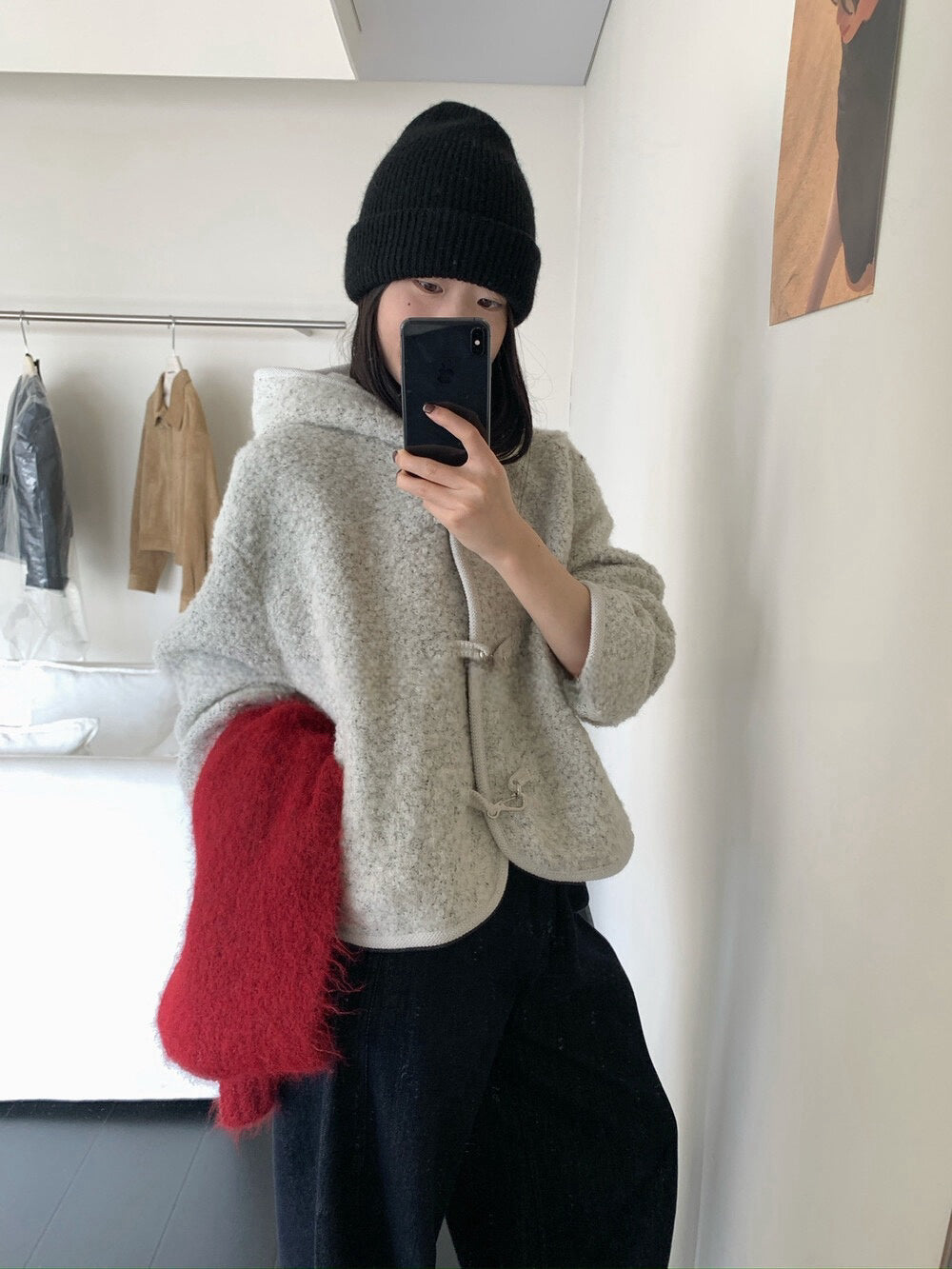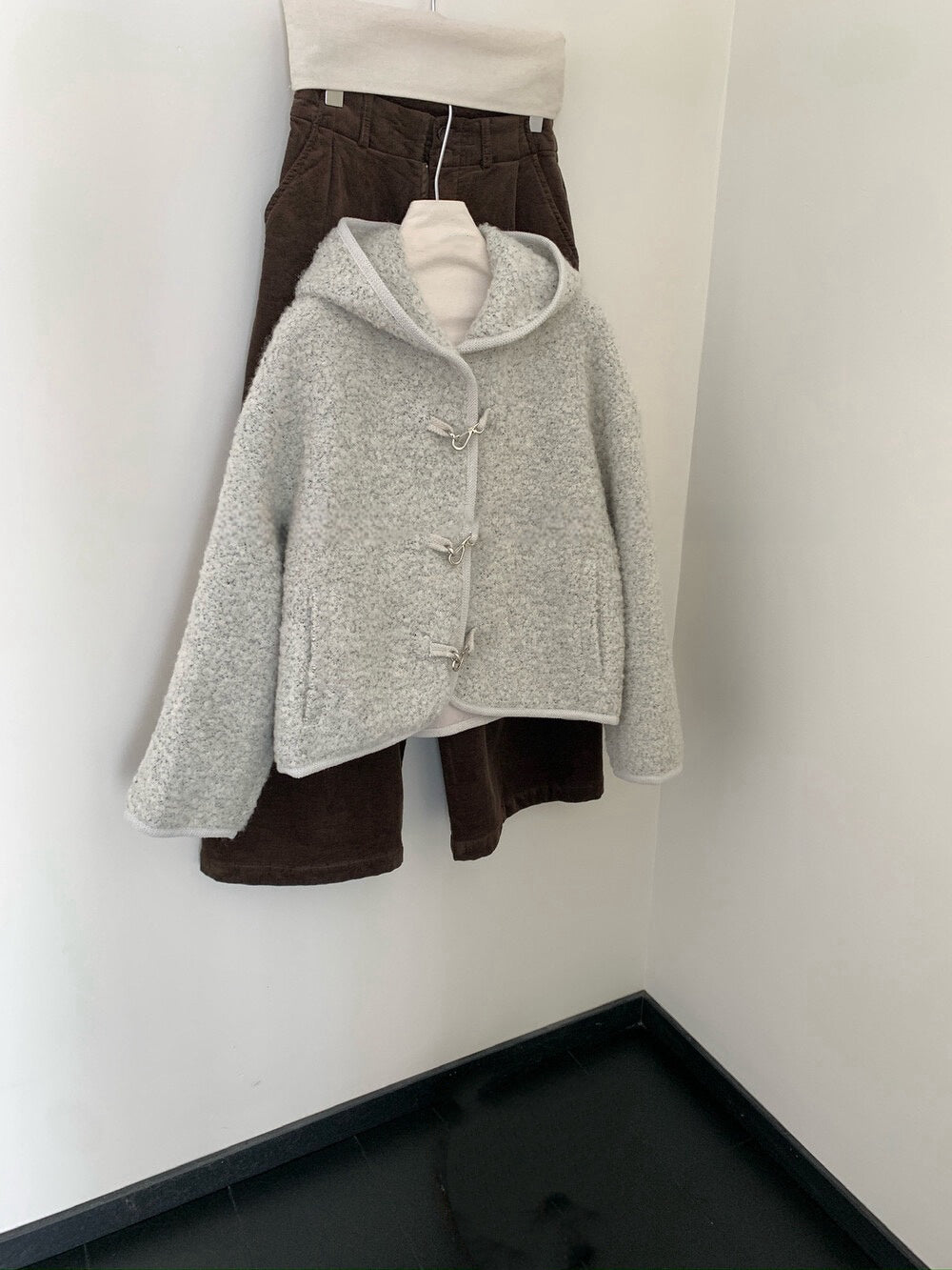 // 10%羊羔毛圈圈絨銀扣連帽外套