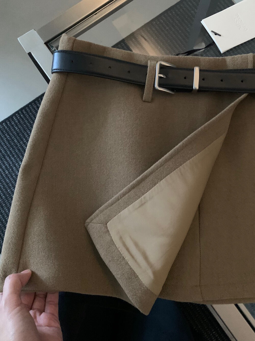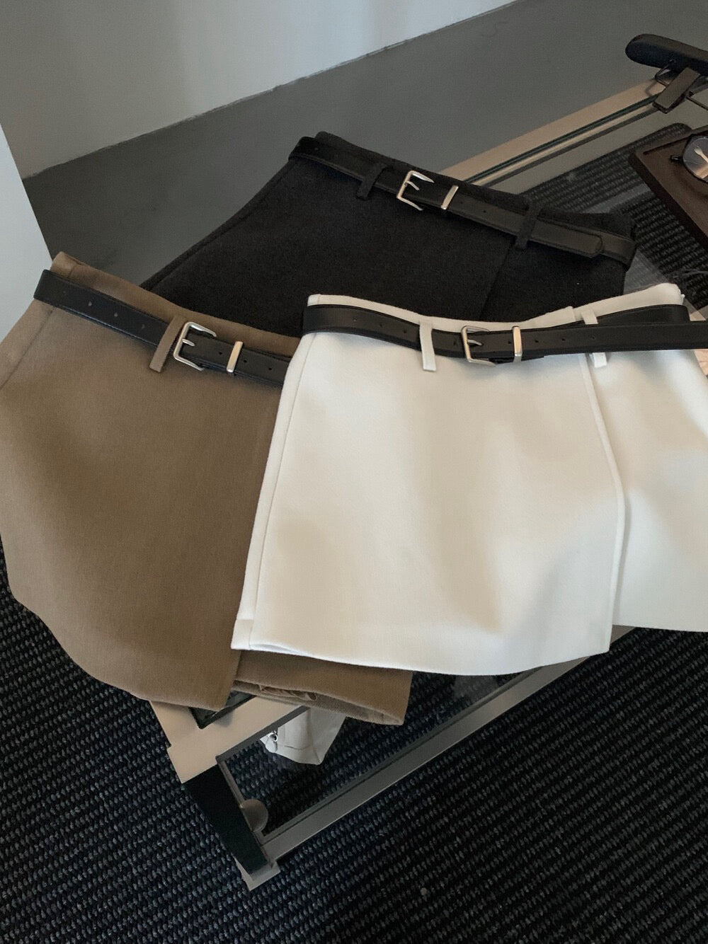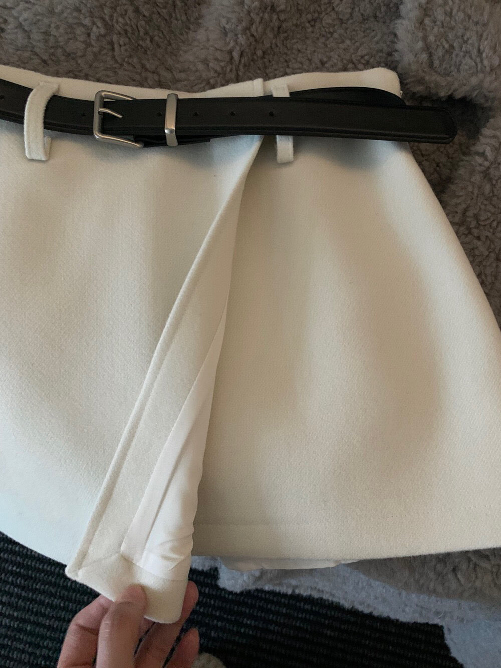 // 10%wool超拉長比例的連腰帶雙層毛呢短裙(內連內裡打底褲)