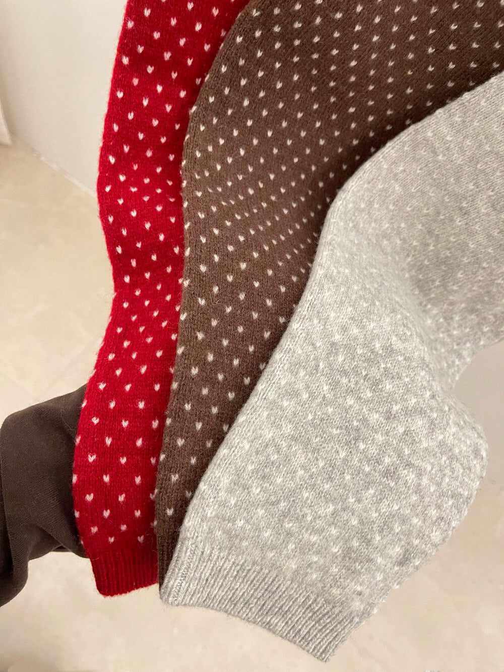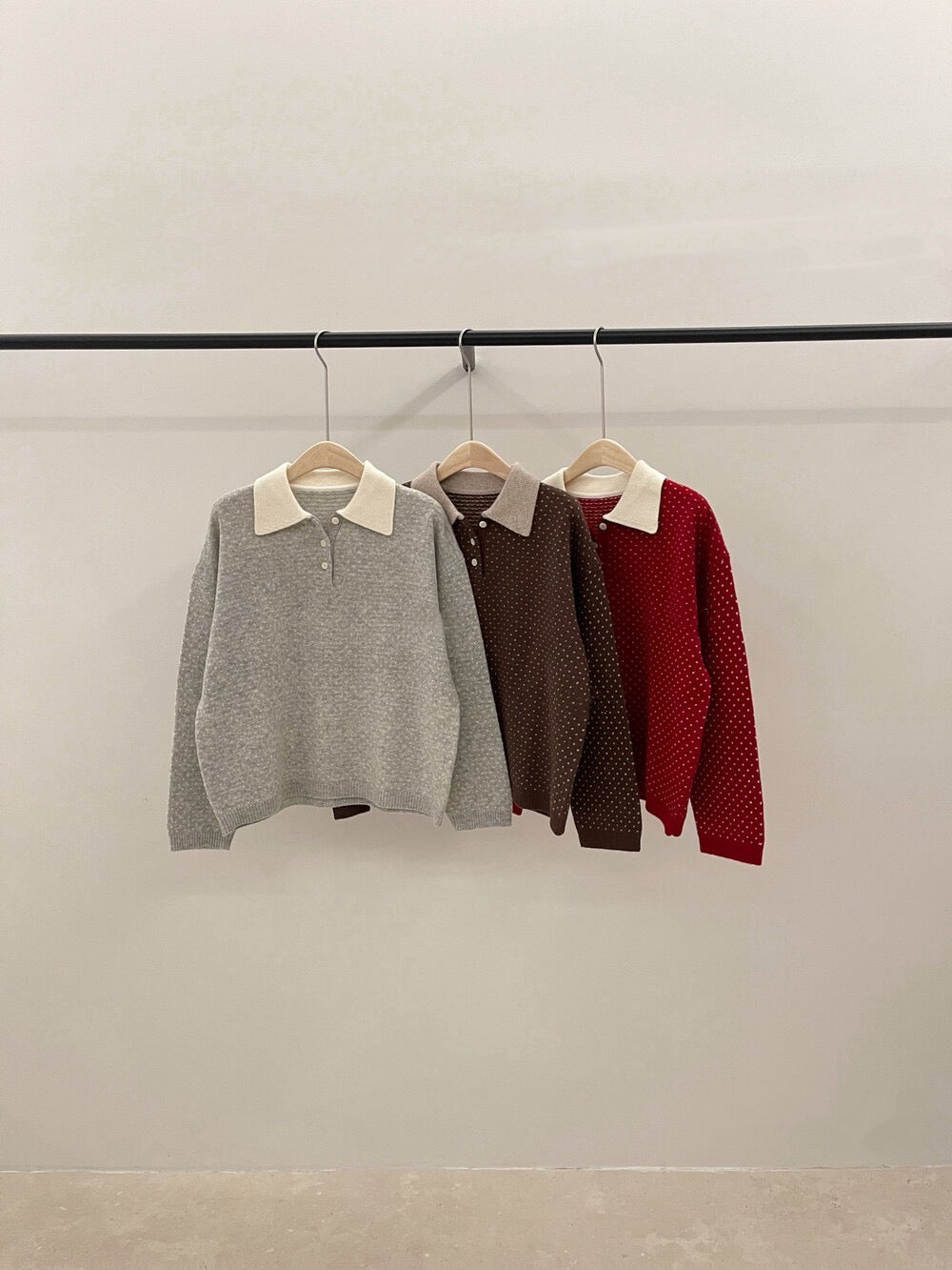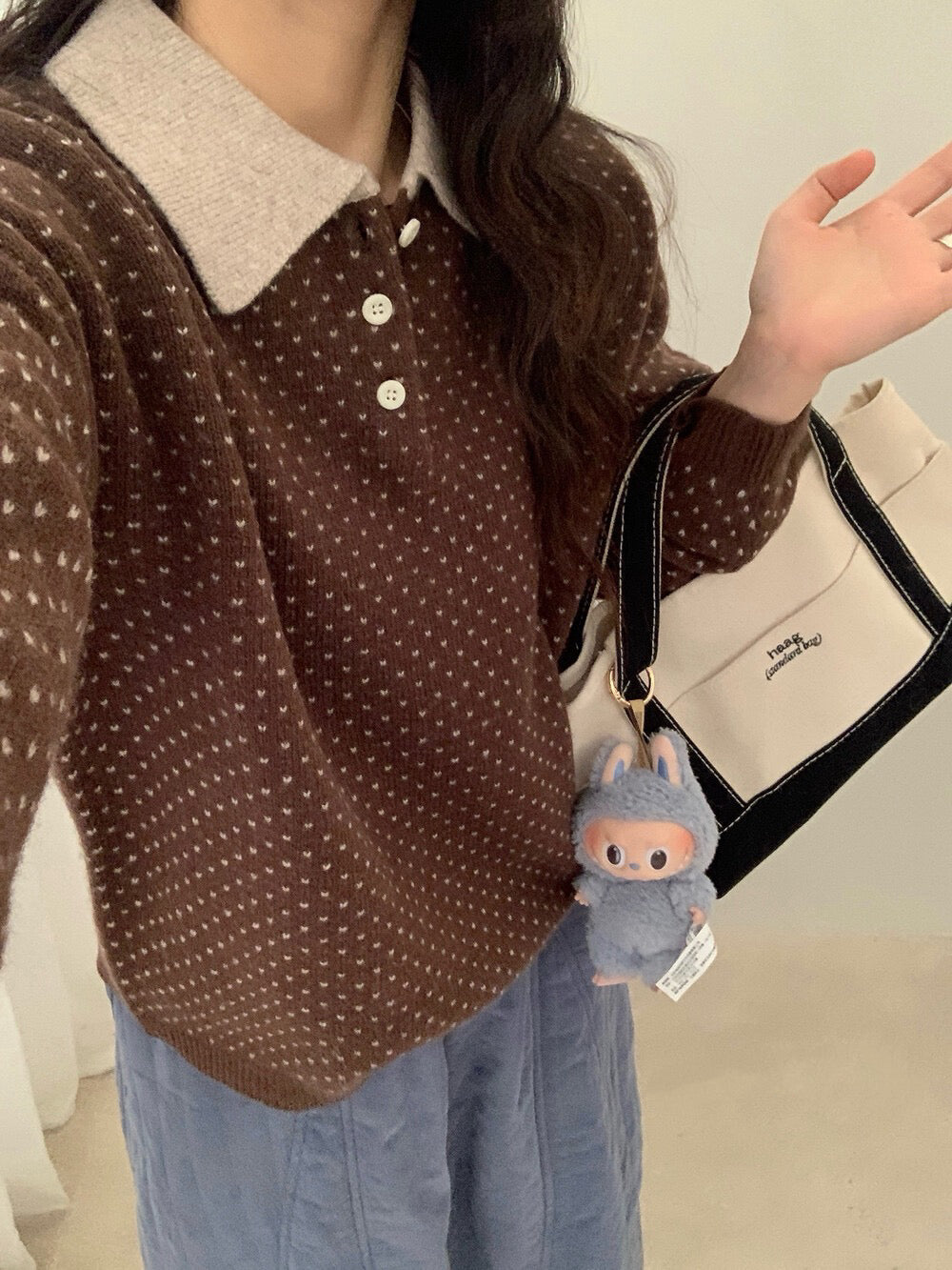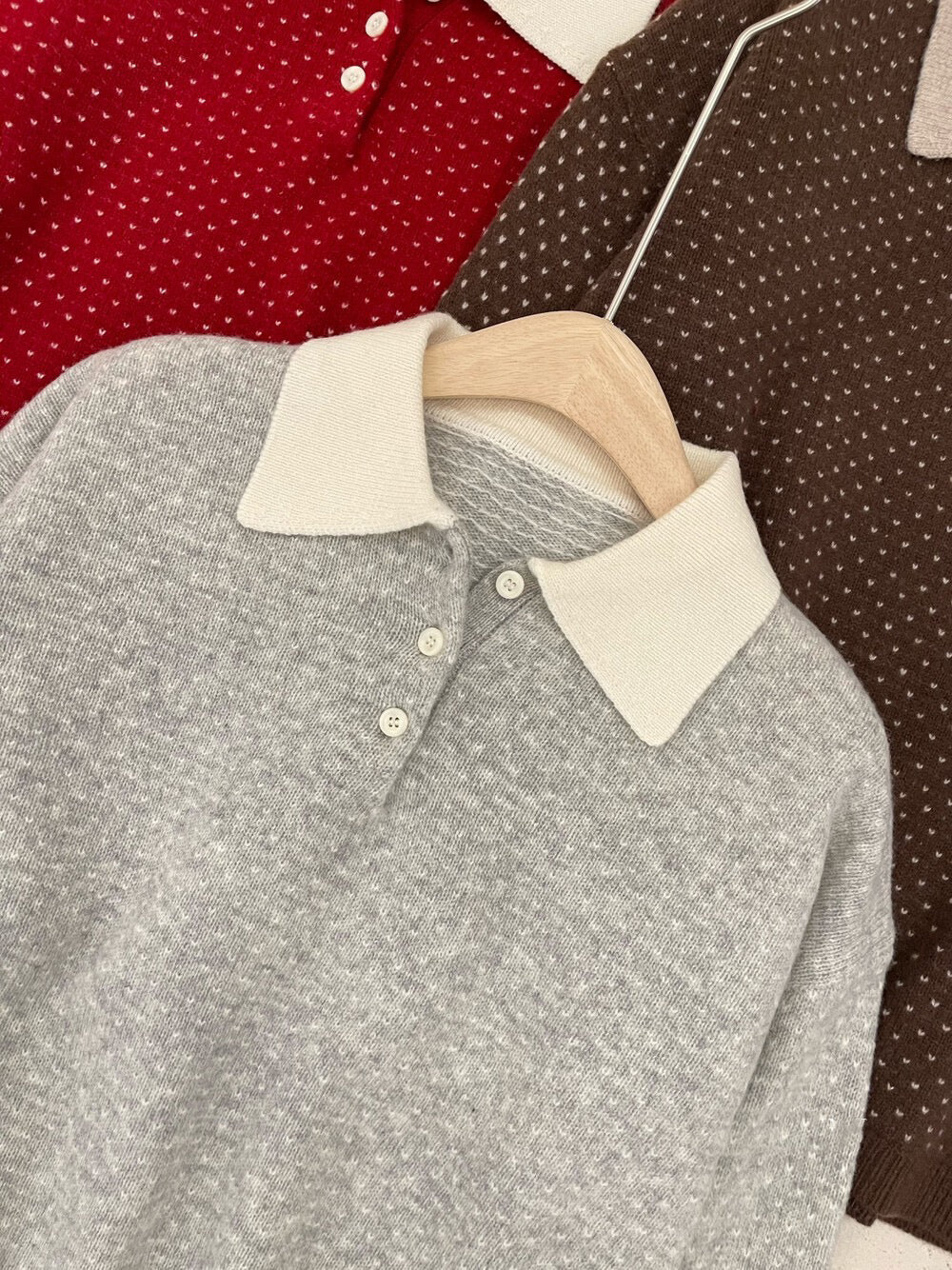 // 100%綿羊毛小心心點點撞色翻領NT