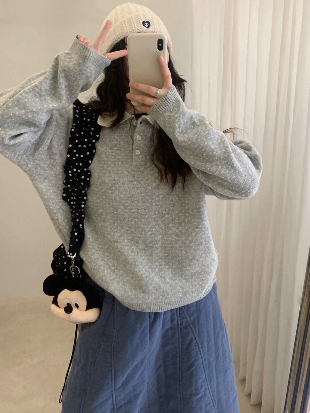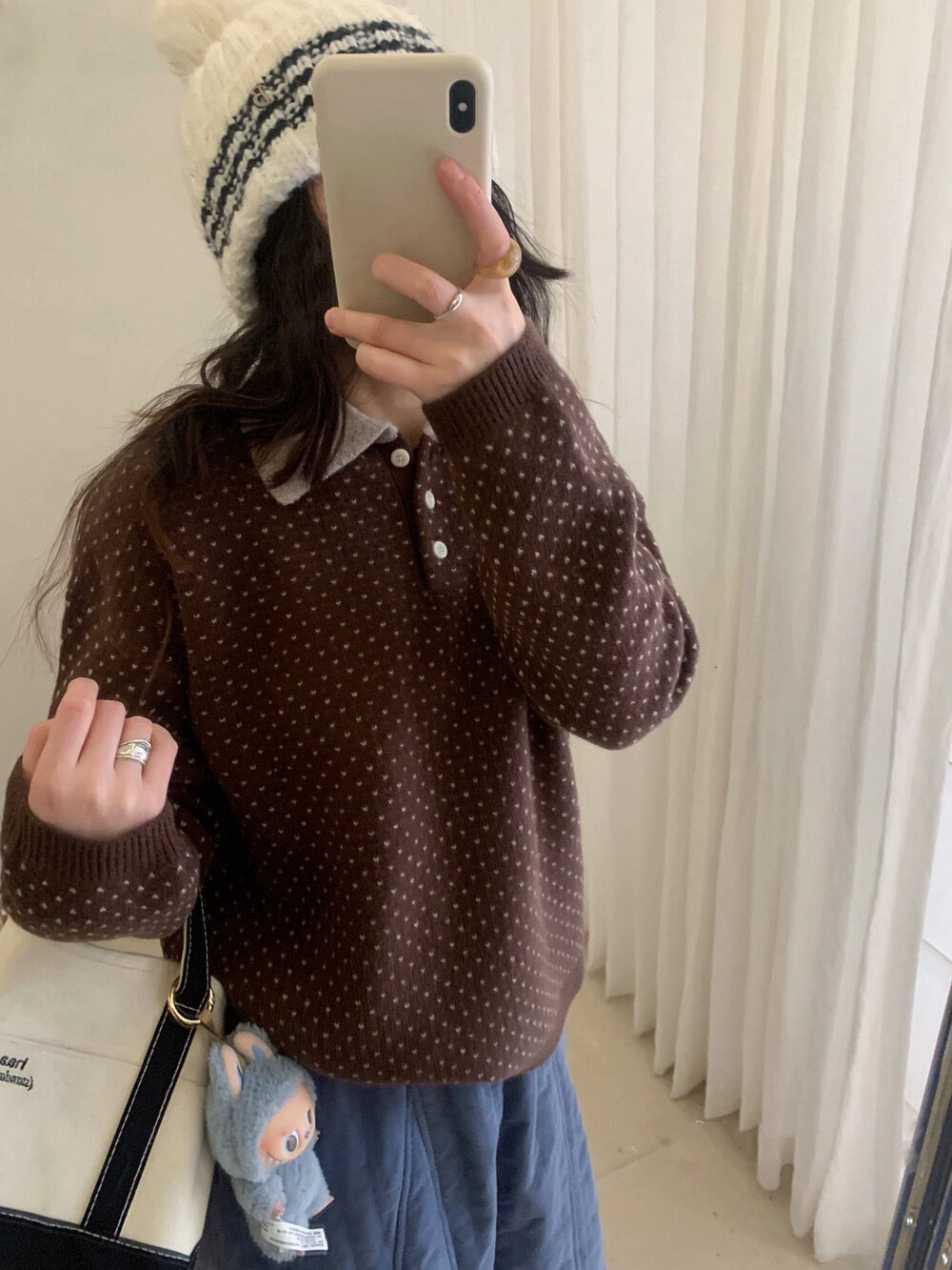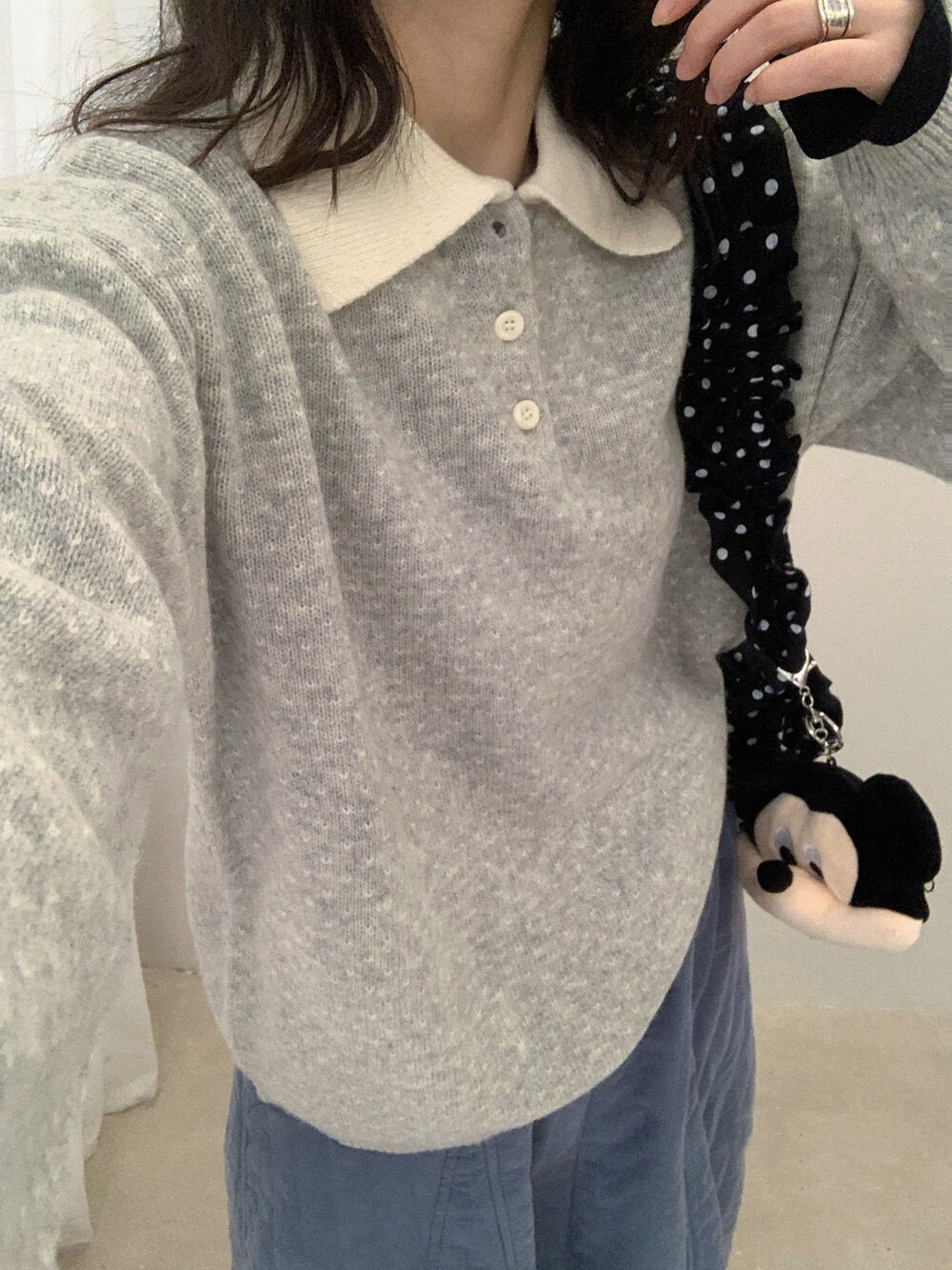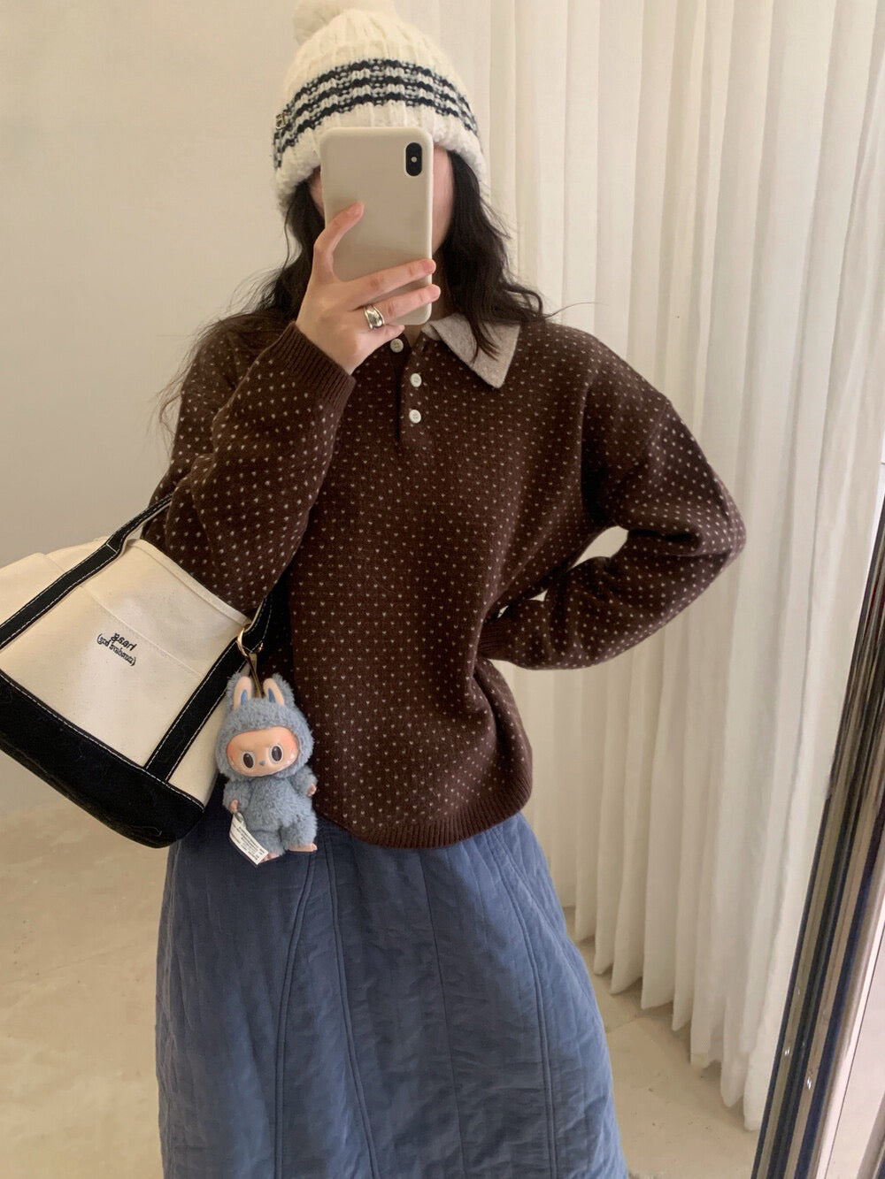 // 100%綿羊毛小心心點點撞色翻領NT
