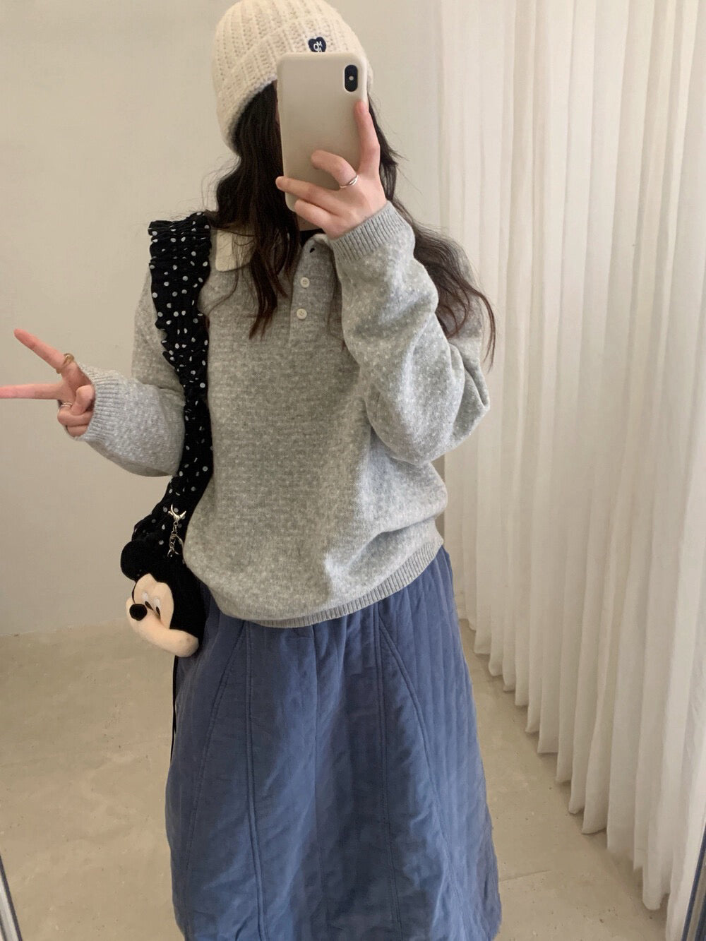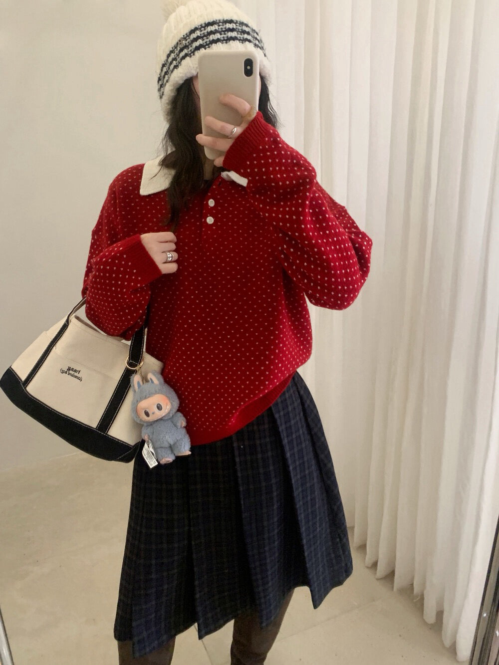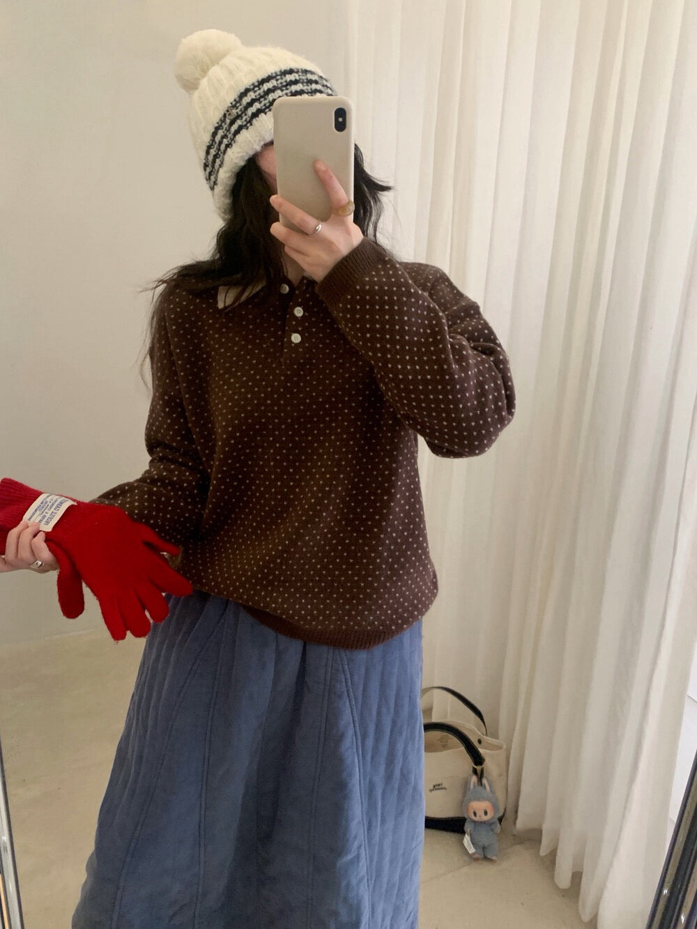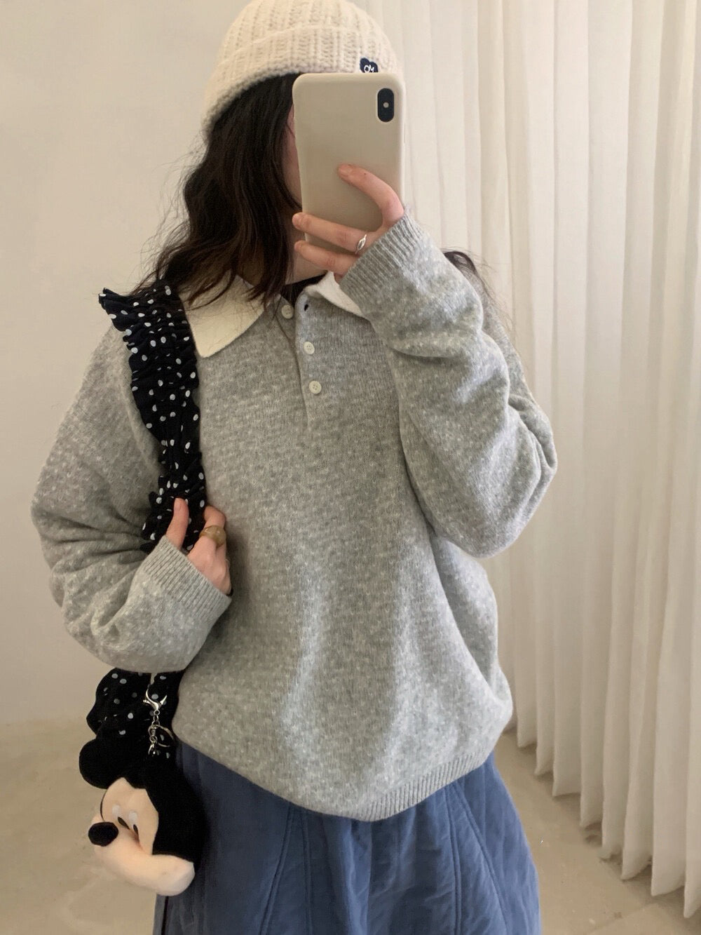 // 100%綿羊毛小心心點點撞色翻領NT