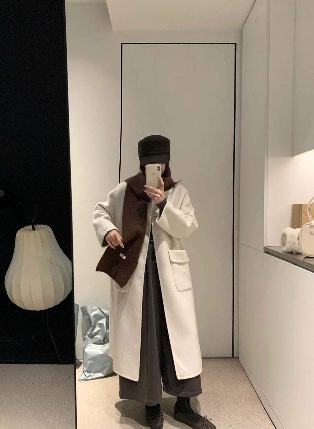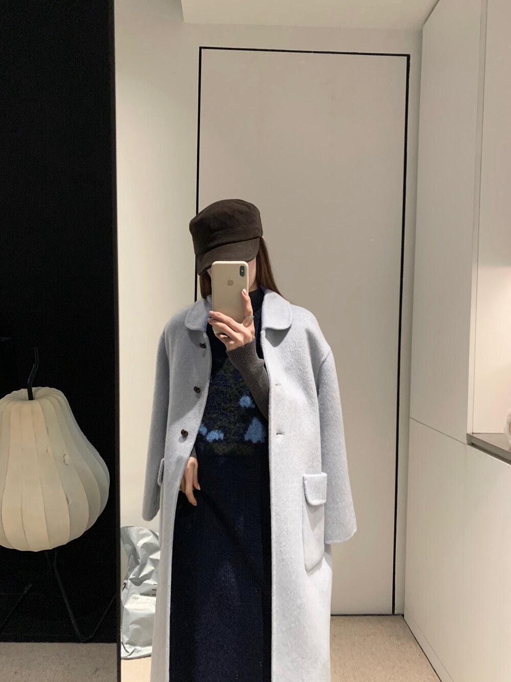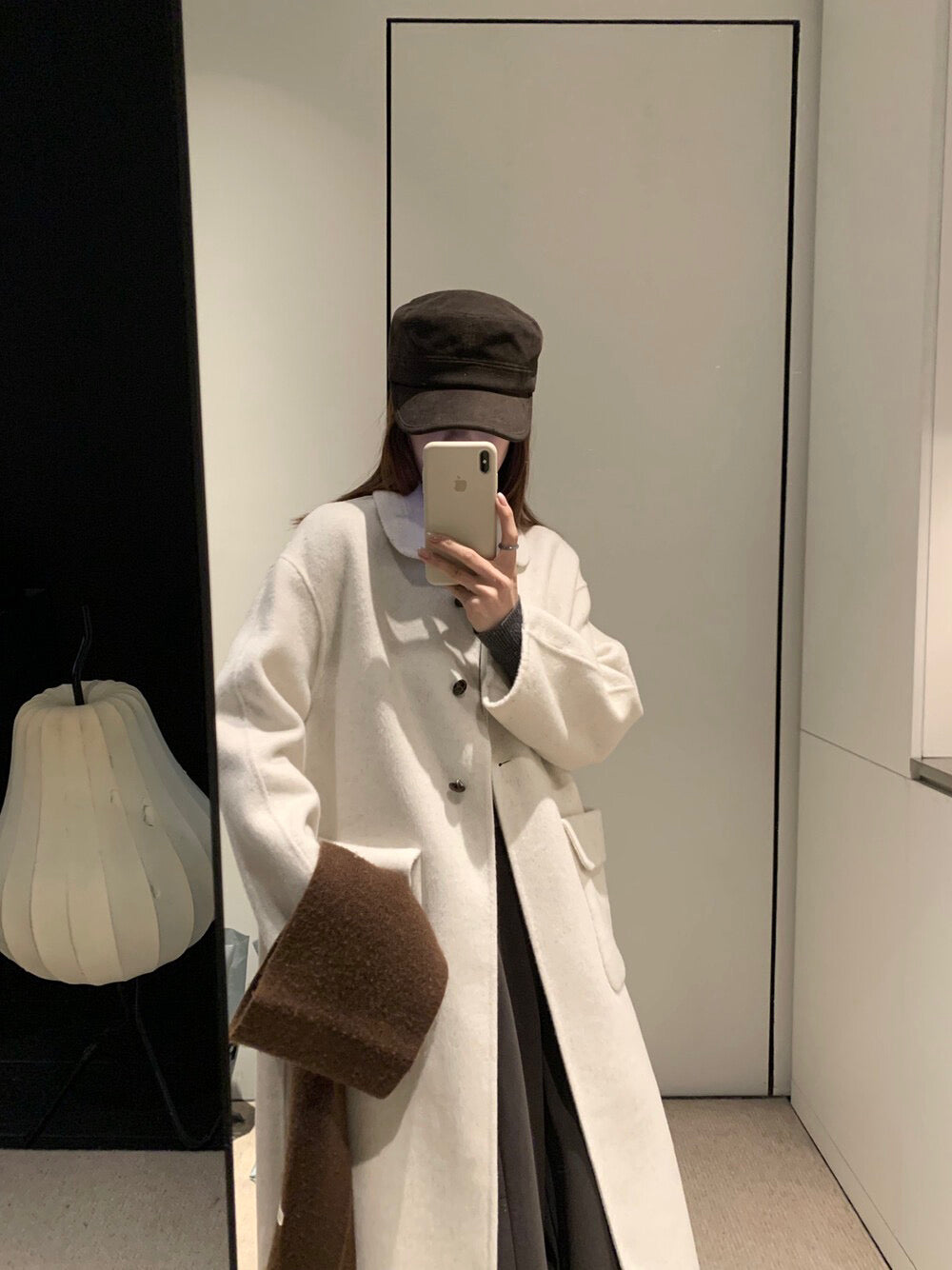 // 100%羊毛圓翻領三粒鈕扣長款手工外套