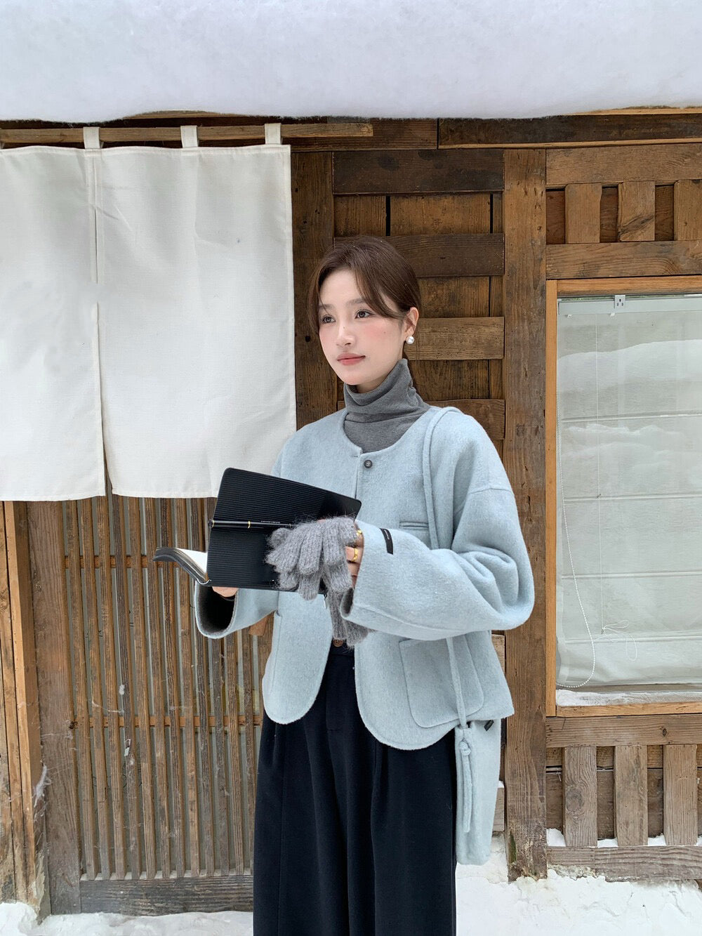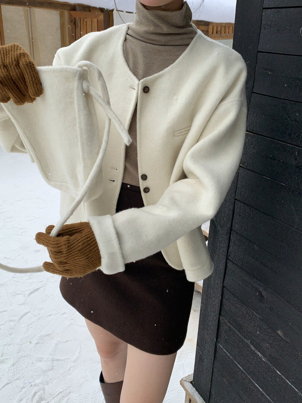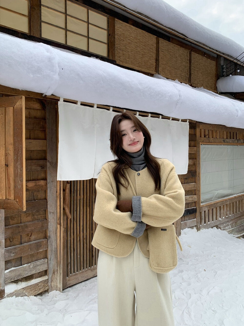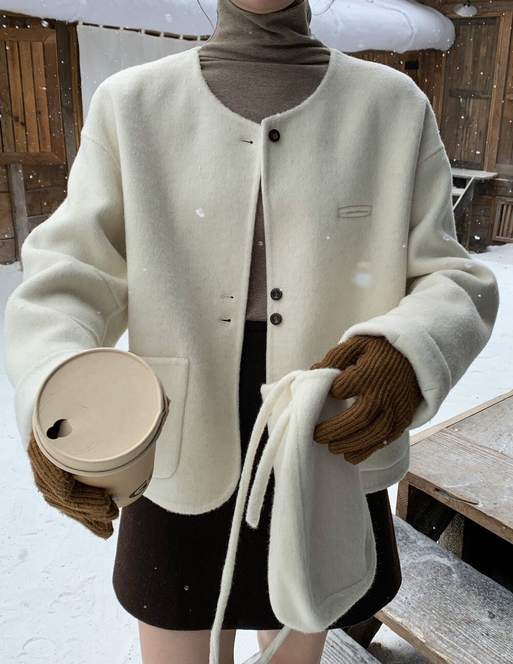 // 100%羊毛弧邊口袋特別鈕扣手工外套(連袋仔)
