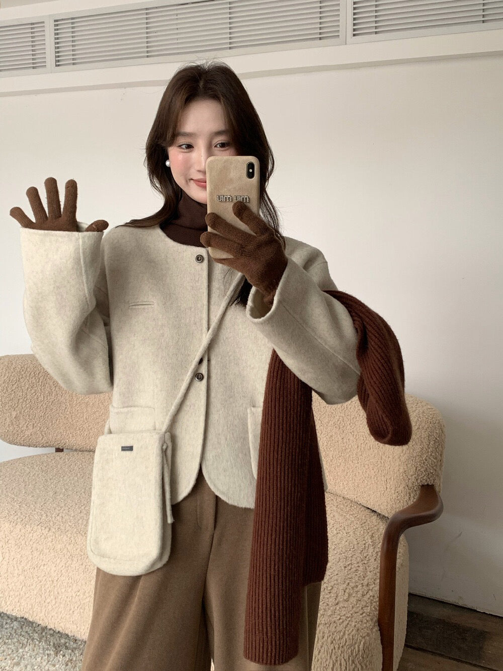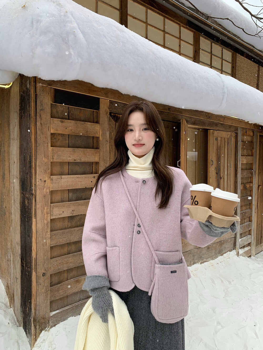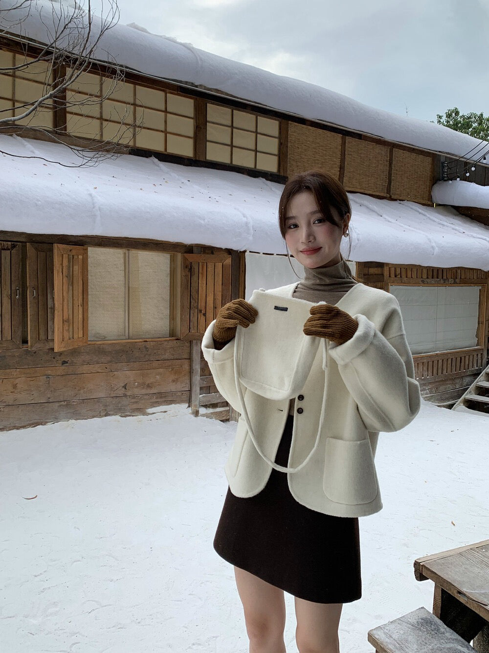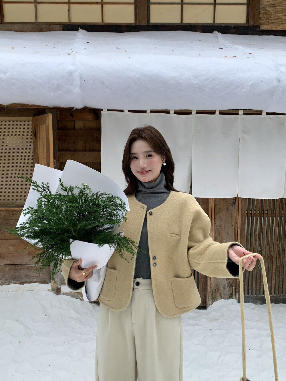 // 100%羊毛弧邊口袋特別鈕扣手工外套(連袋仔)