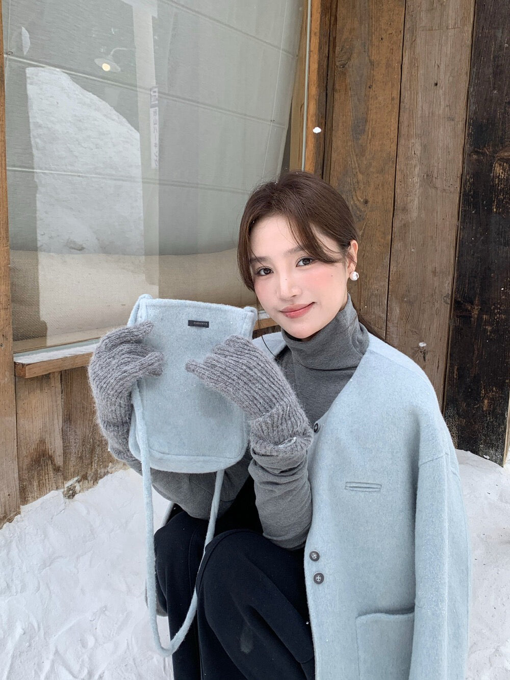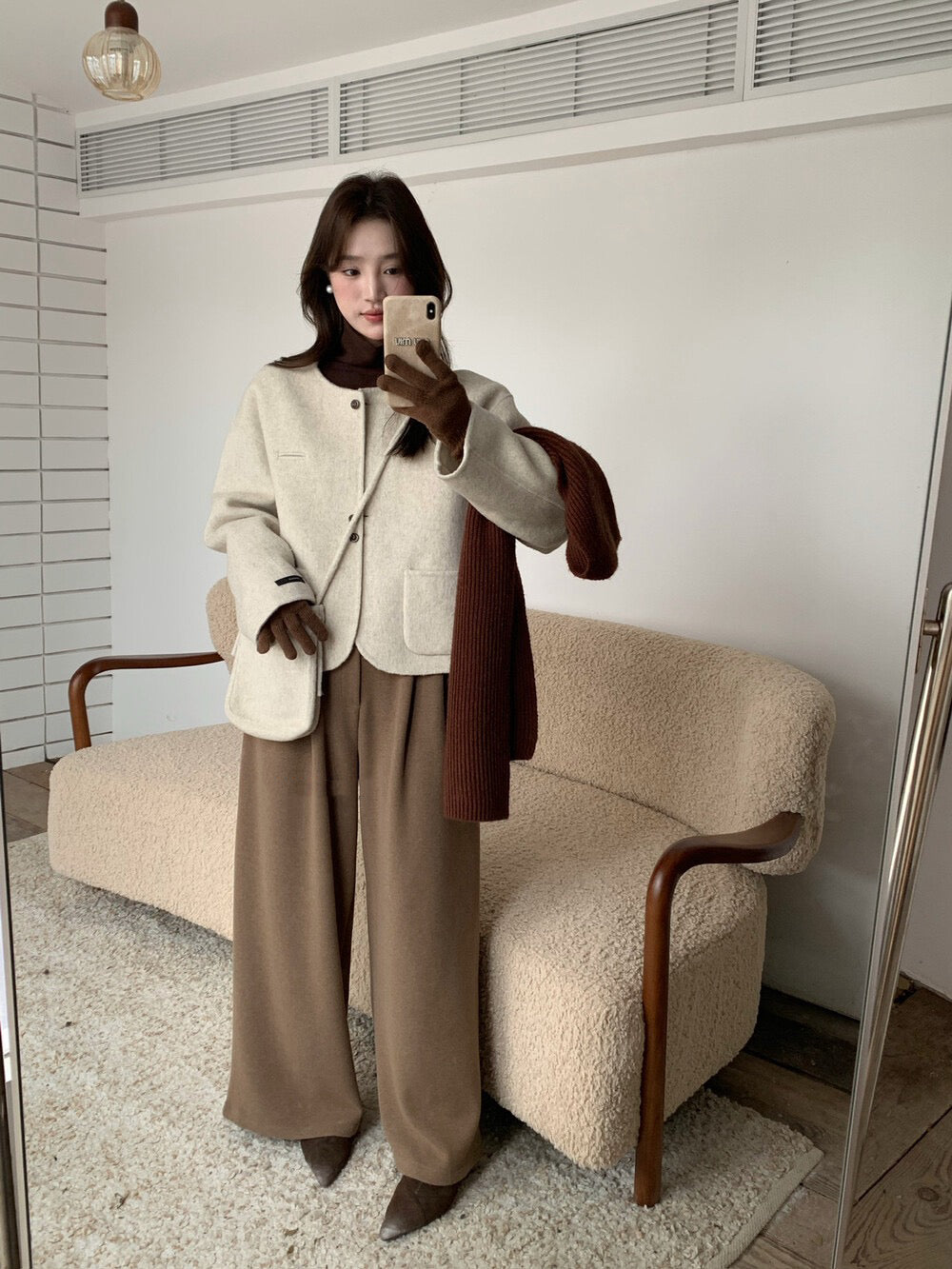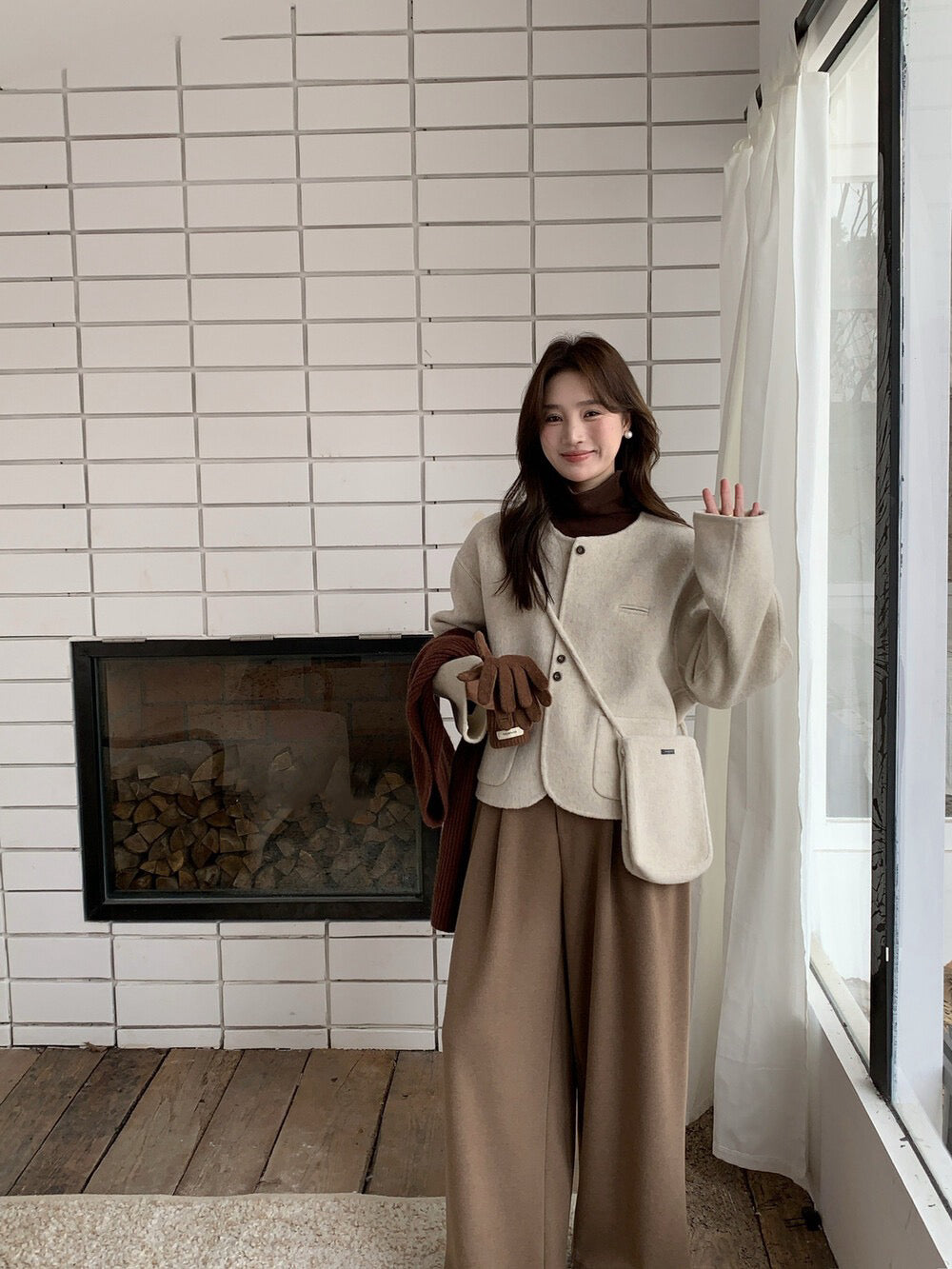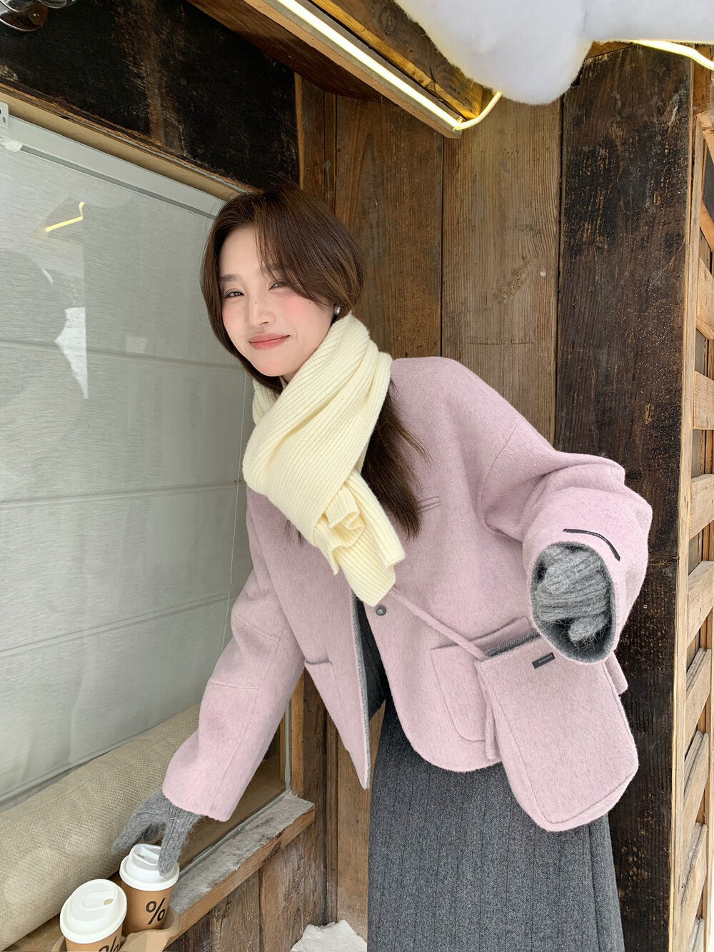 // 100%羊毛弧邊口袋特別鈕扣手工外套(連袋仔)