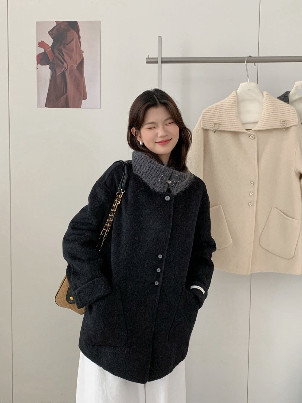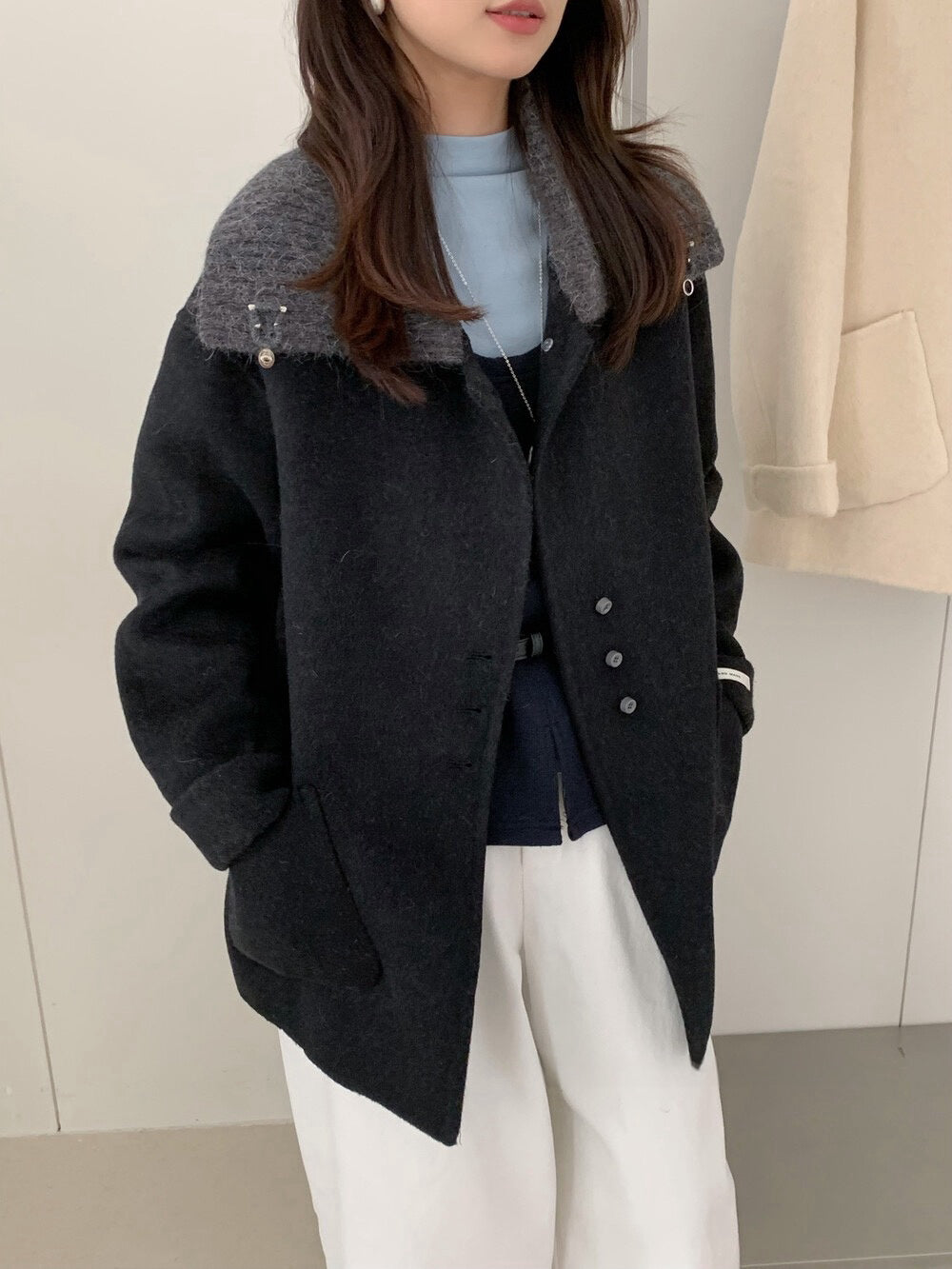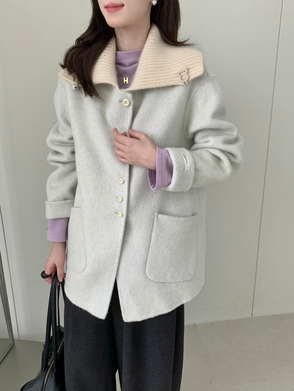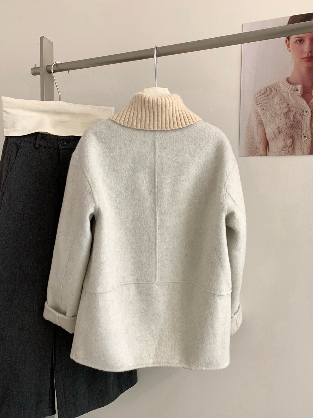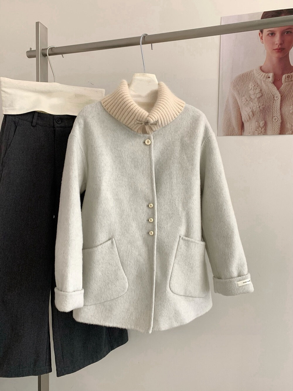 // 100%羊毛拼針織領雙面手工外套
