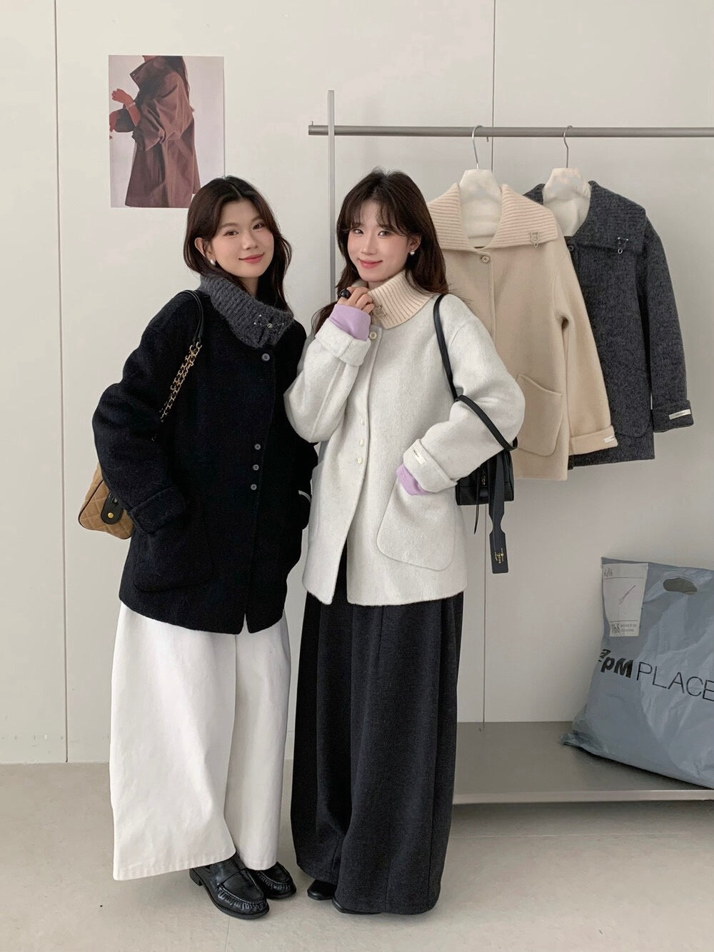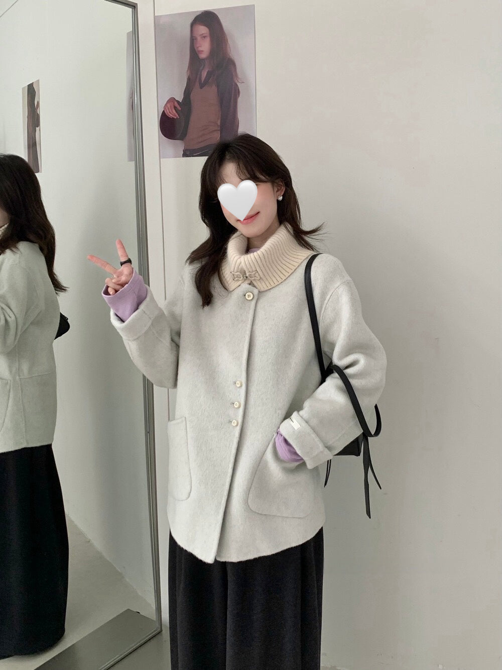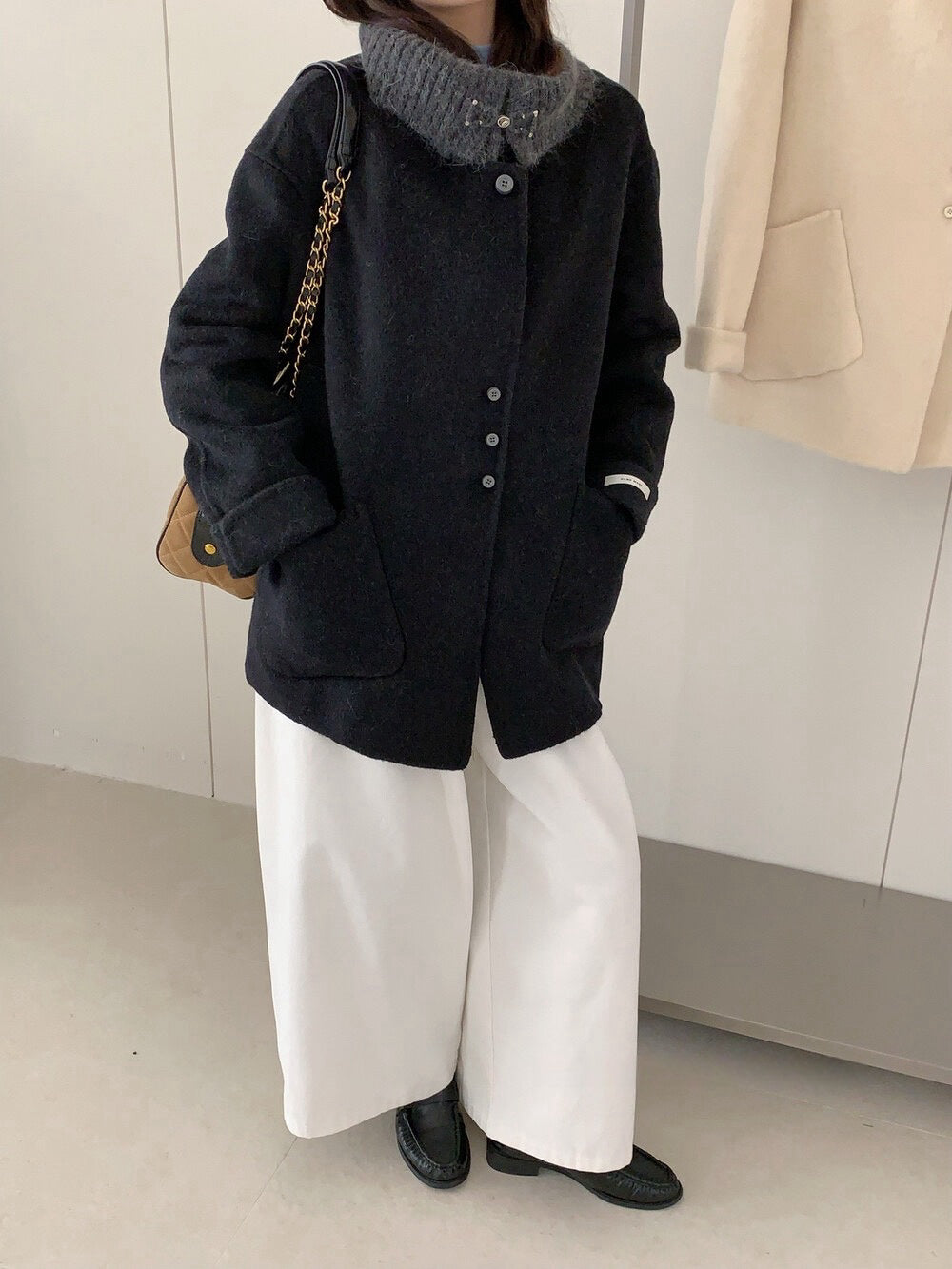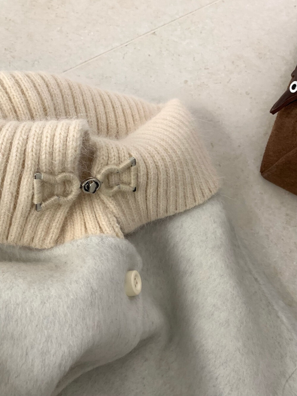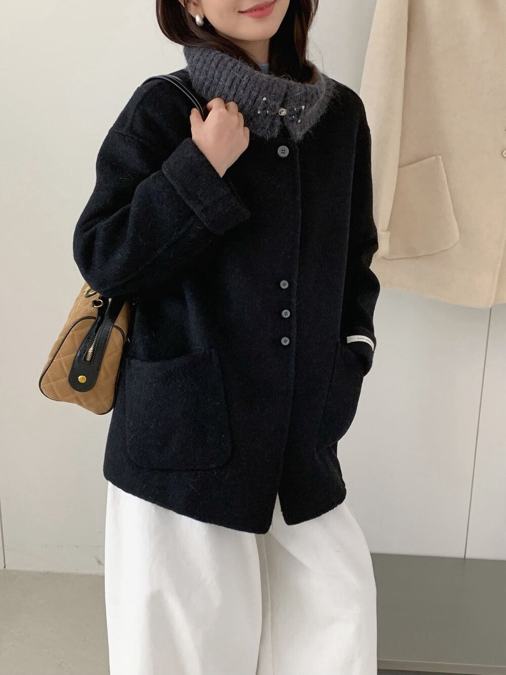 // 100%羊毛拼針織領雙面手工外套