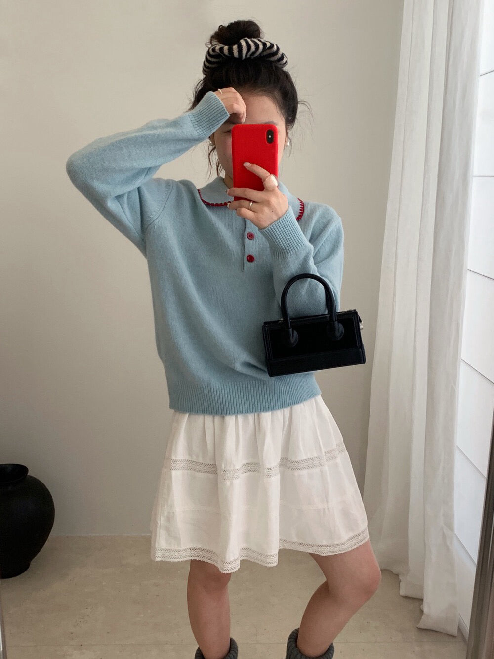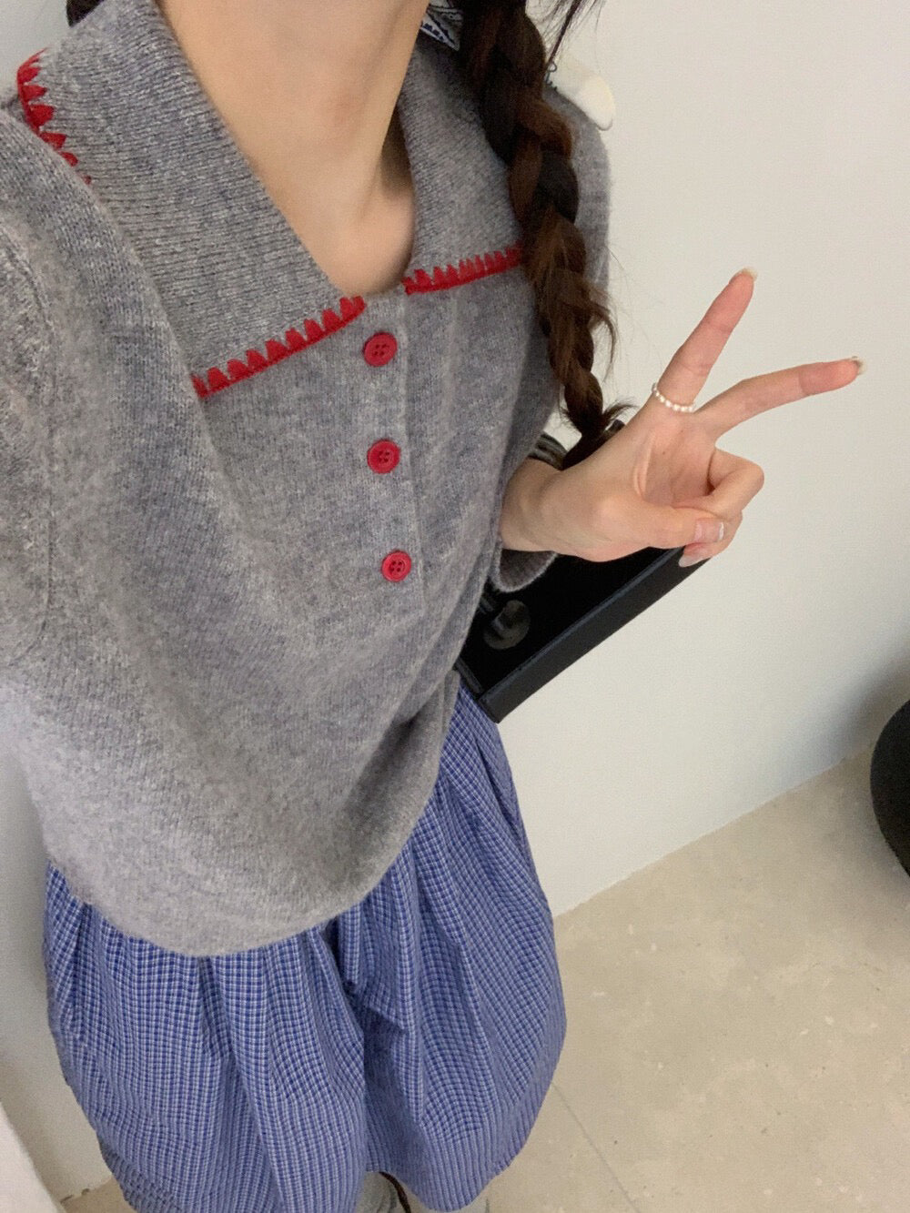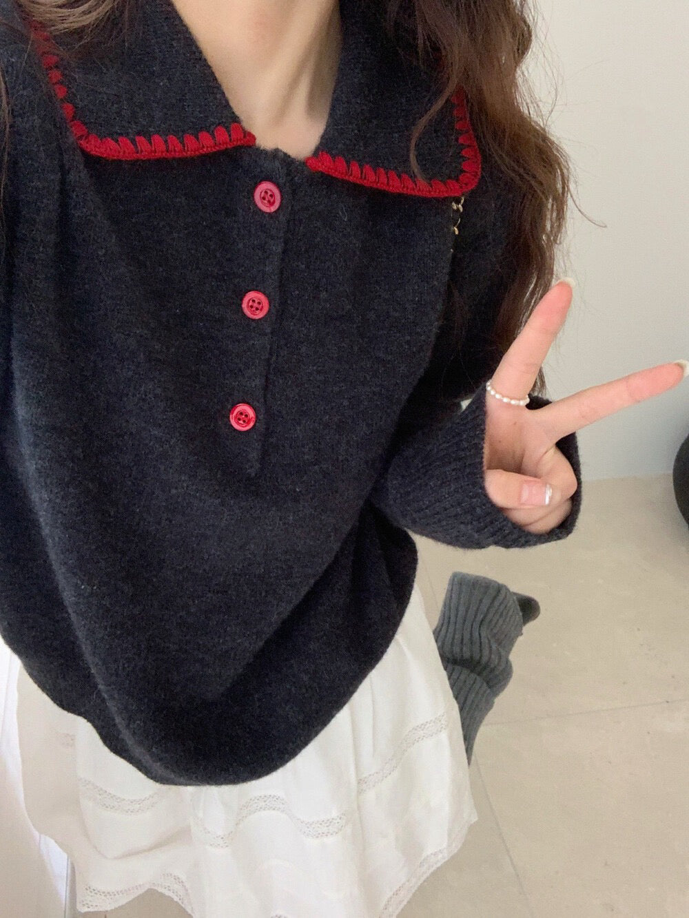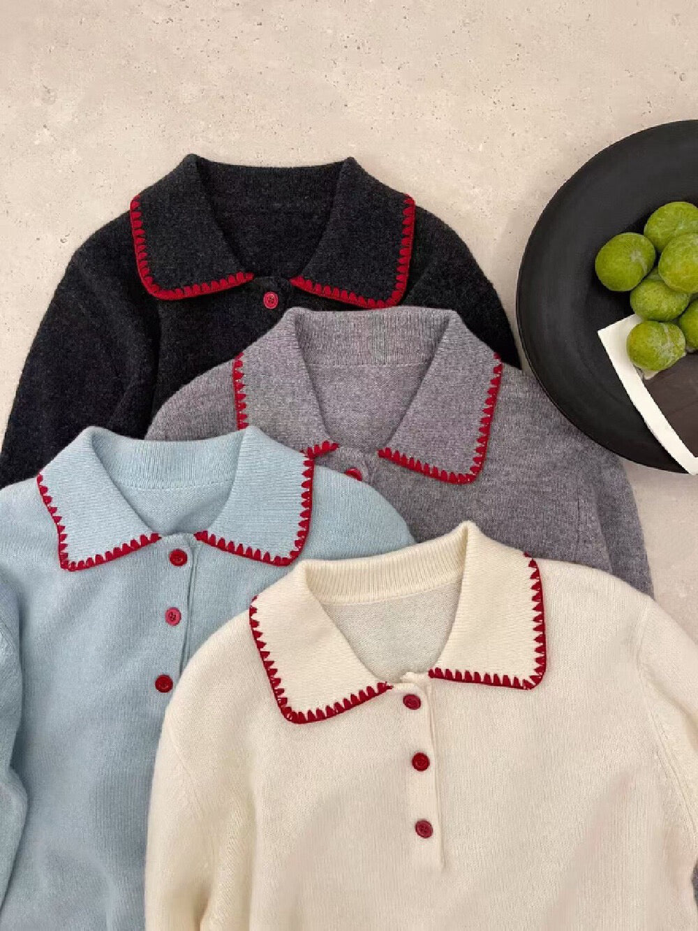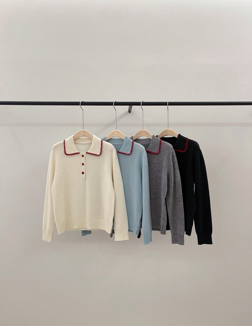 // 100%羊毛撞色包邊縫線鈕扣翻領NT
