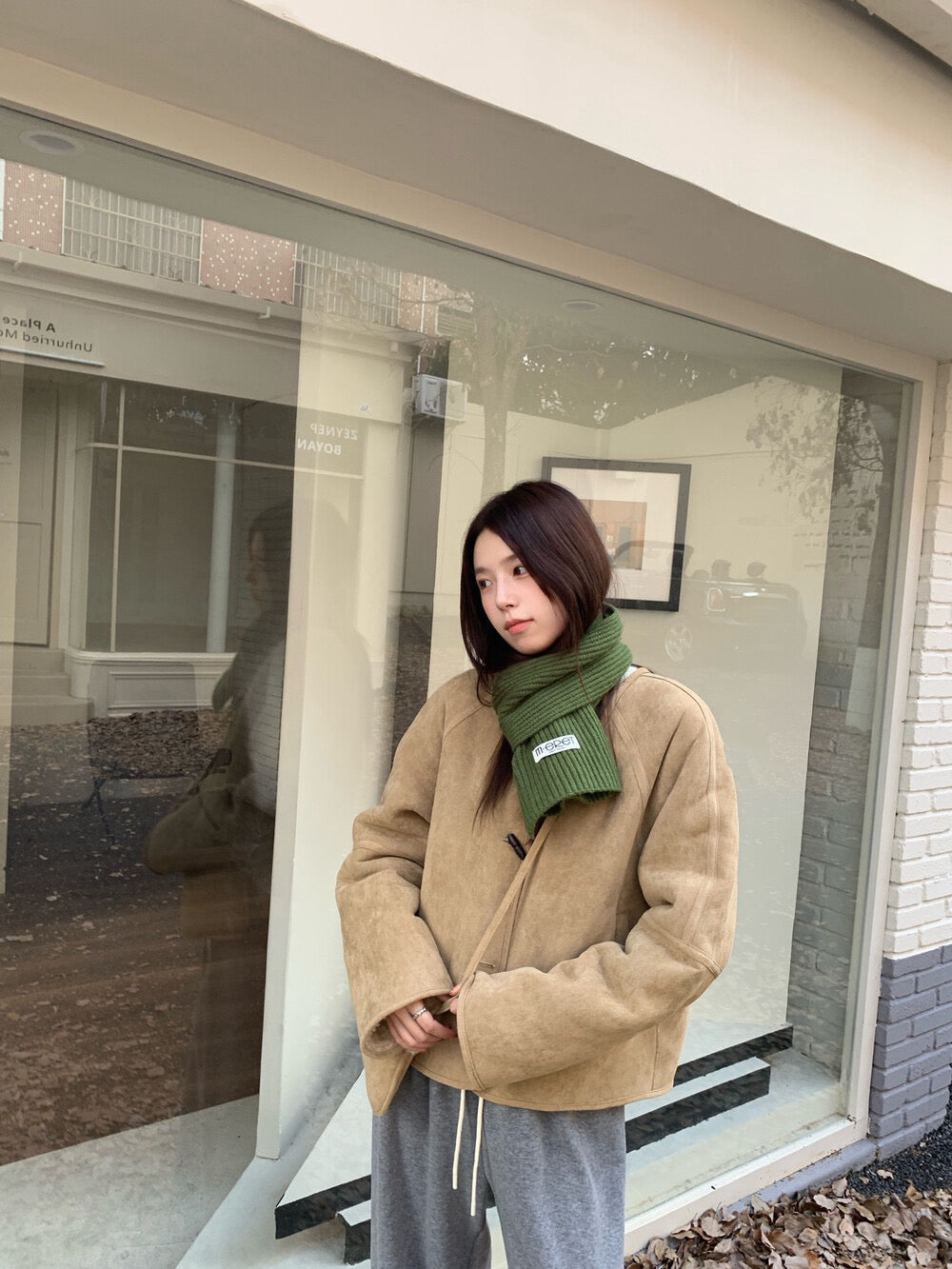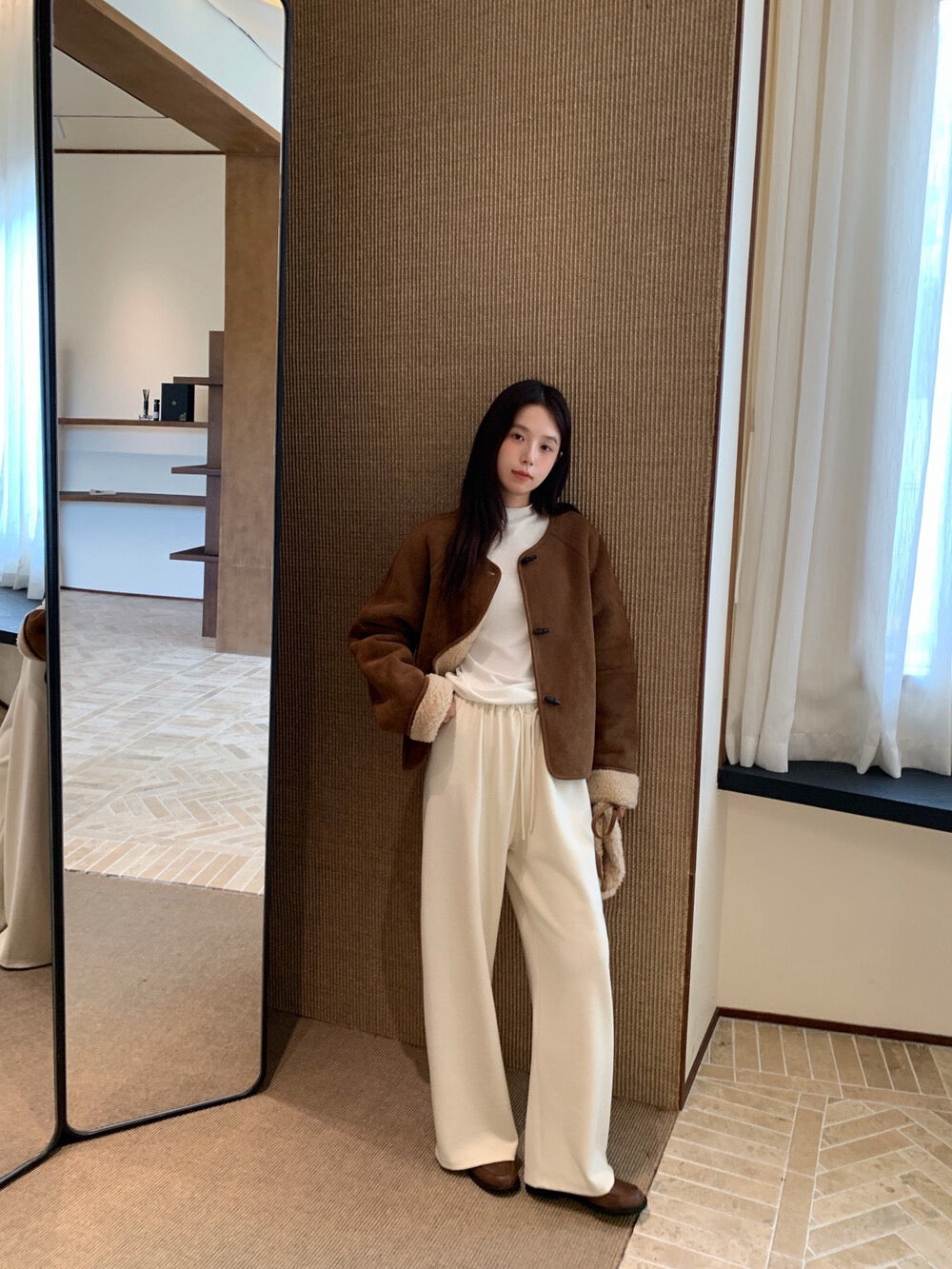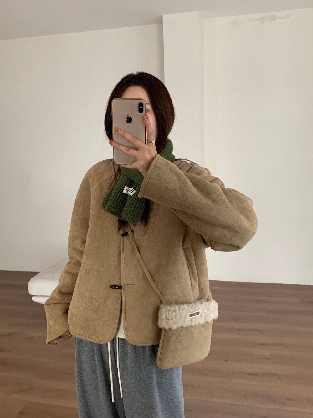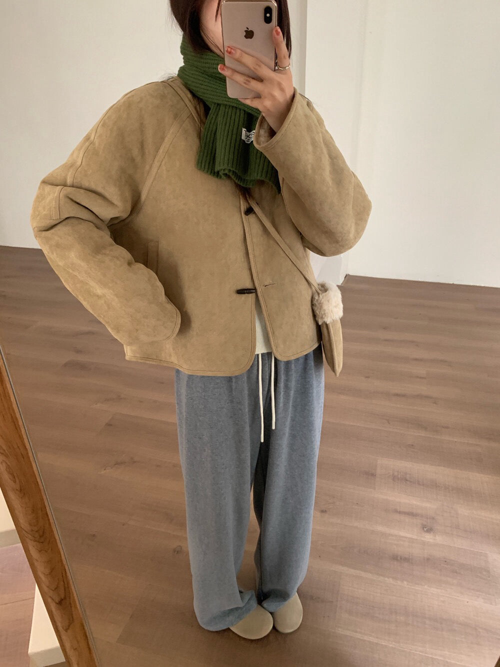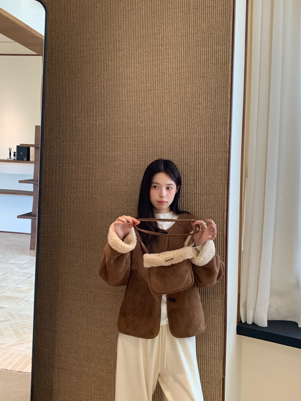 // 100%羊毛皮毛一體牛角鈕外套(連袋仔)