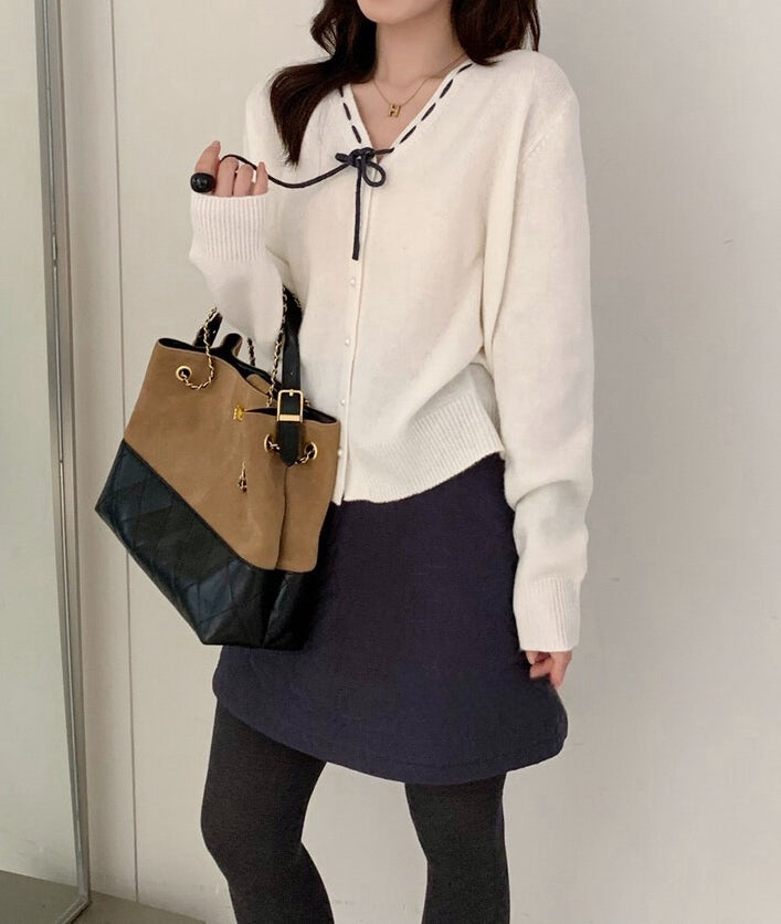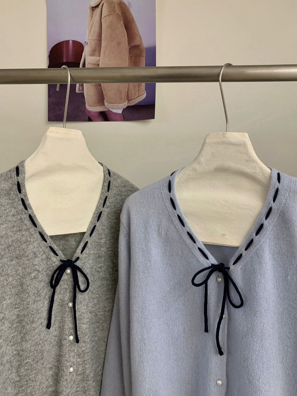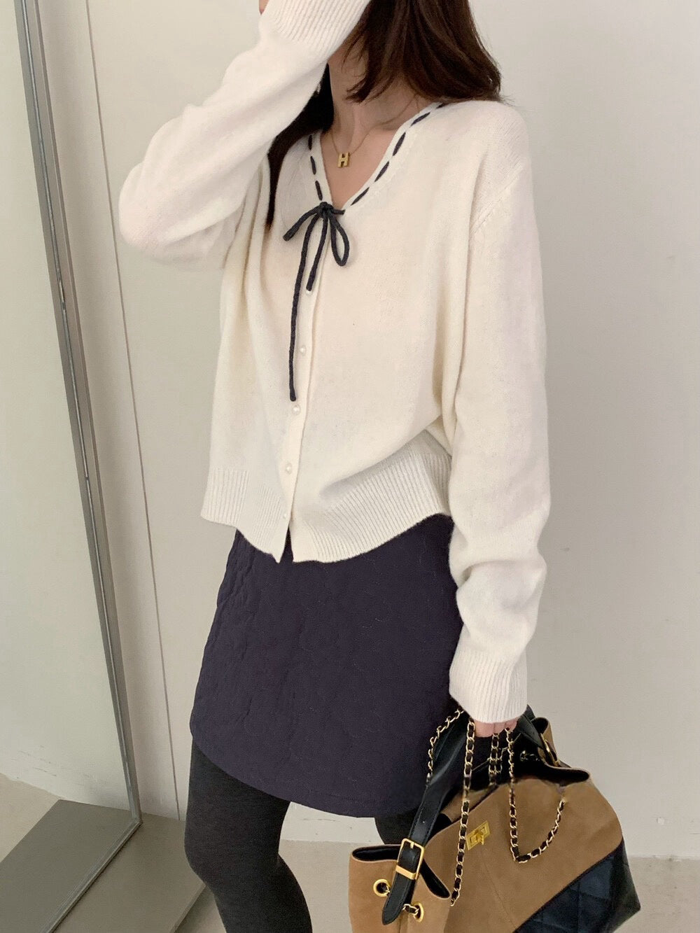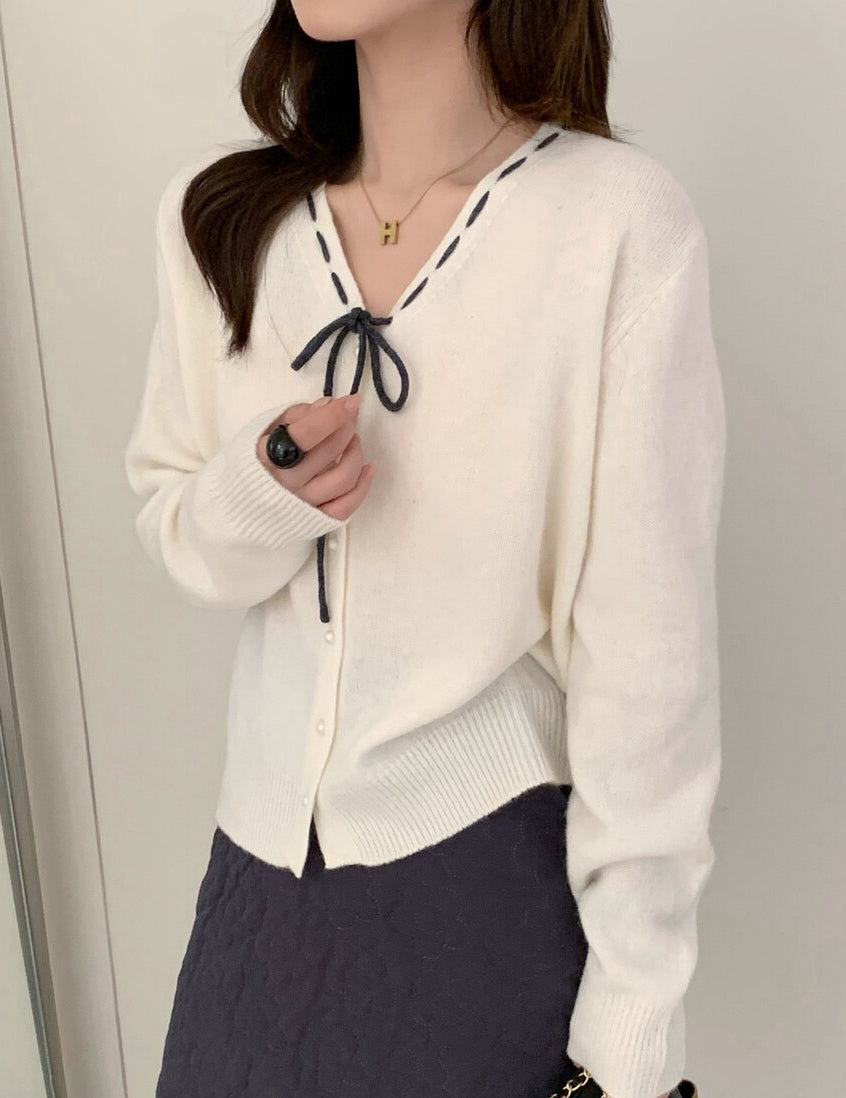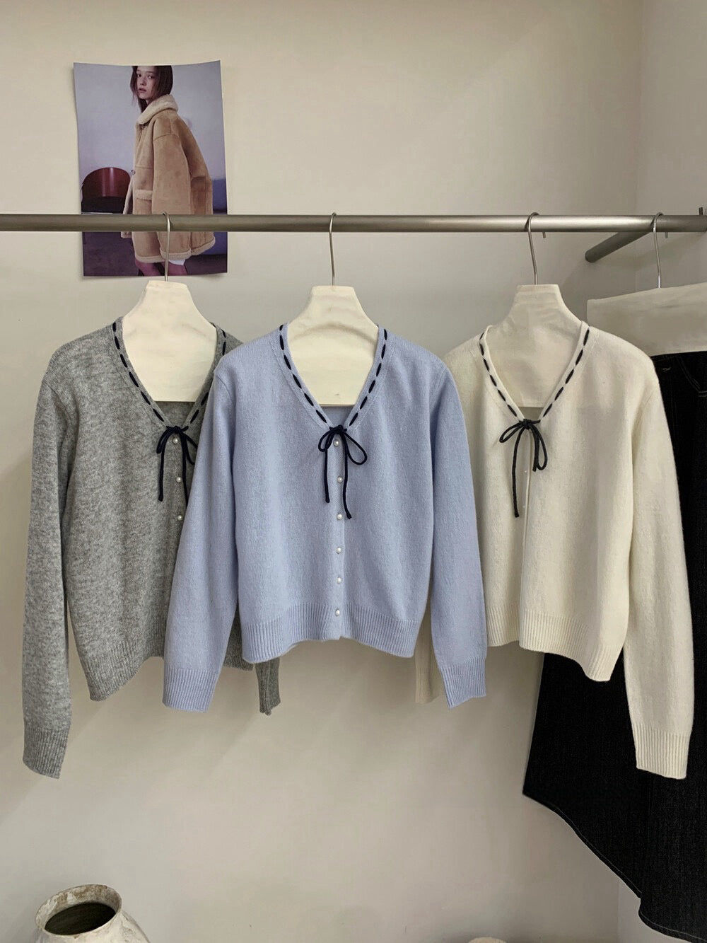 // 100%羊毛縫線蝴蝶結領口開胸NT