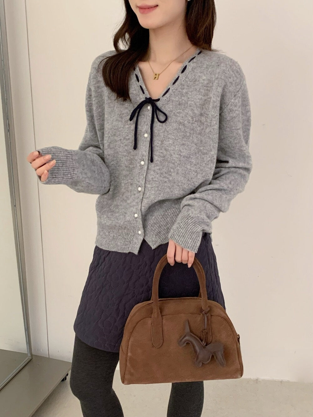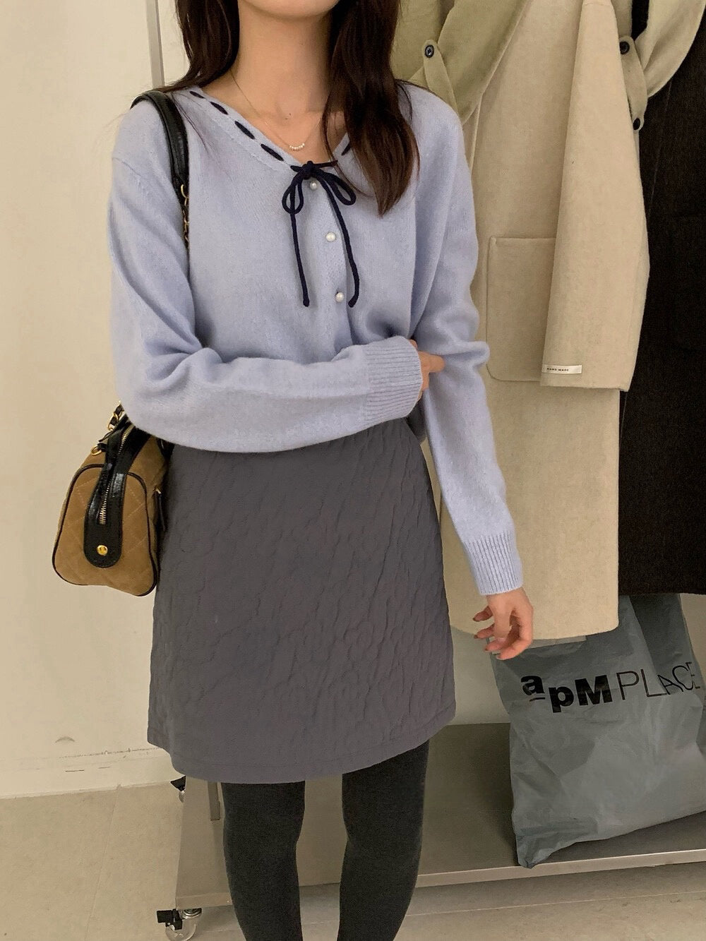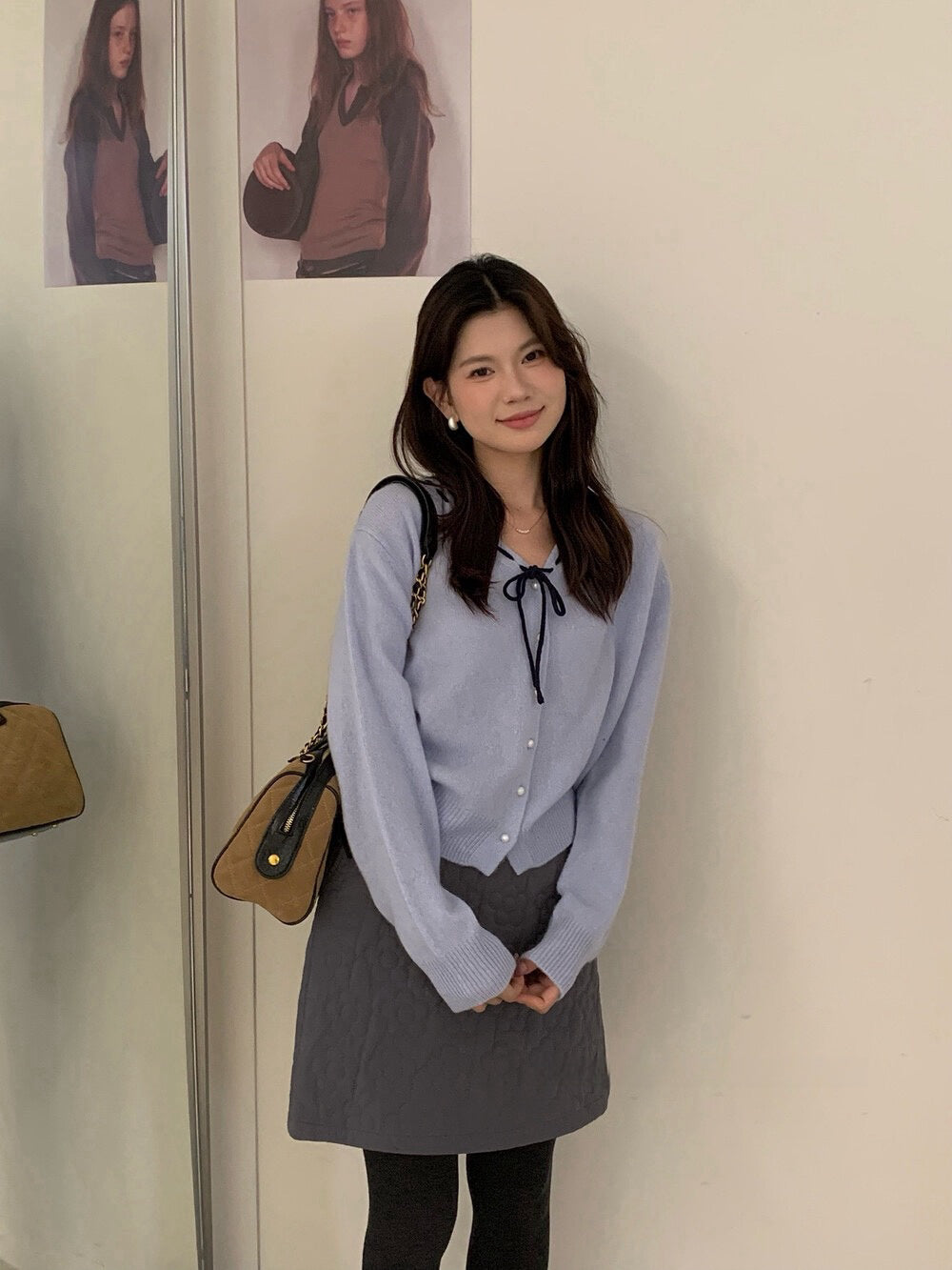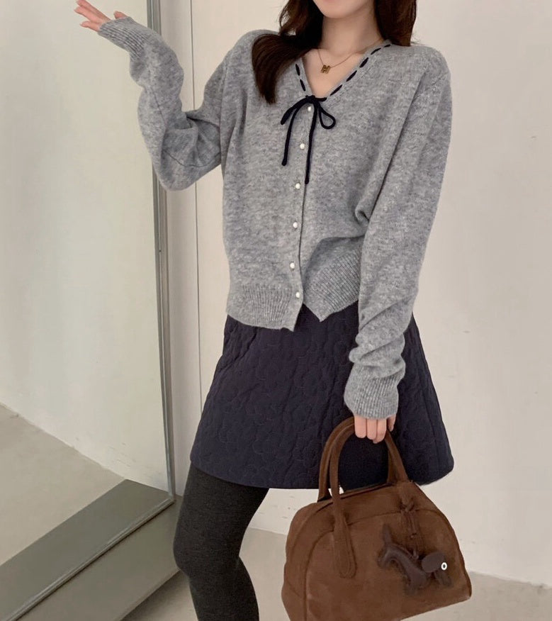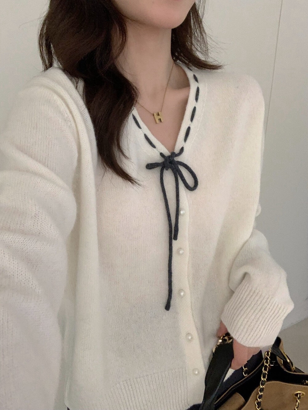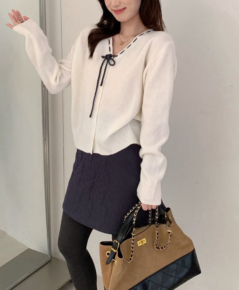 // 100%羊毛縫線蝴蝶結領口開胸NT