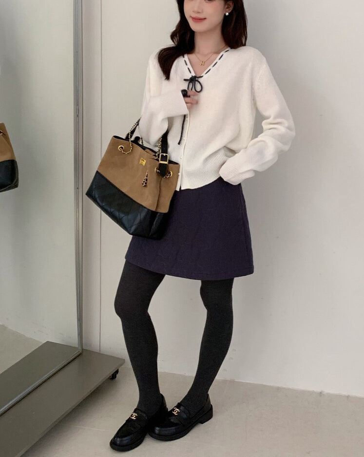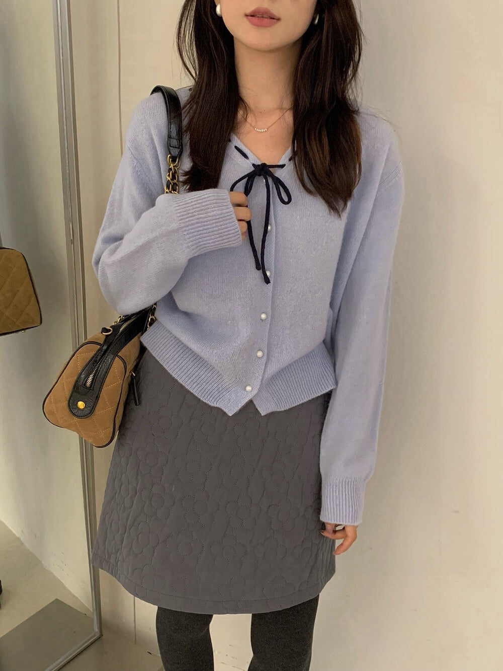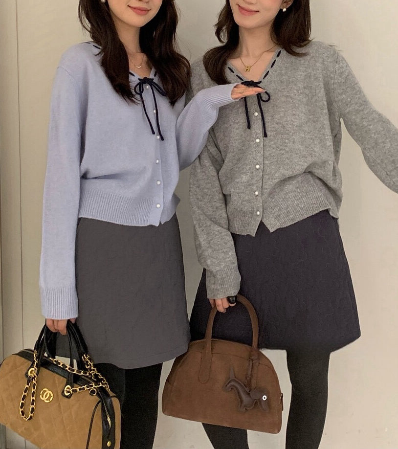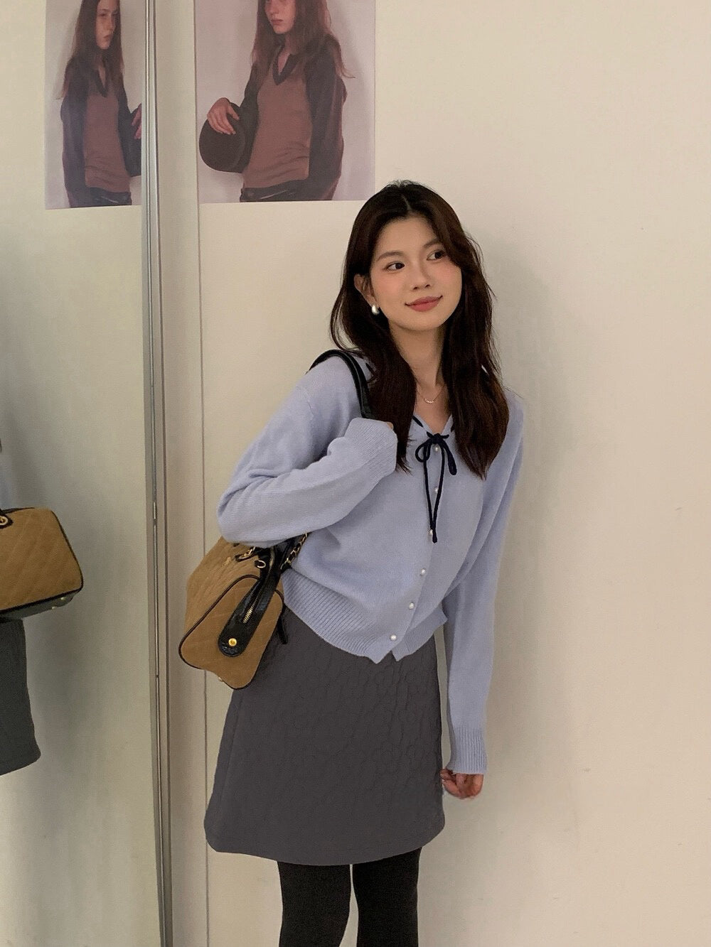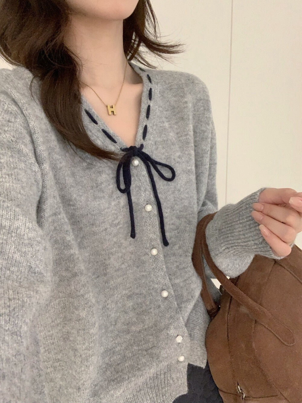 // 100%羊毛縫線蝴蝶結領口開胸NT