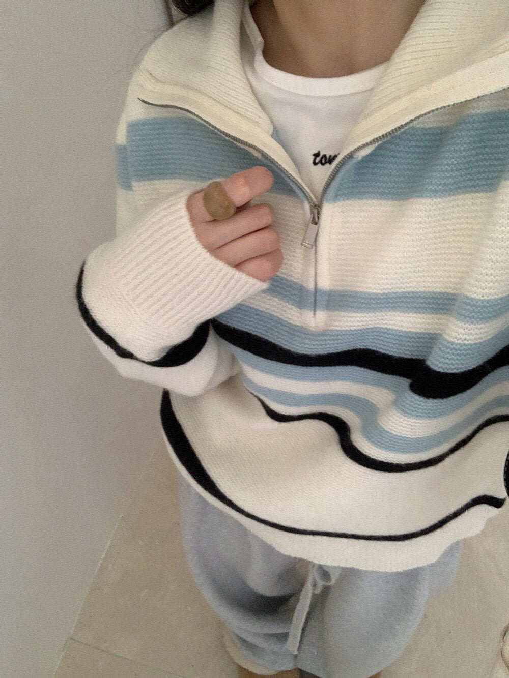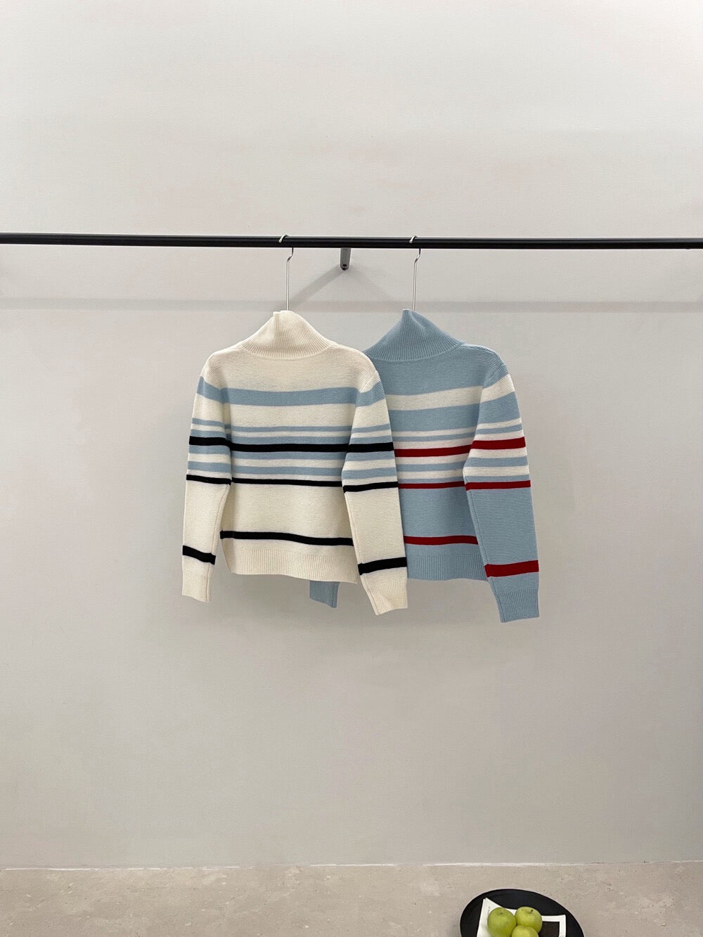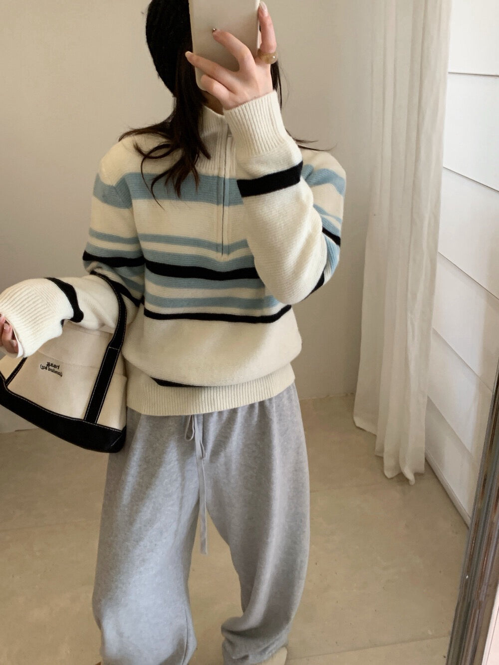 // 100%wool復古感拼間半拉鍊立領毛衣