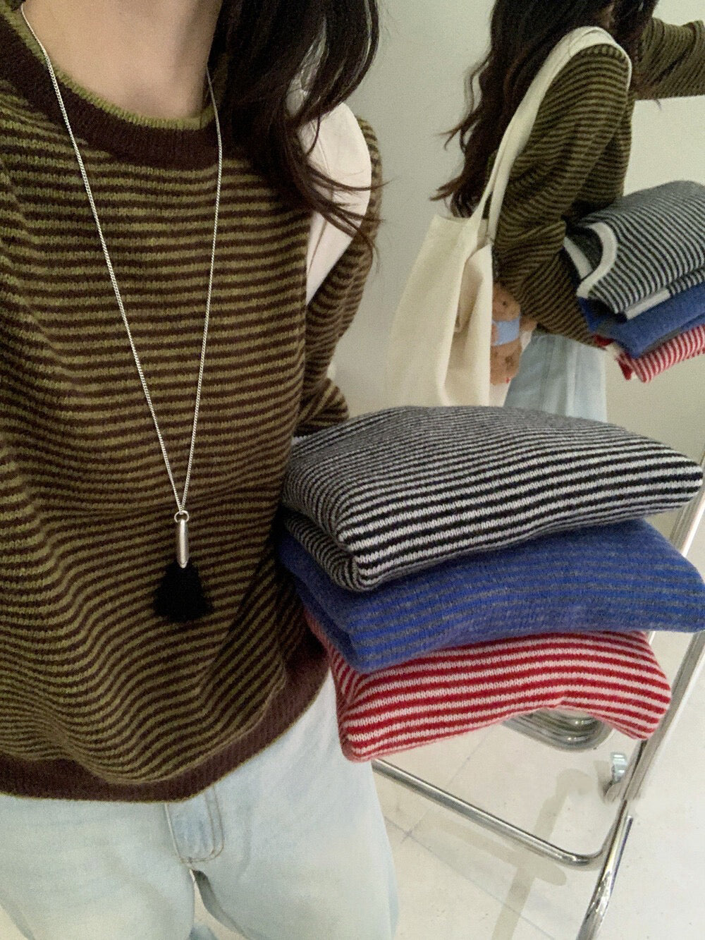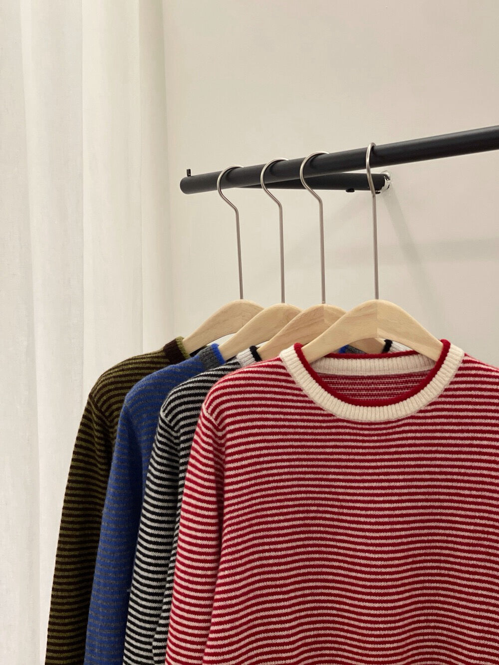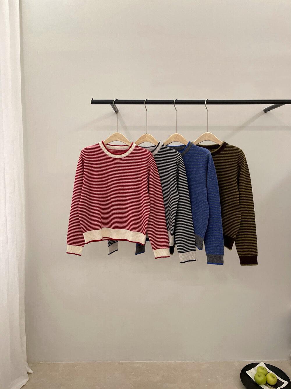 // 100%wool細間條包邊毛衣