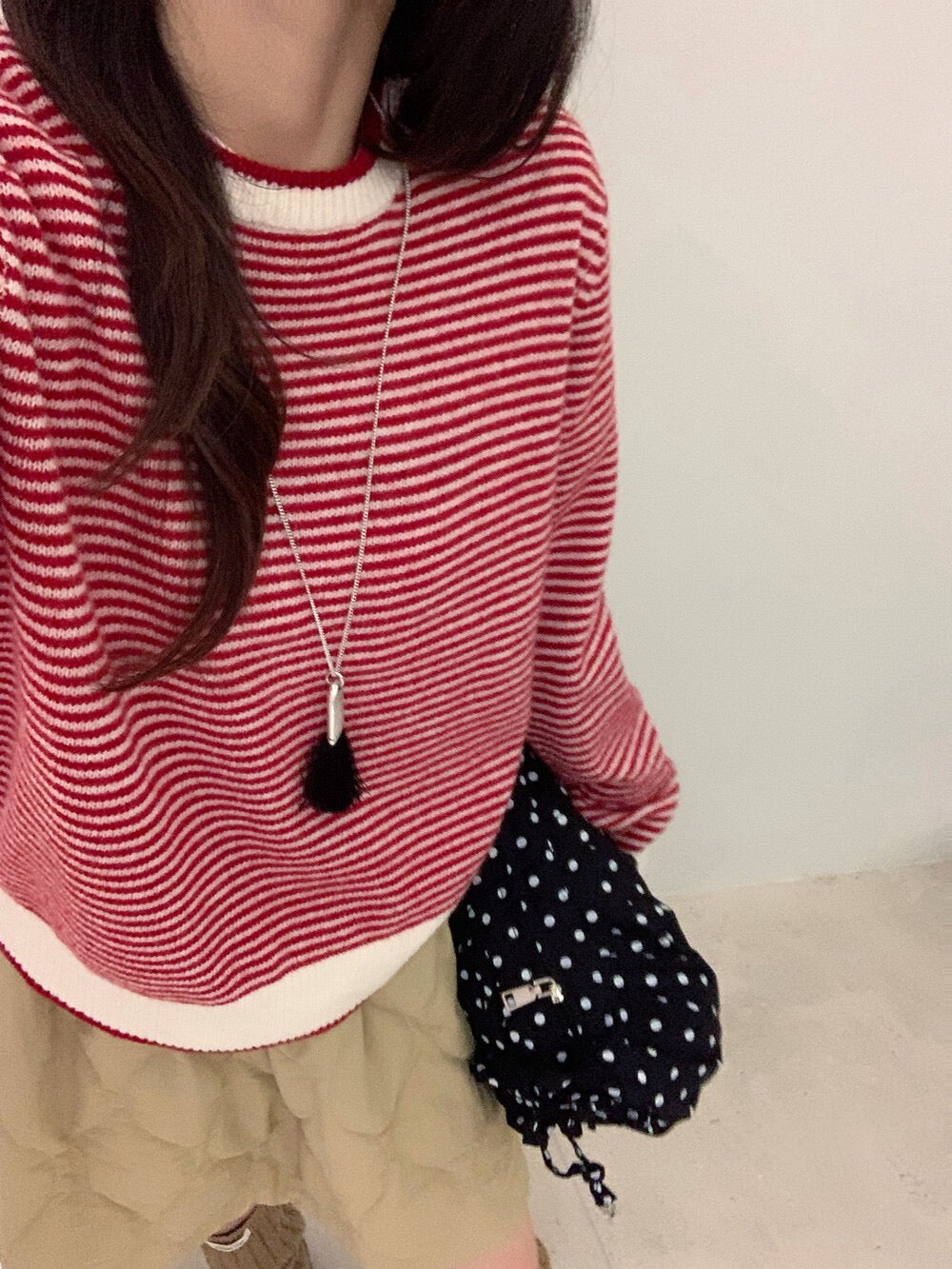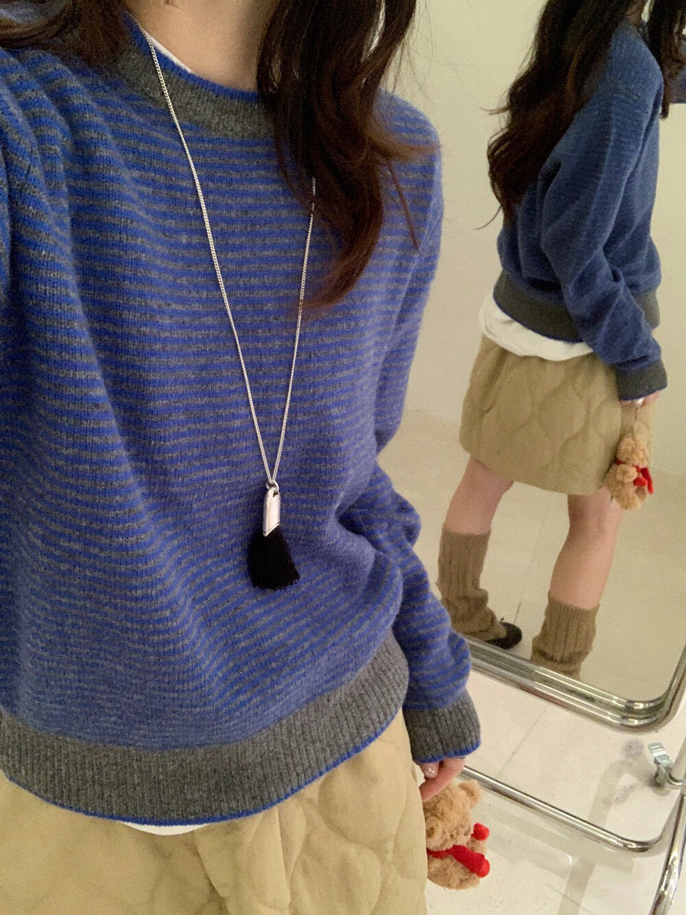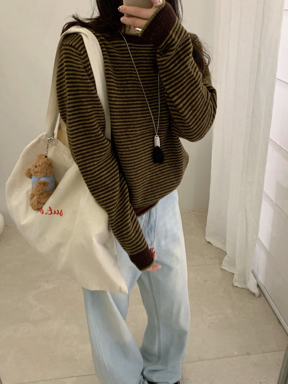 // 100%wool細間條包邊毛衣