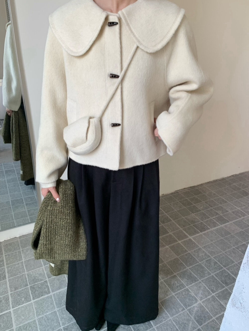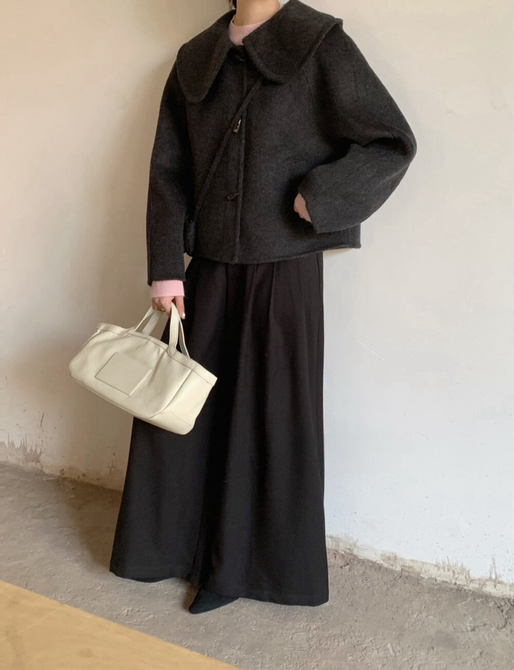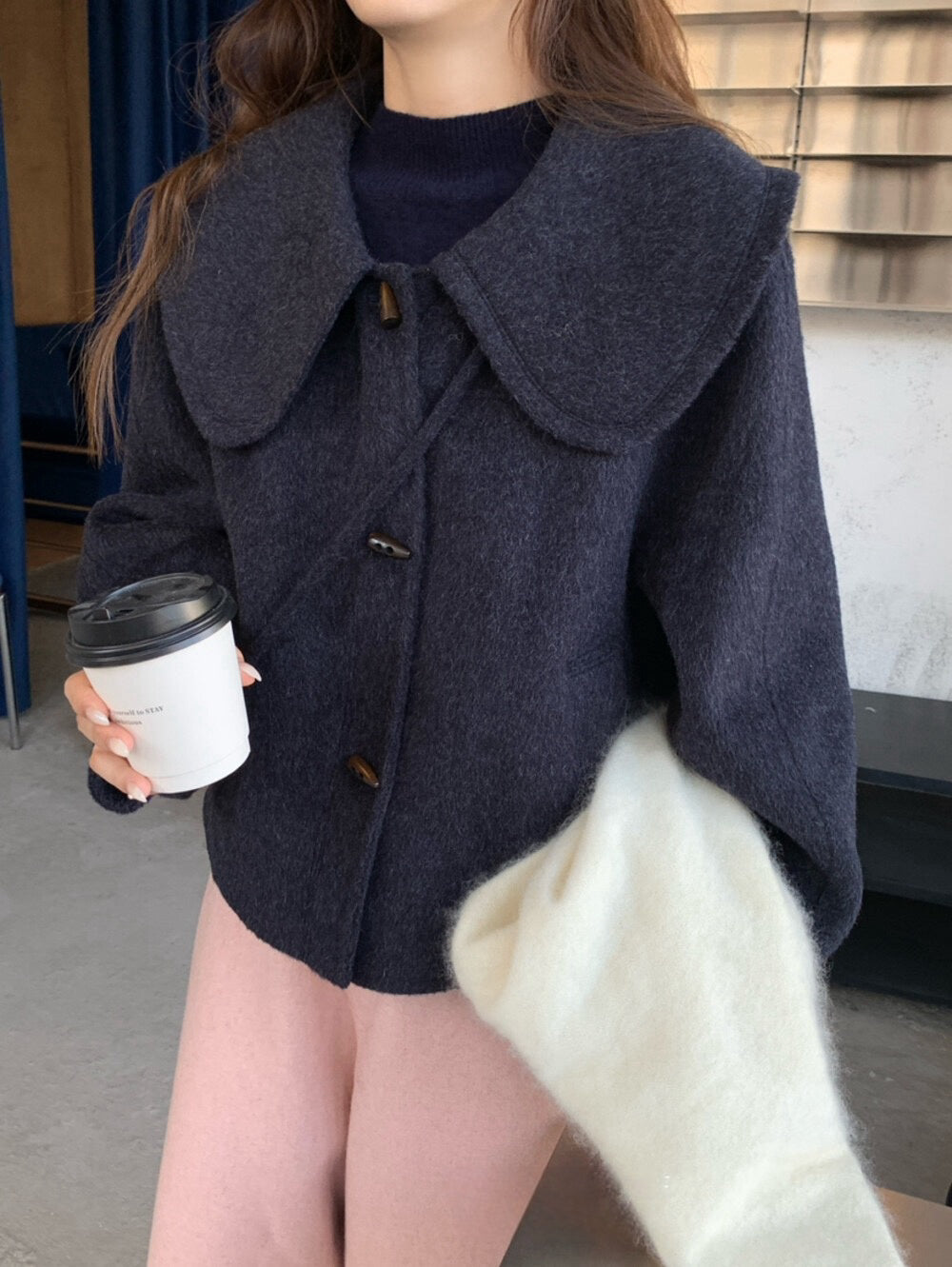 // 100%wool超韓大娃娃領手工外套(連袋仔)