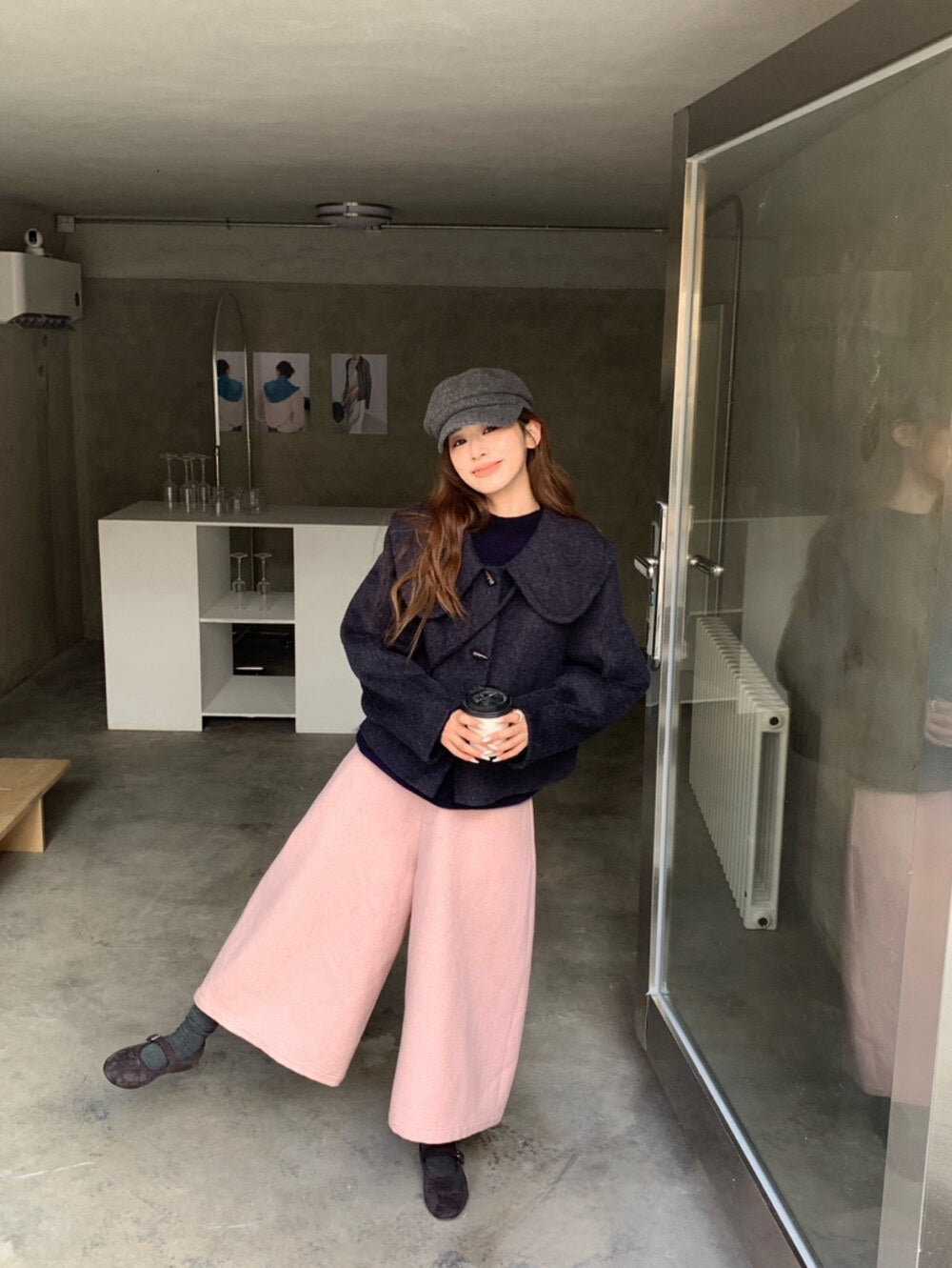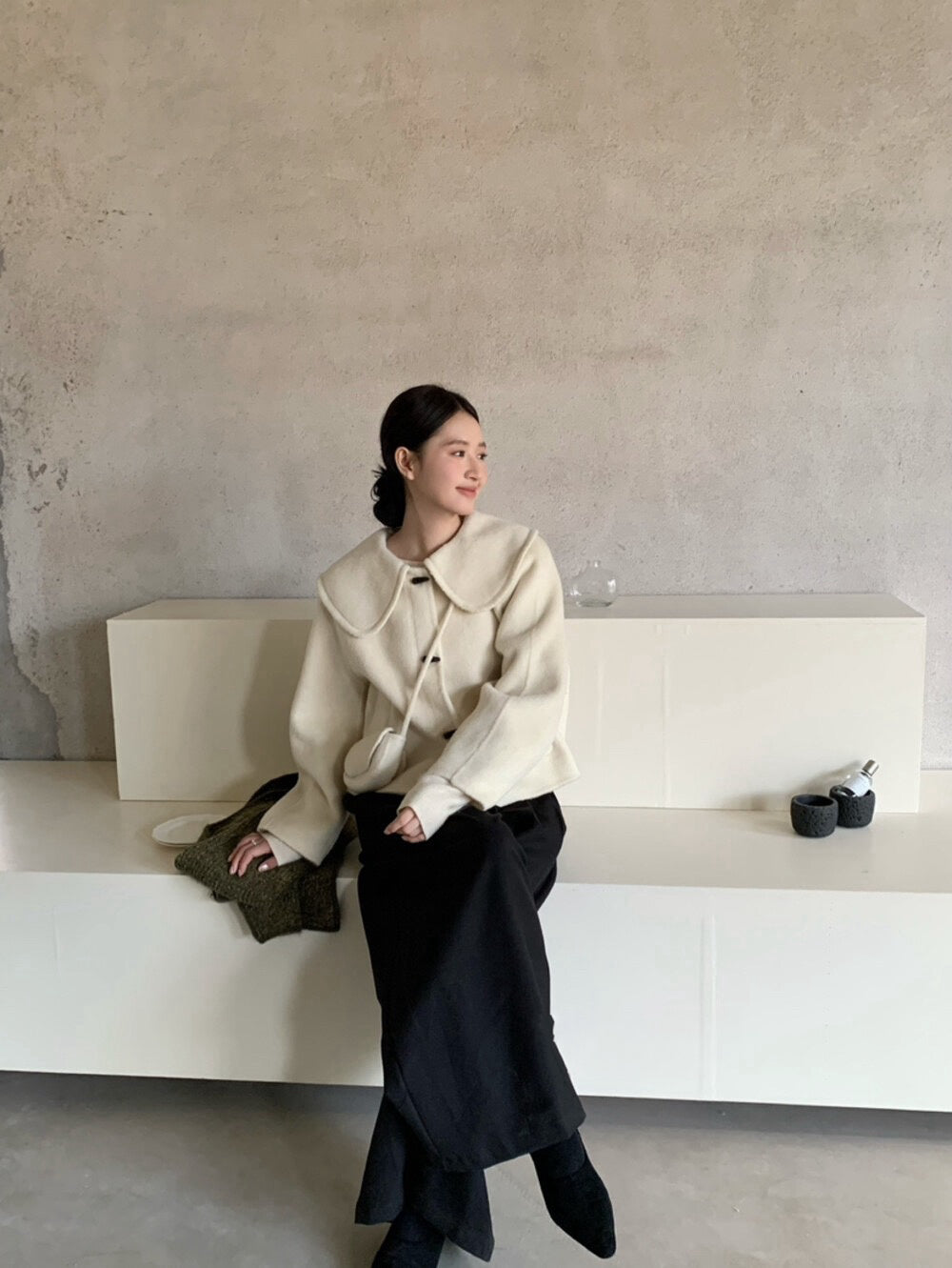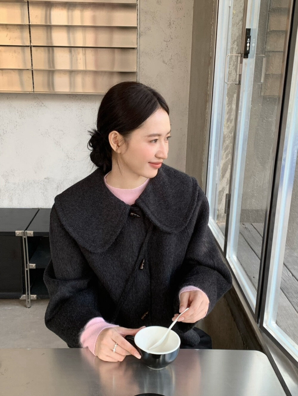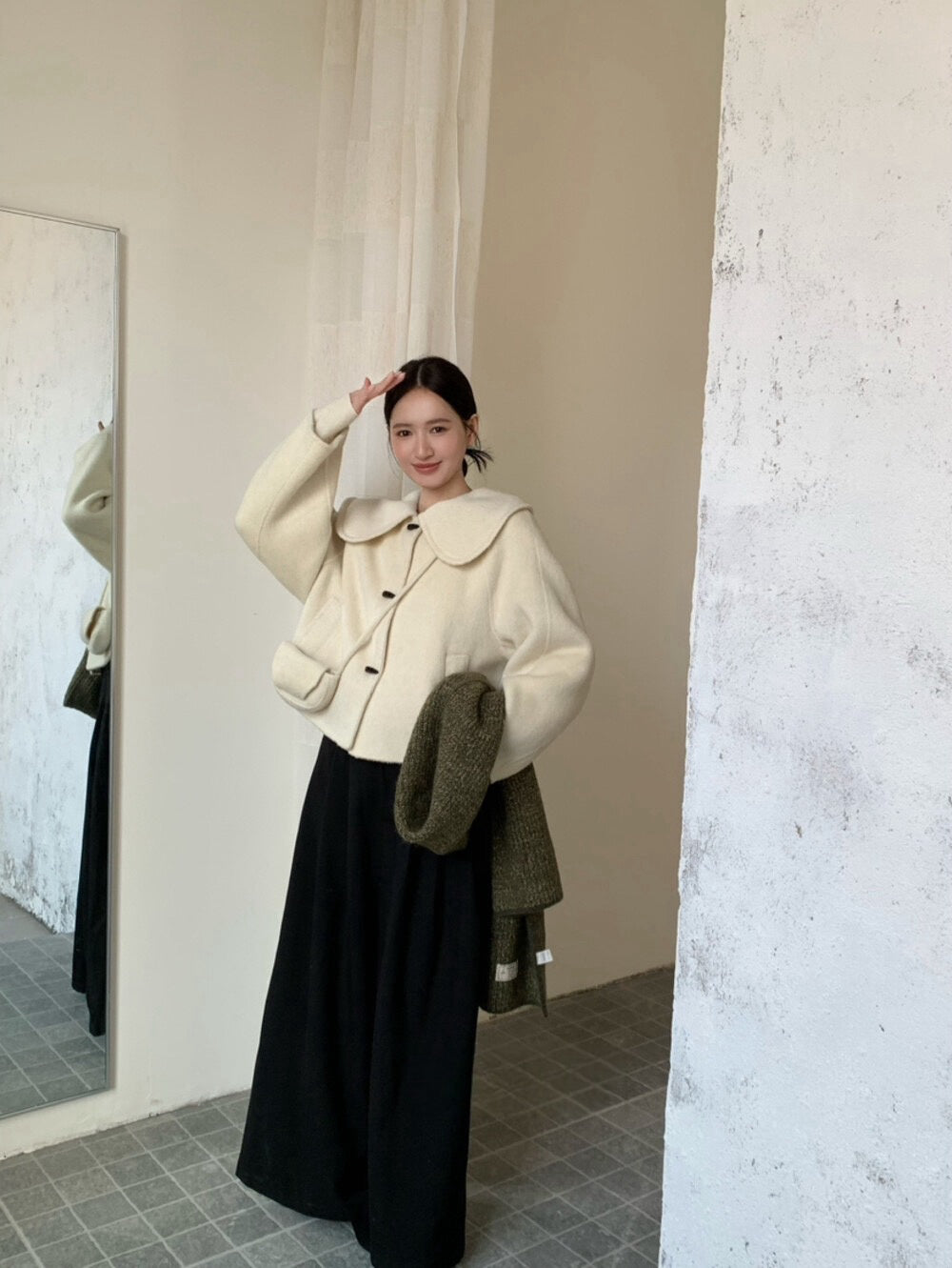 // 100%wool超韓大娃娃領手工外套(連袋仔)