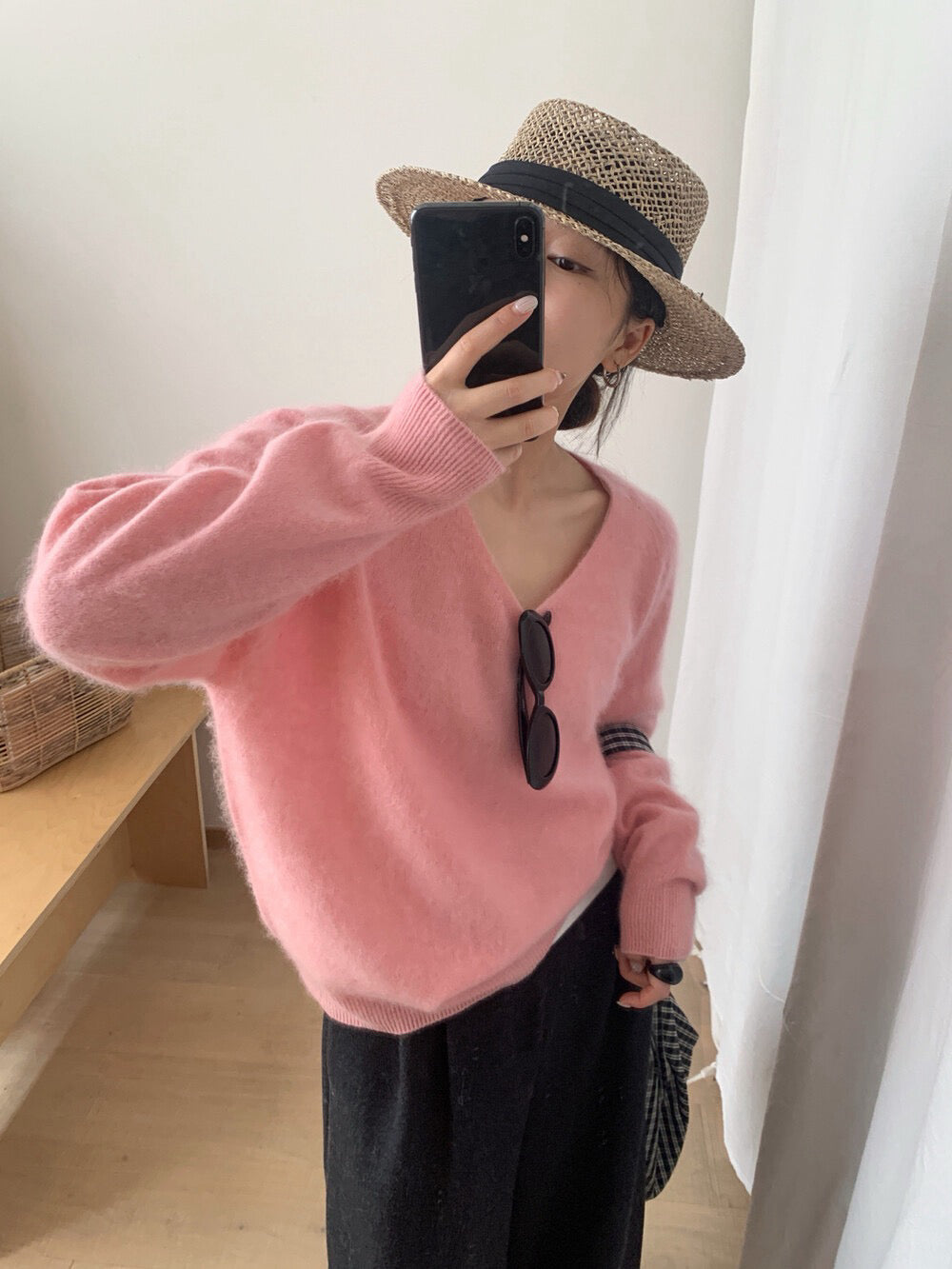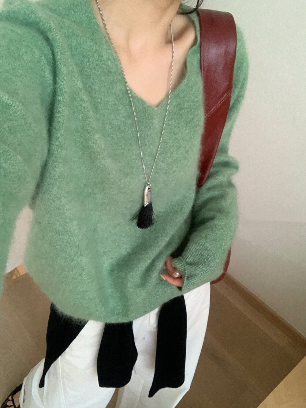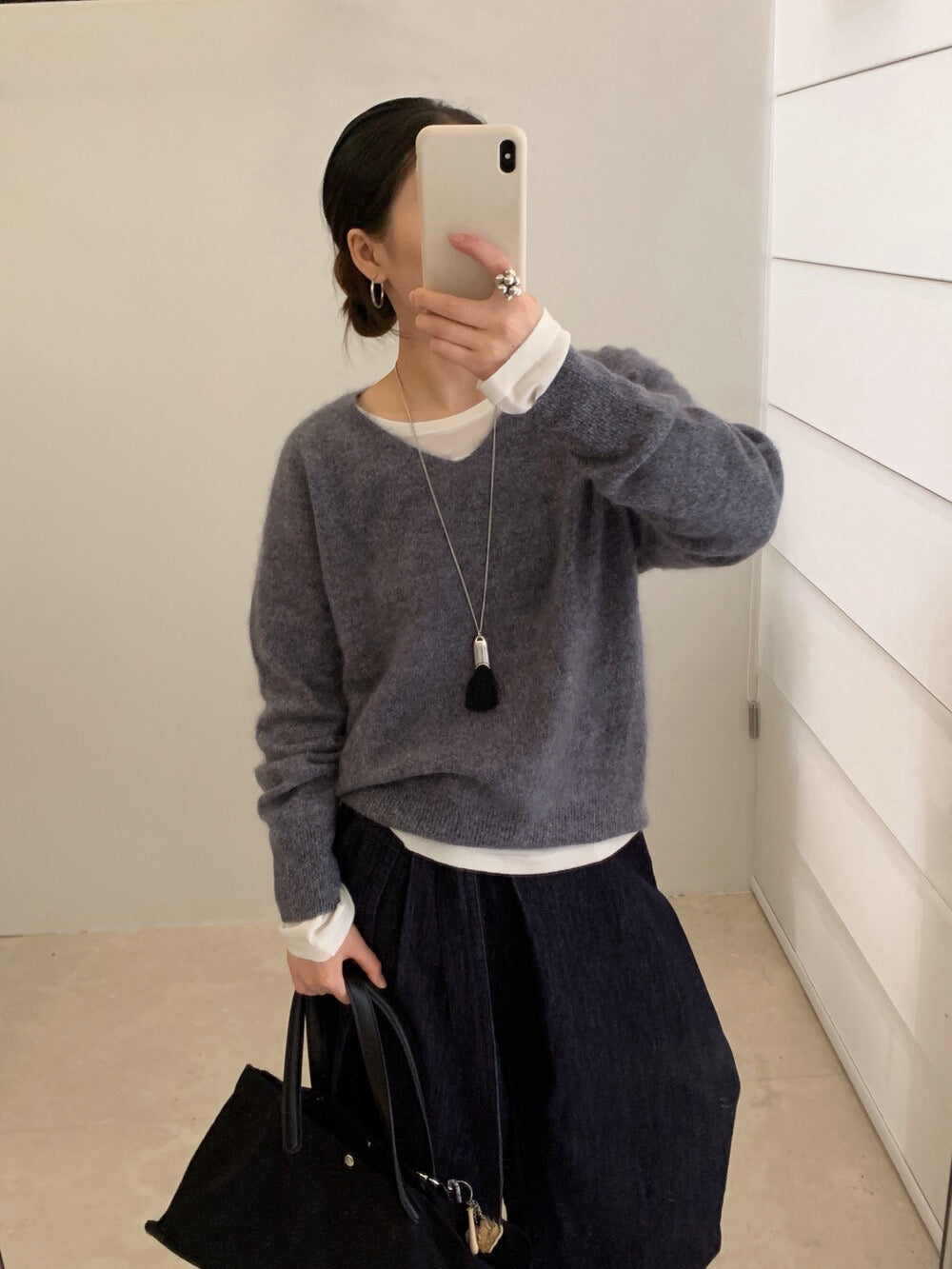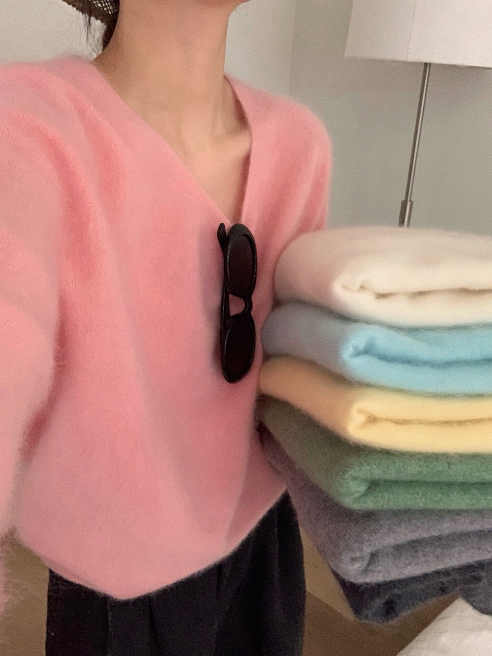 // 15色親膚羊毛拉絨工藝高級感V領NT