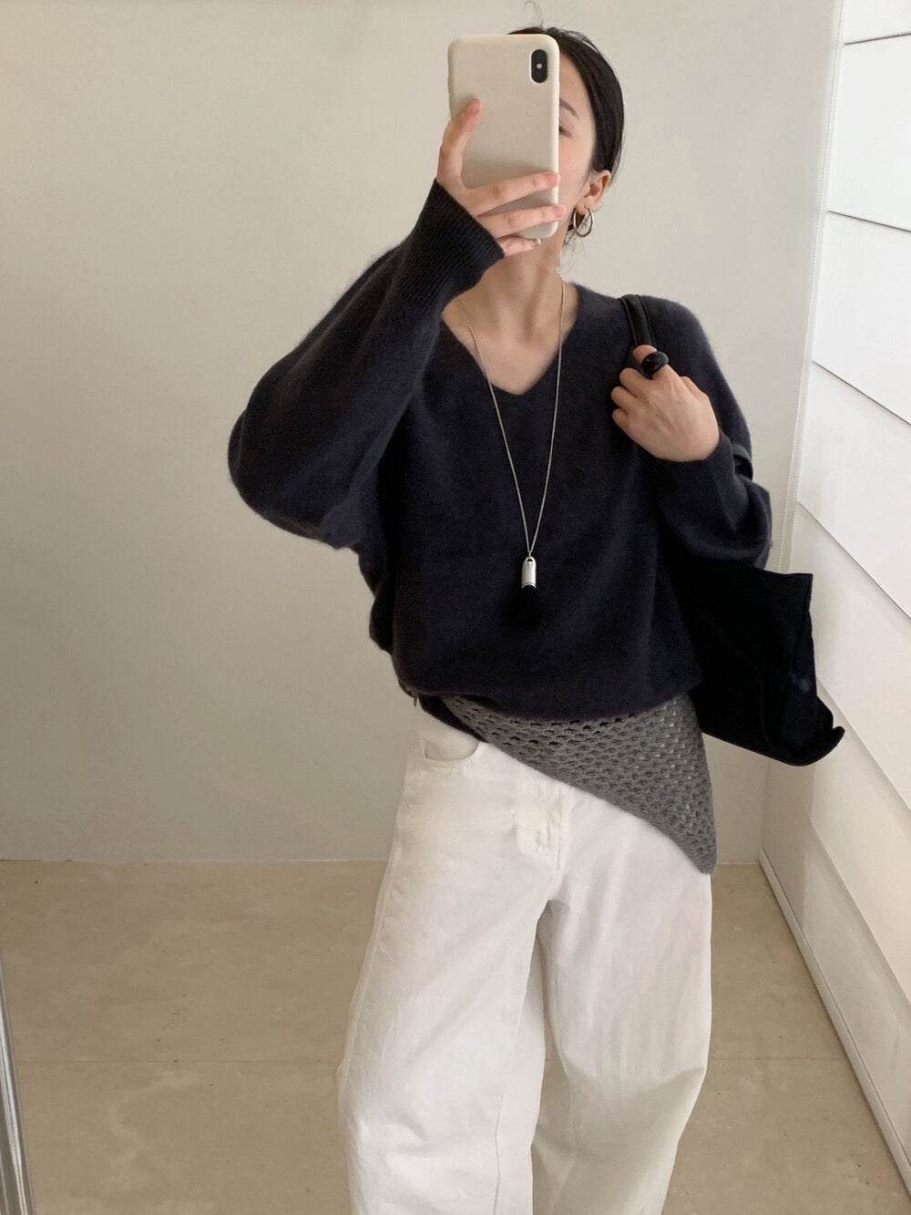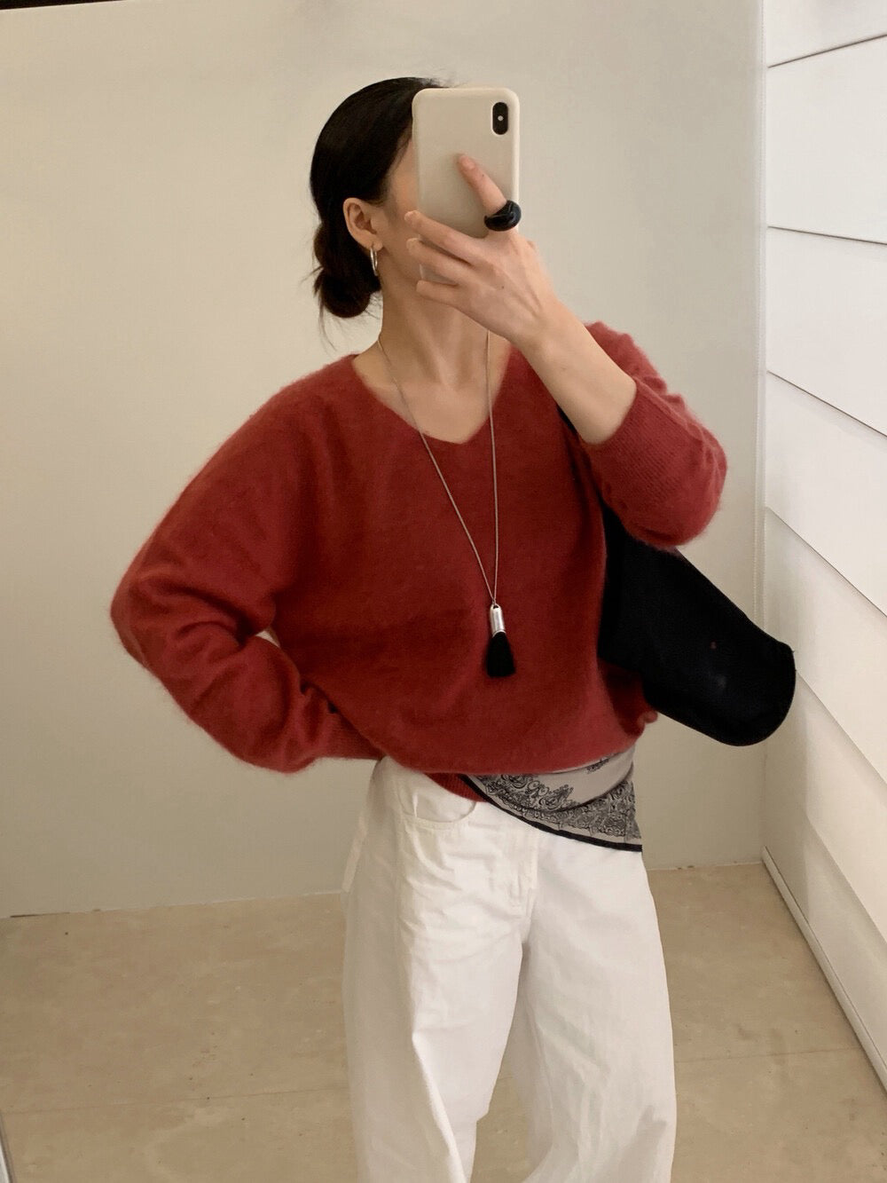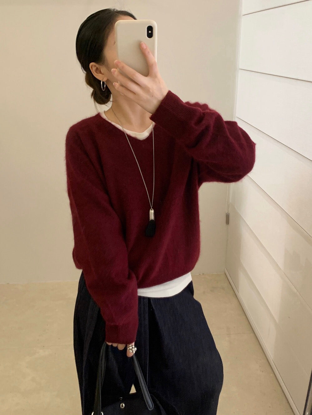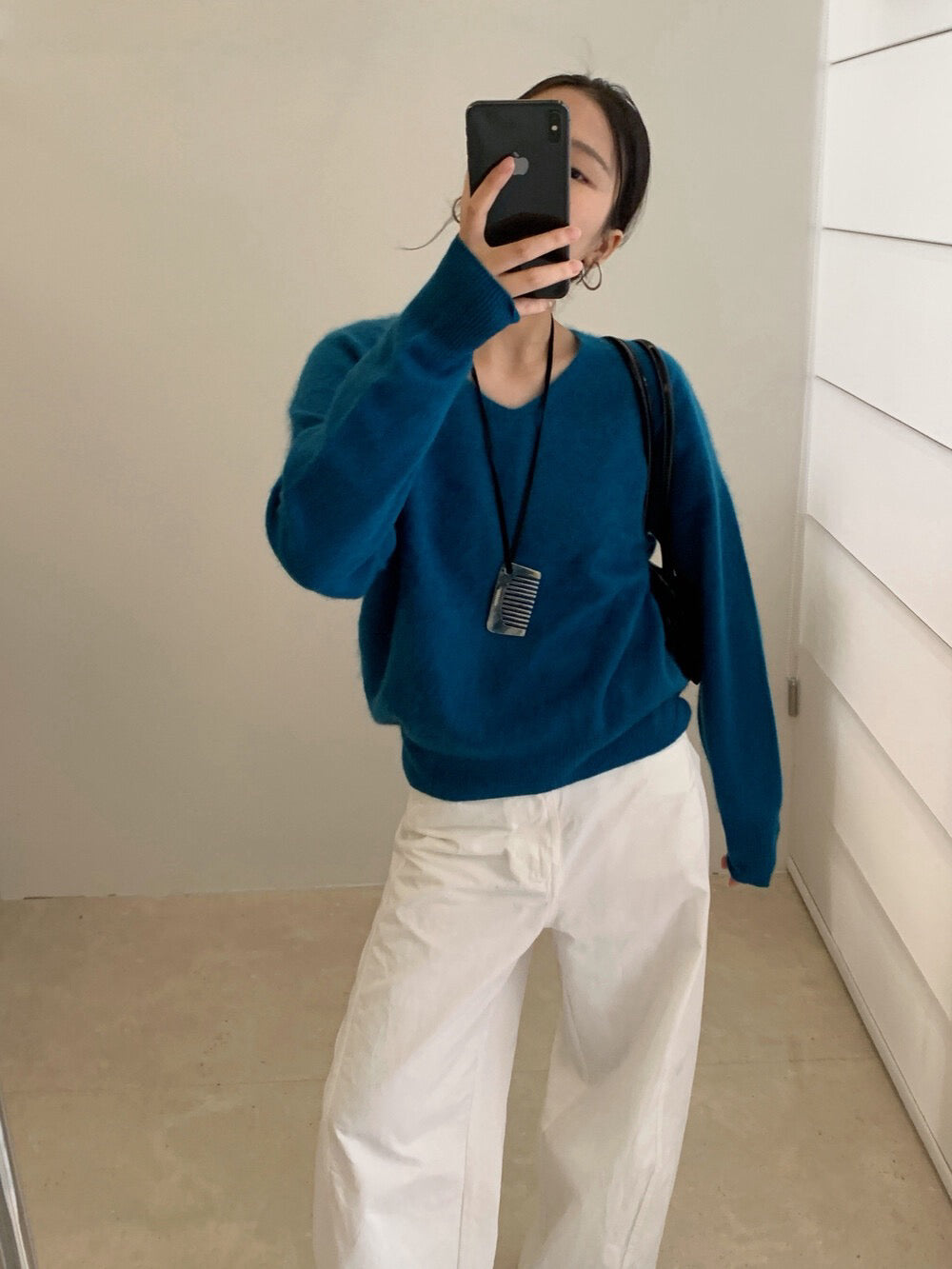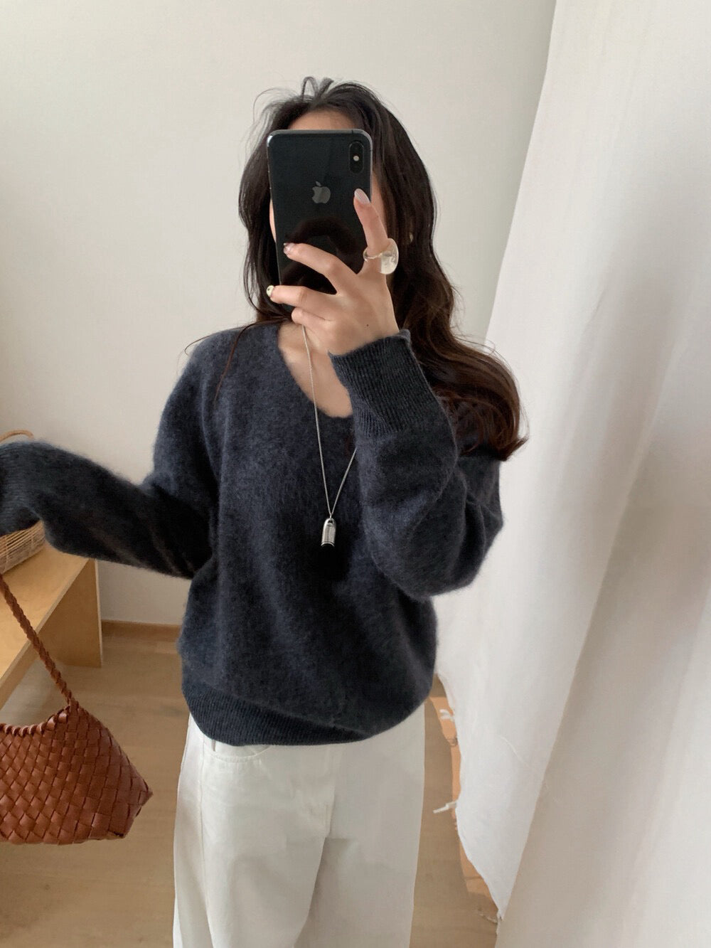 // 15色親膚羊毛拉絨工藝高級感V領NT