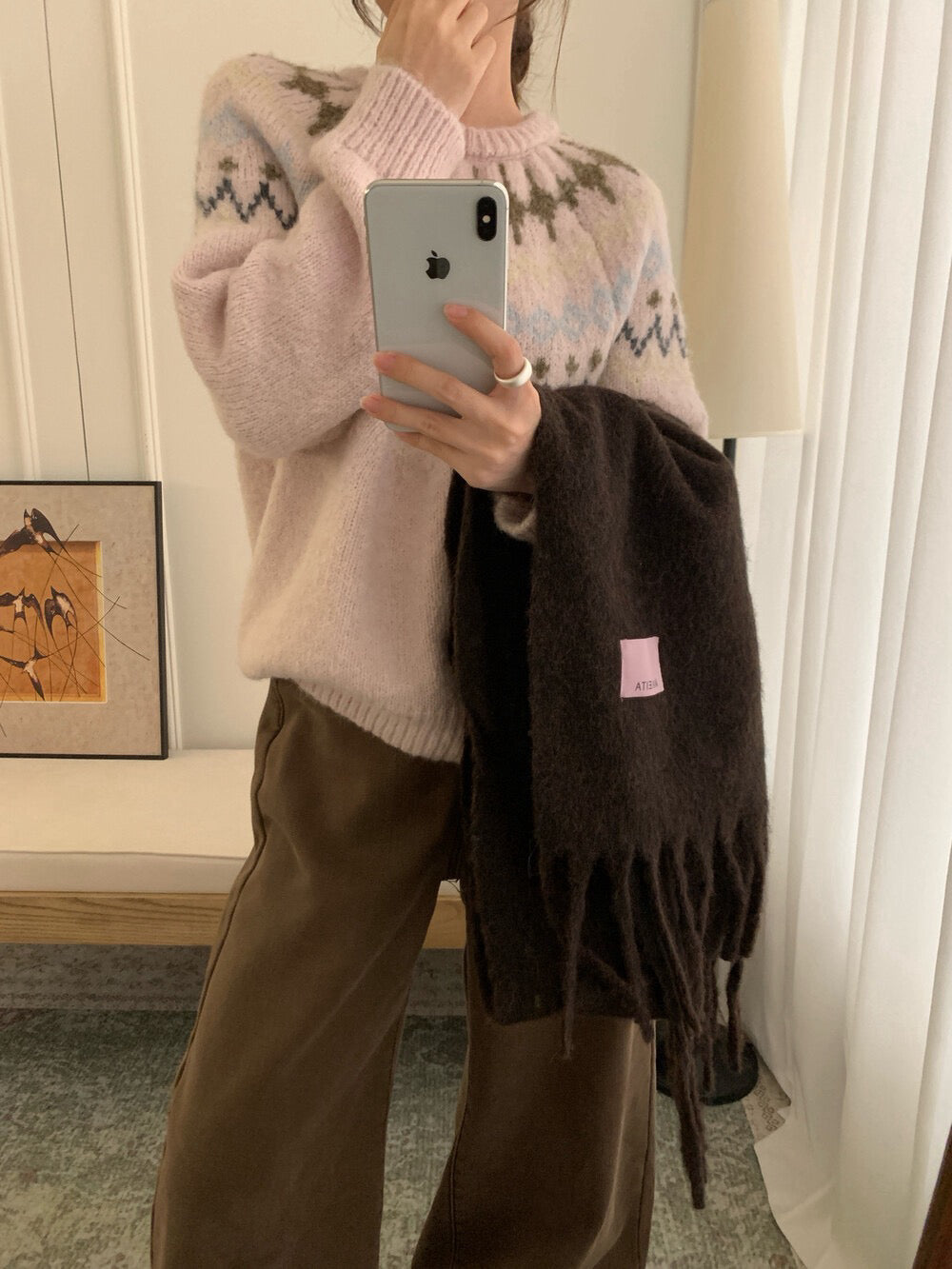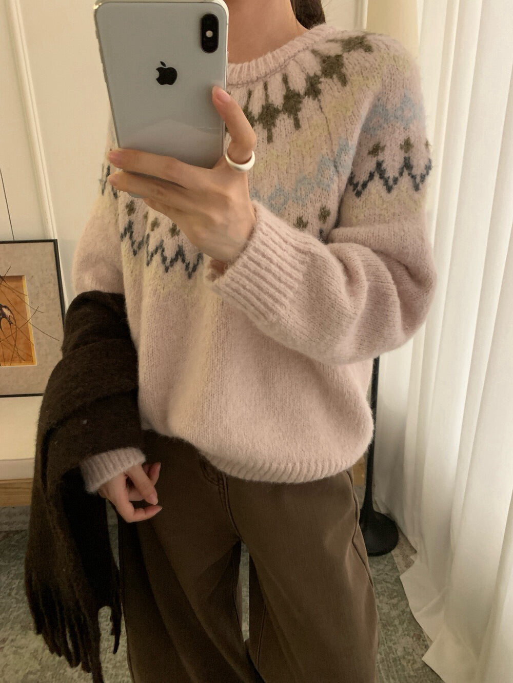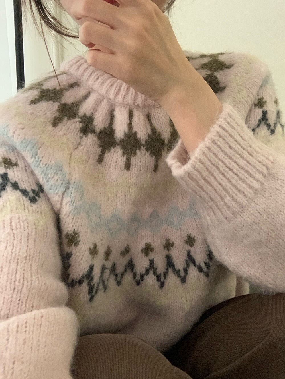 // 20%羊毛聖誕必備花紋圓領毛衣