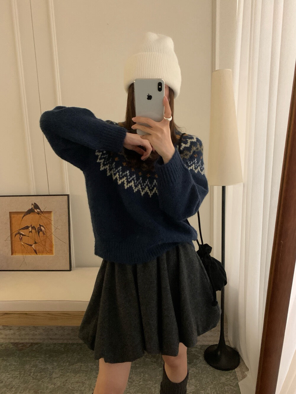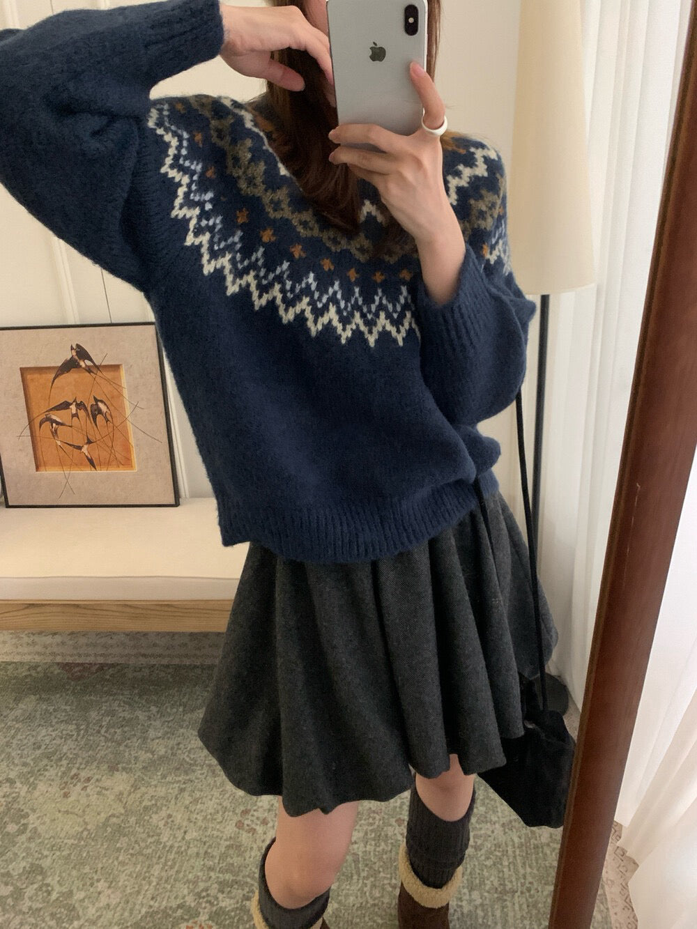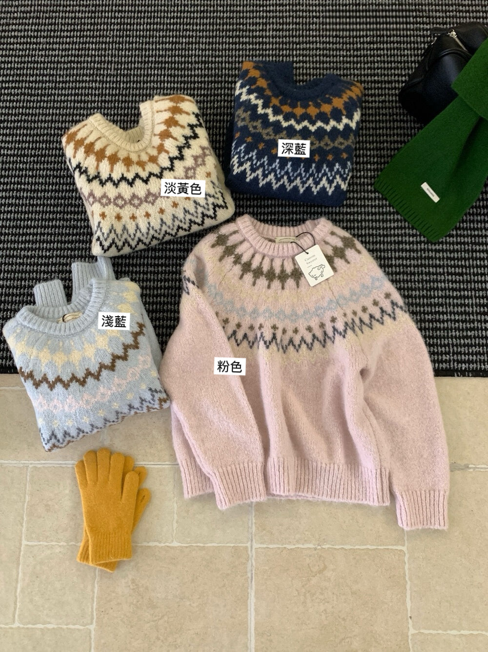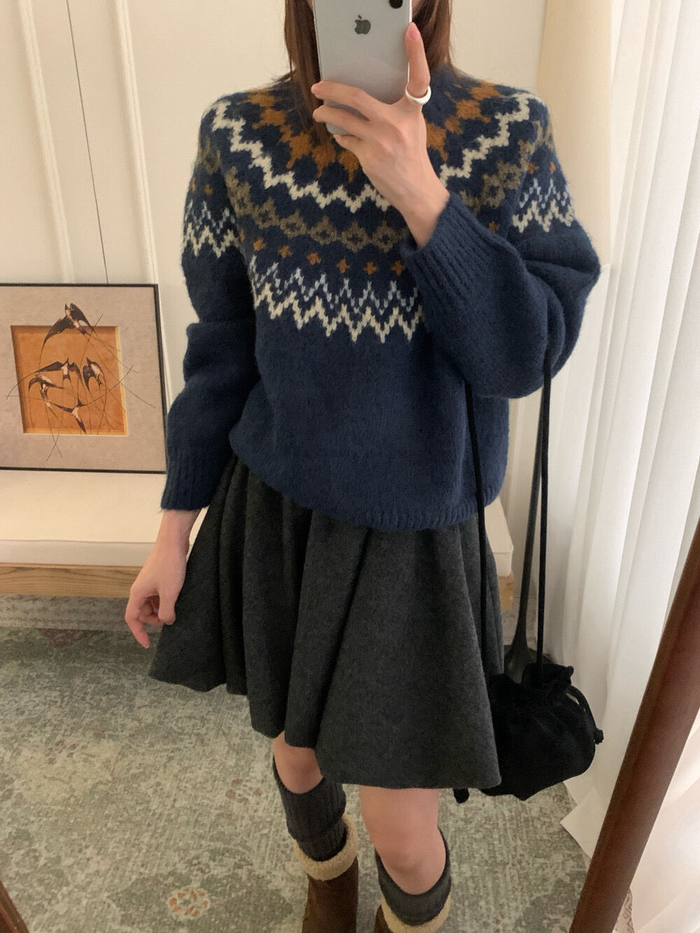 // 20%羊毛聖誕必備花紋圓領毛衣