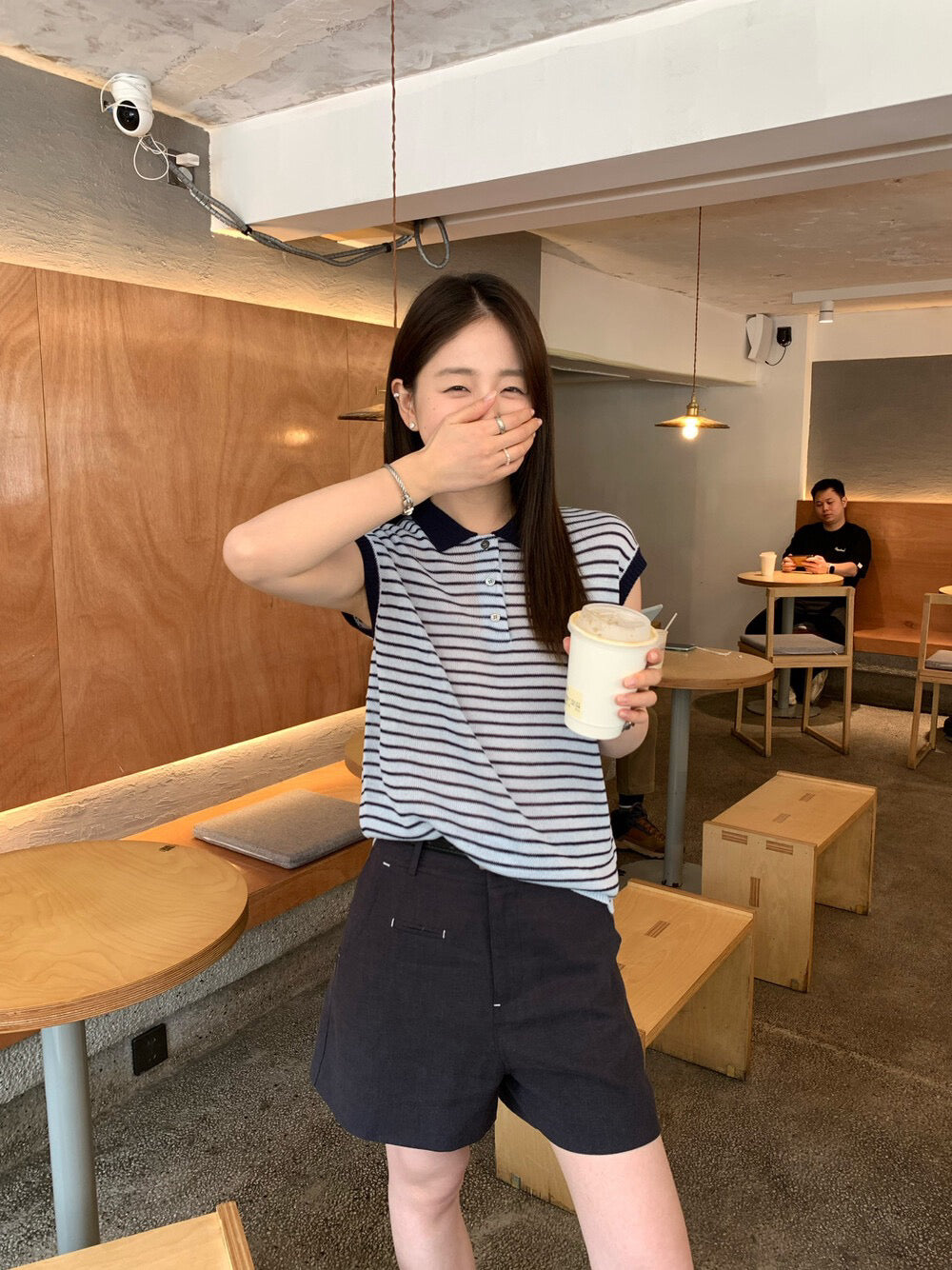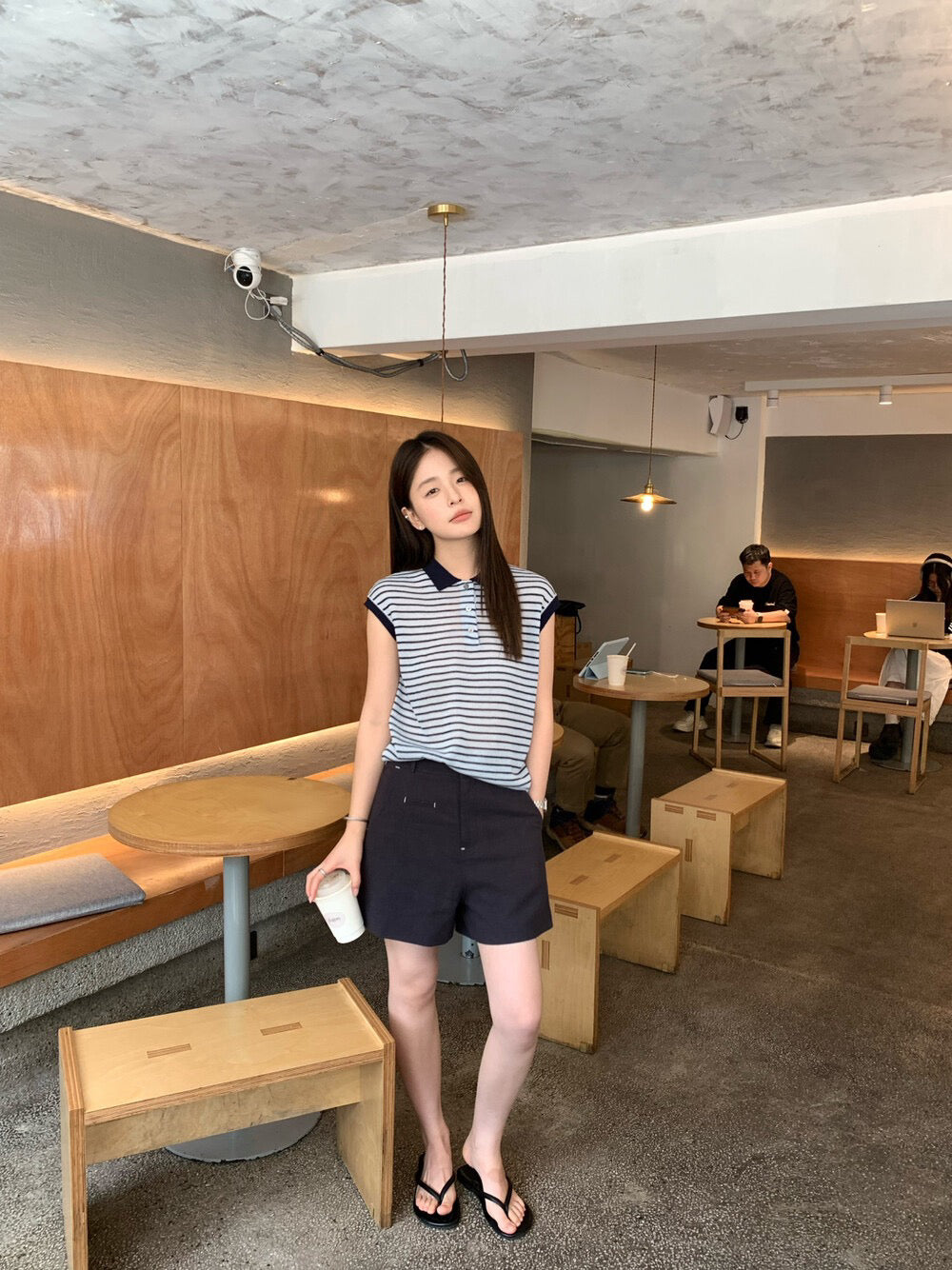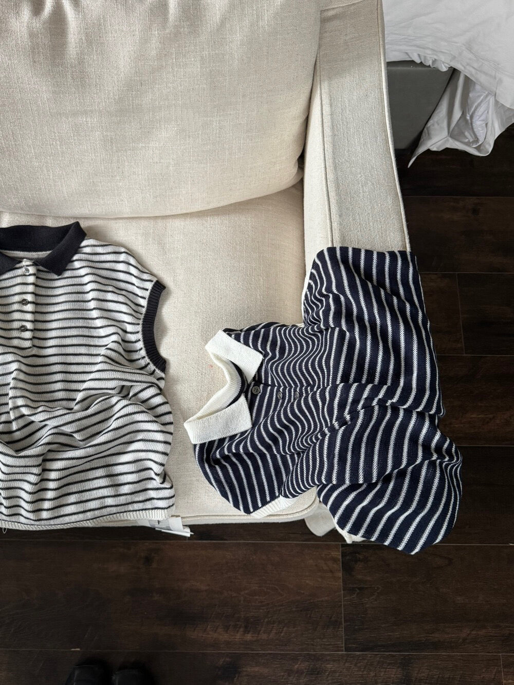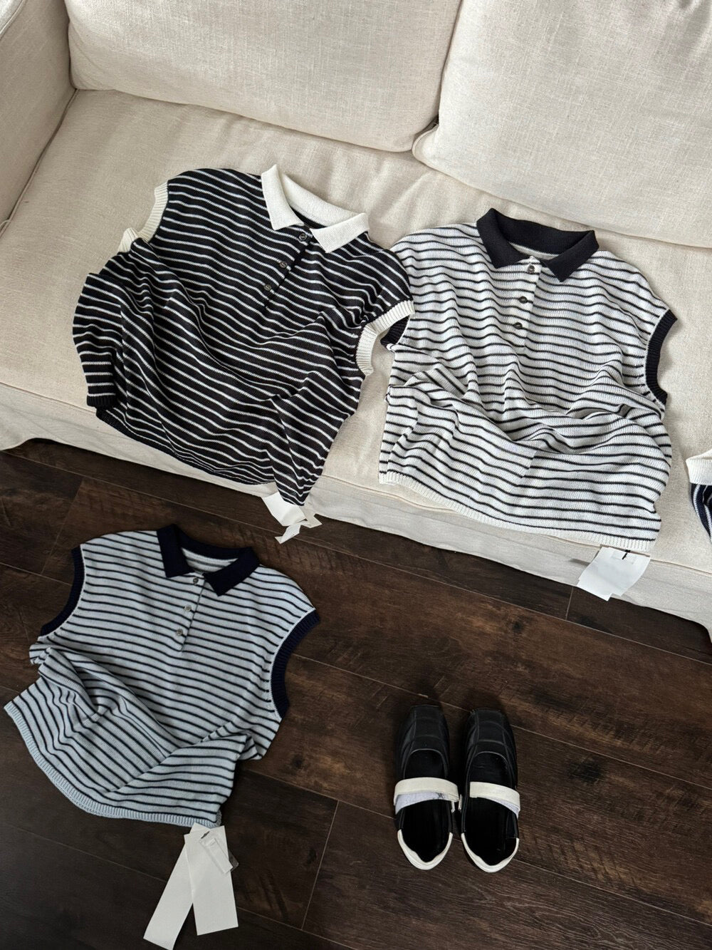 // 28%羊毛撞色邊polo間條針織背心