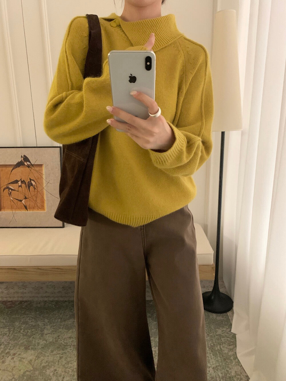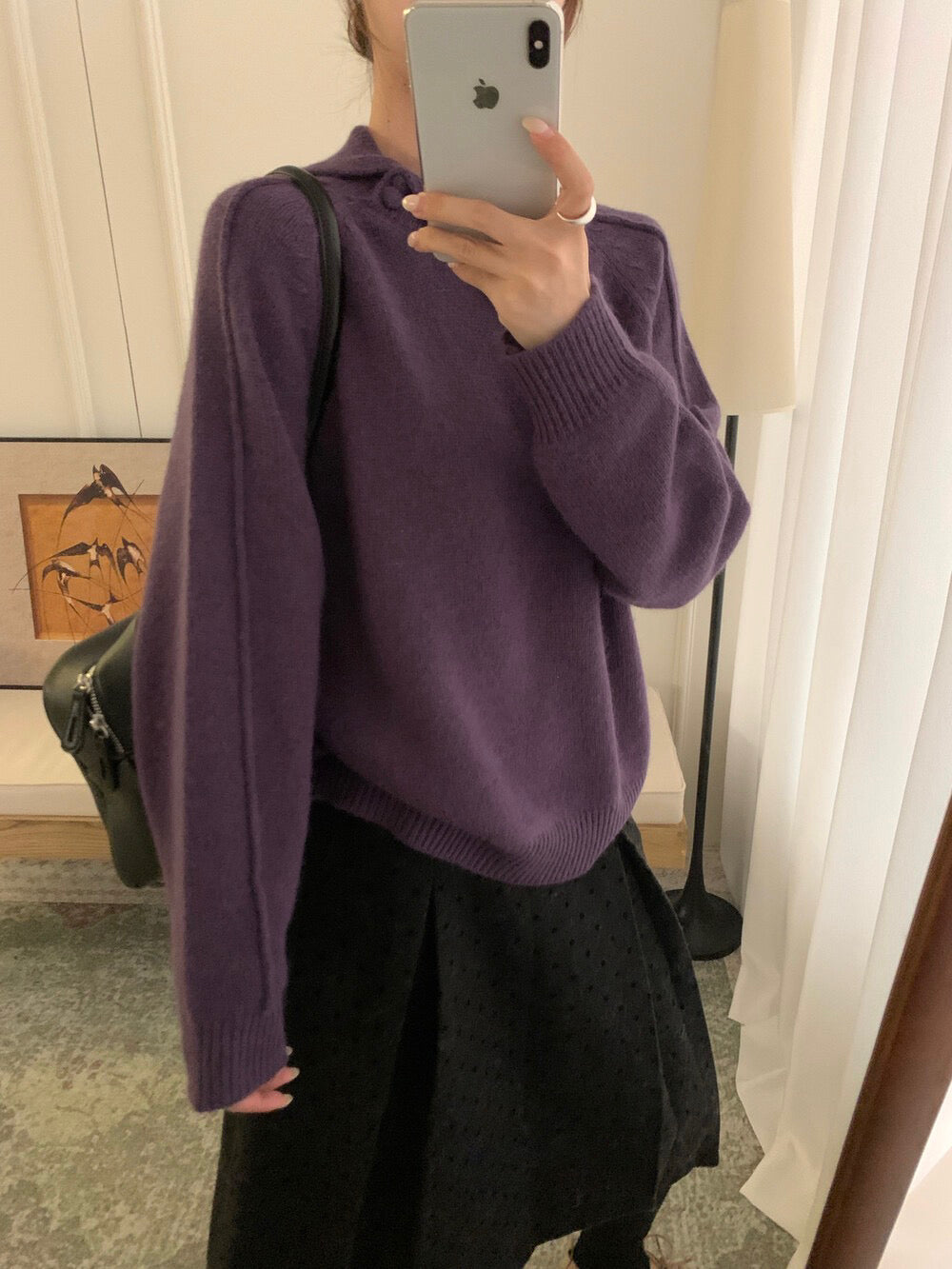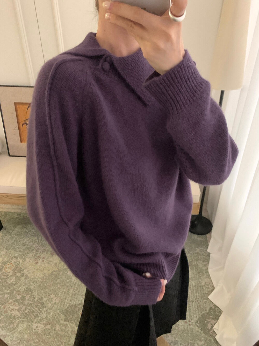 // 30%綿羊毛設計感不規則翻領毛衣